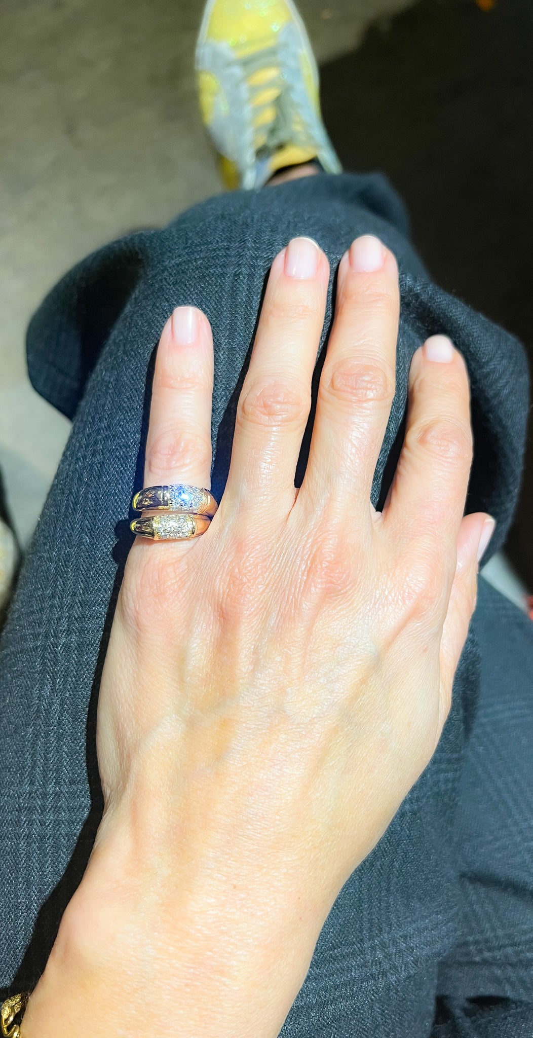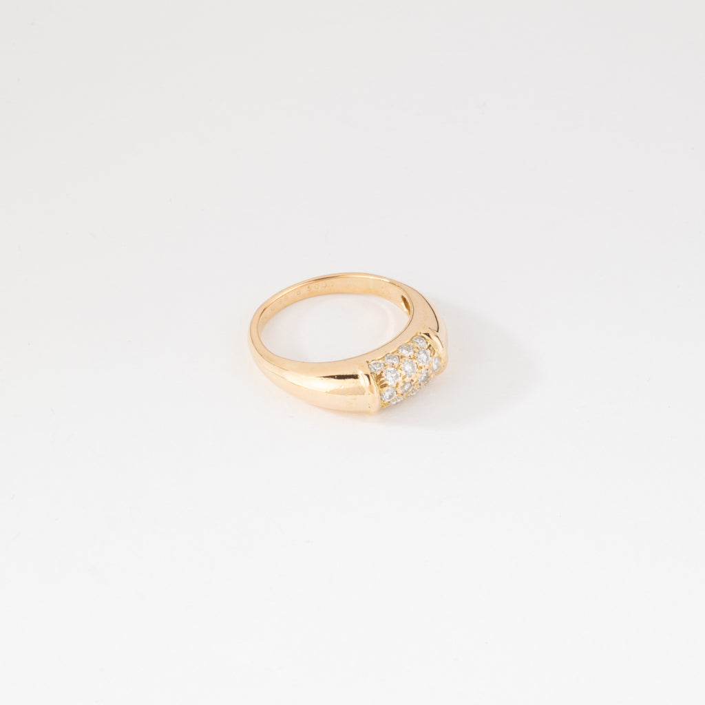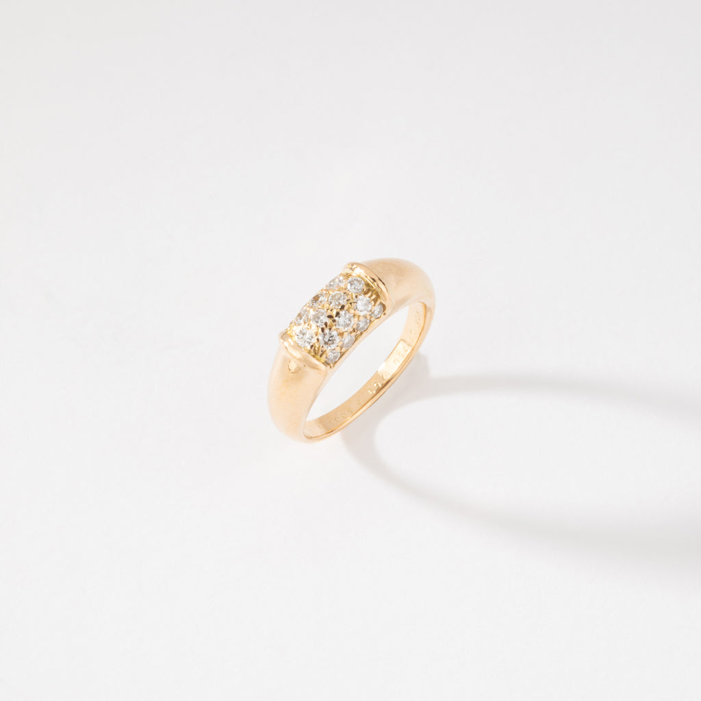 Bague Van Cleef & Arpels, collection Philippine en or jaune et diamants, composée d'un anneau en chute en or jaune, ornée en son centre d'un très beau pavage de diamants de taille brillant pesant environ 0.35 carat,