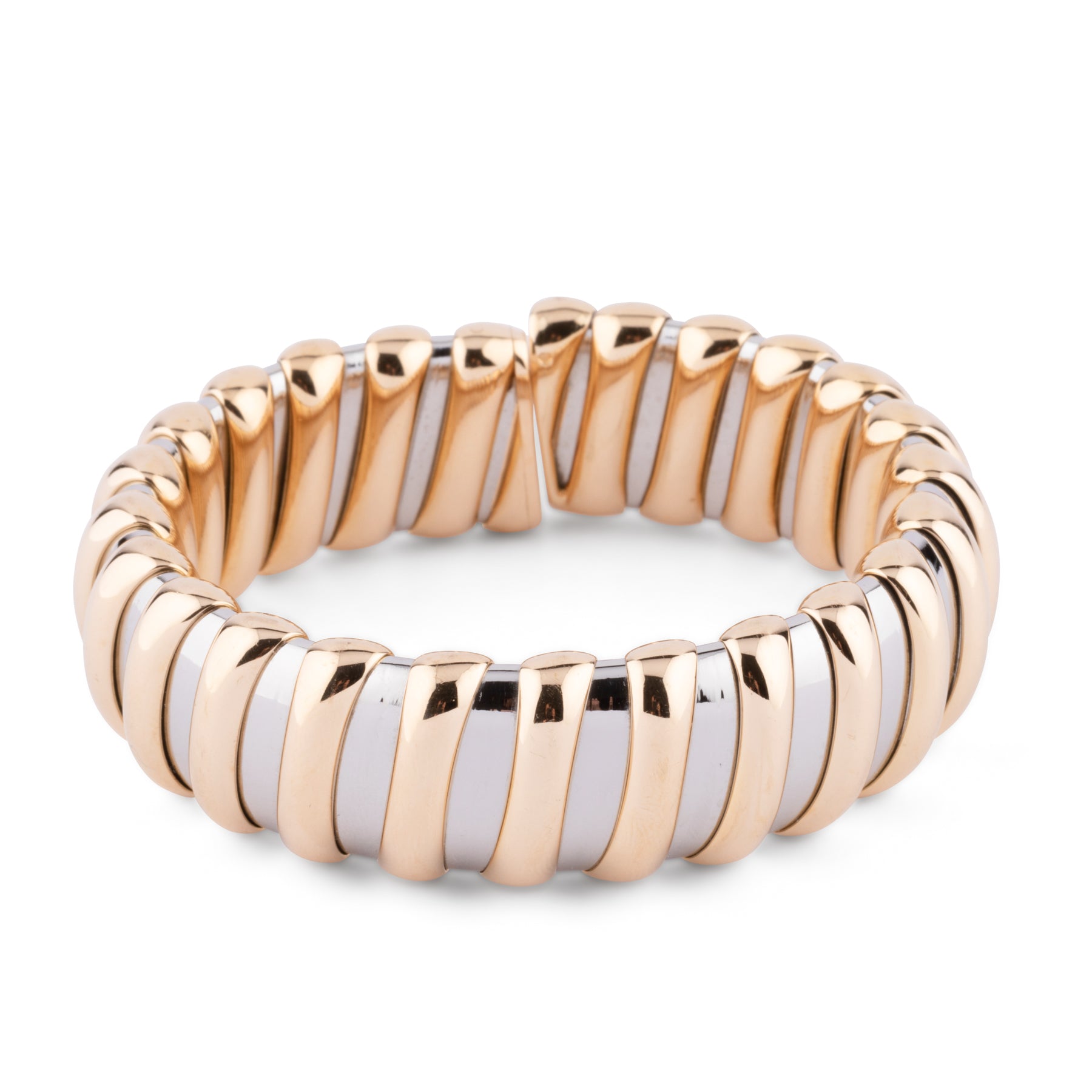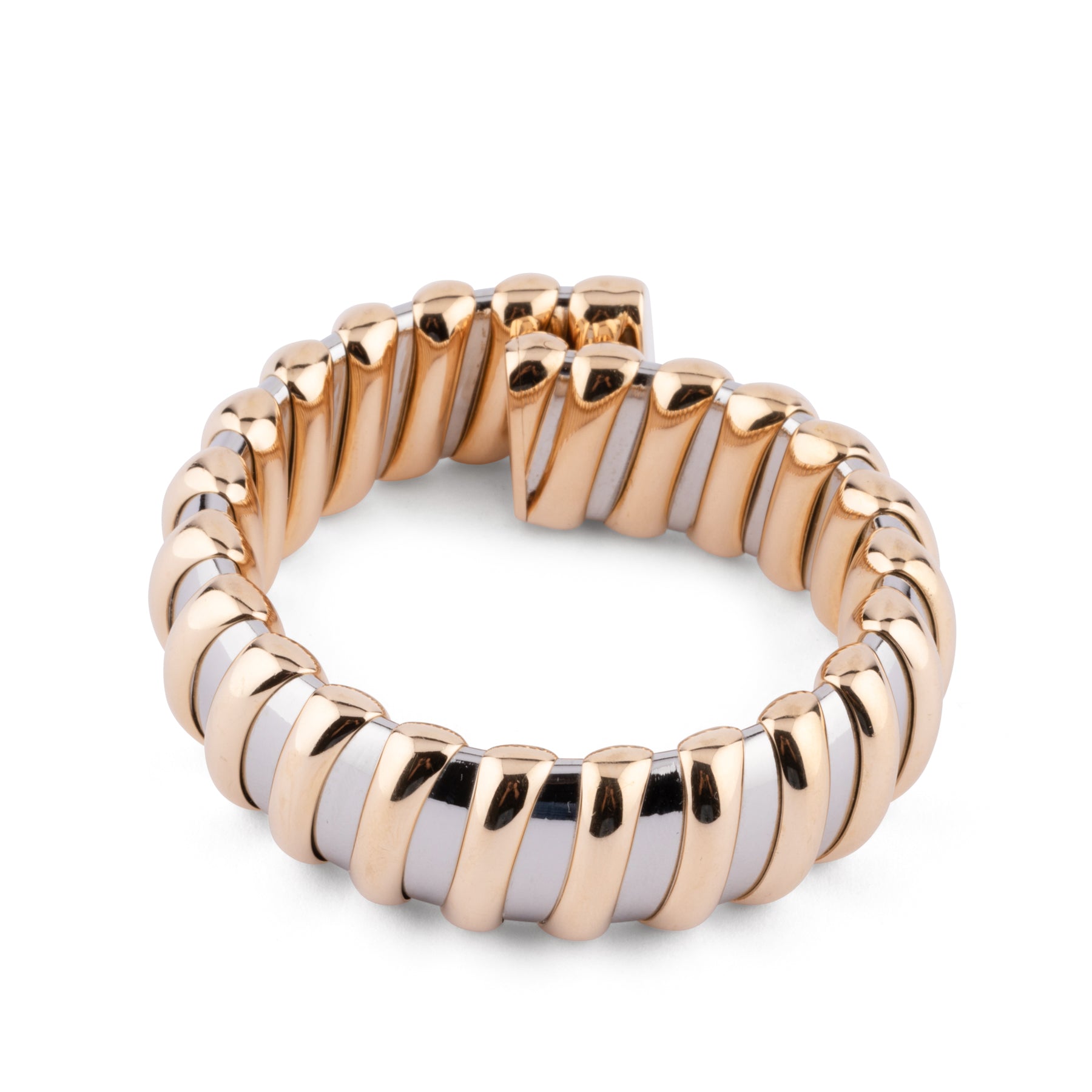 Bracelet rigide signé de la maison Bvlgari, modèle "Tubogas", en acier et or jaune.