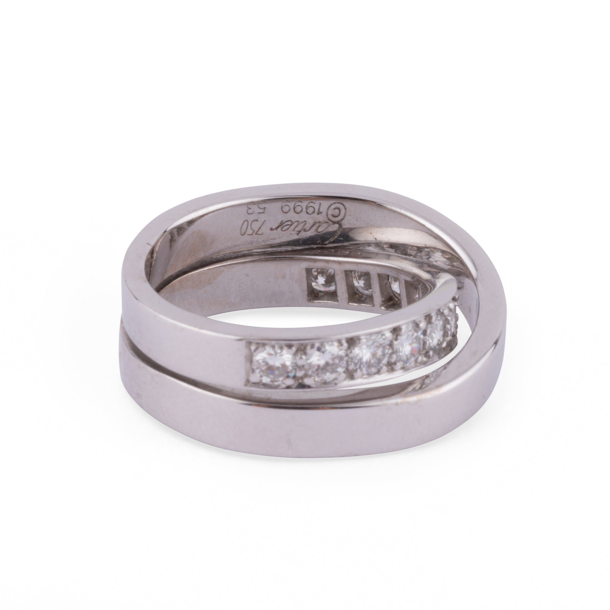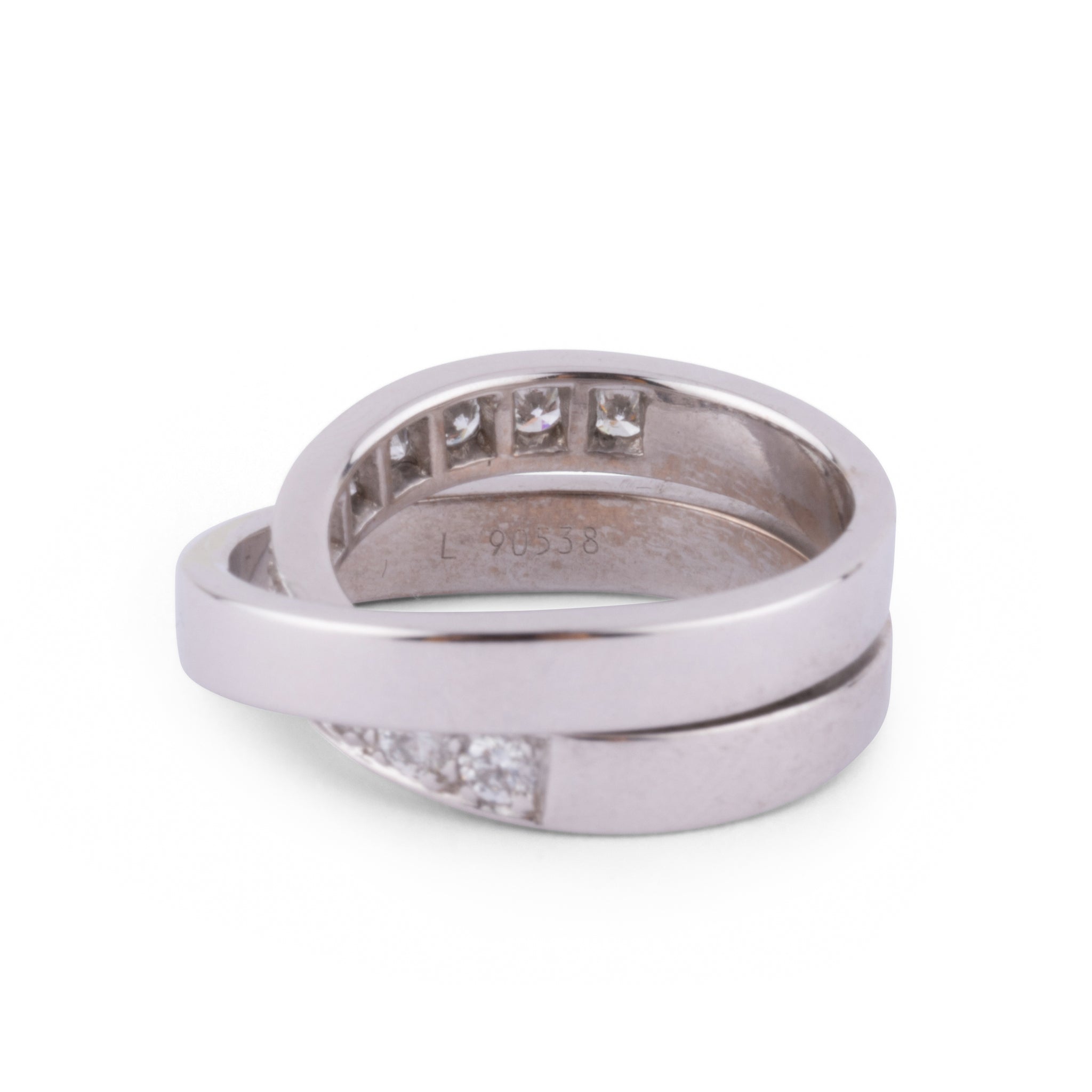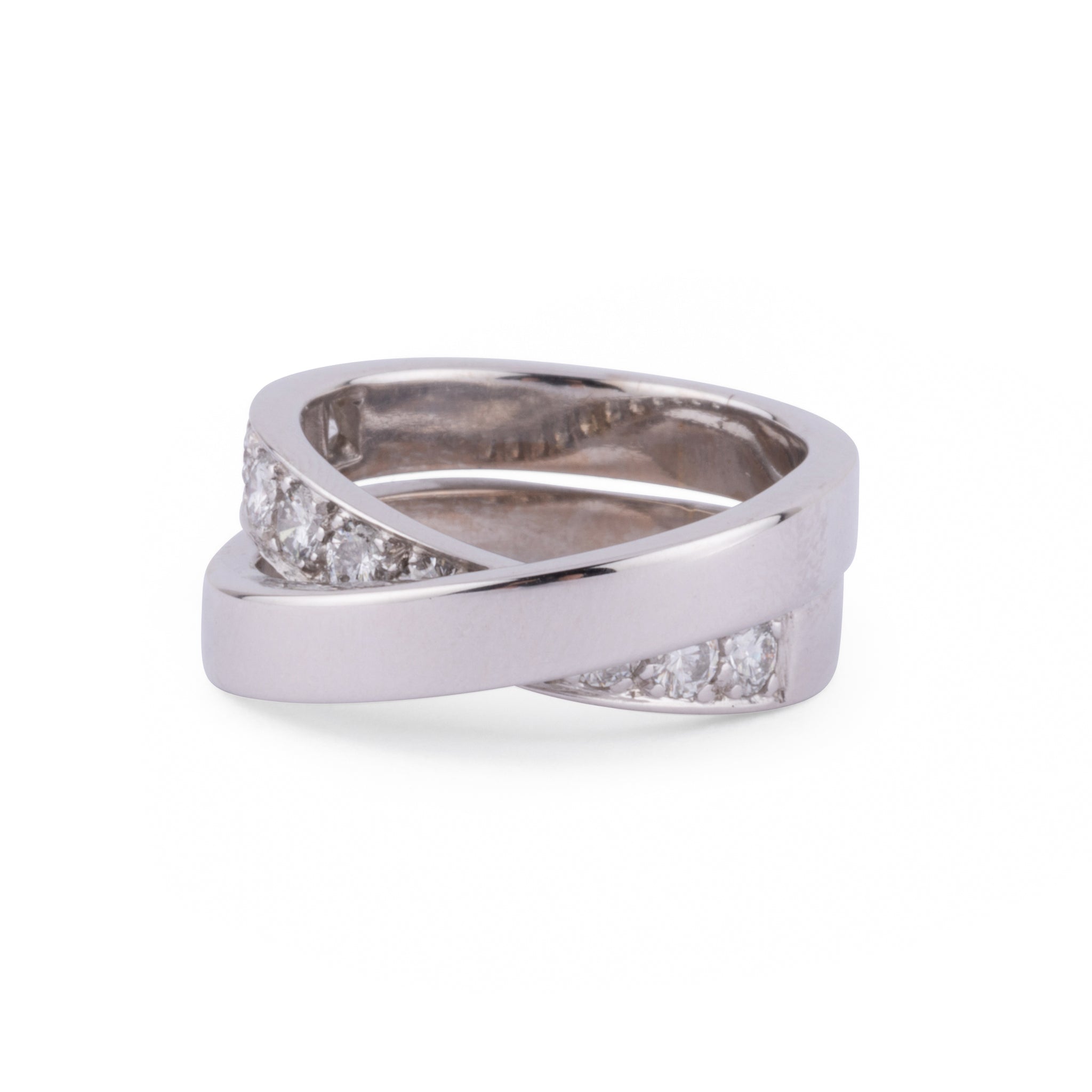 Bague de la maison Cartier modèle Nouvelle Vague en or gris et diamants, composée d'un très bel anneau entrelacé, réhaussée au centre de 11 diamants de taille brillant;