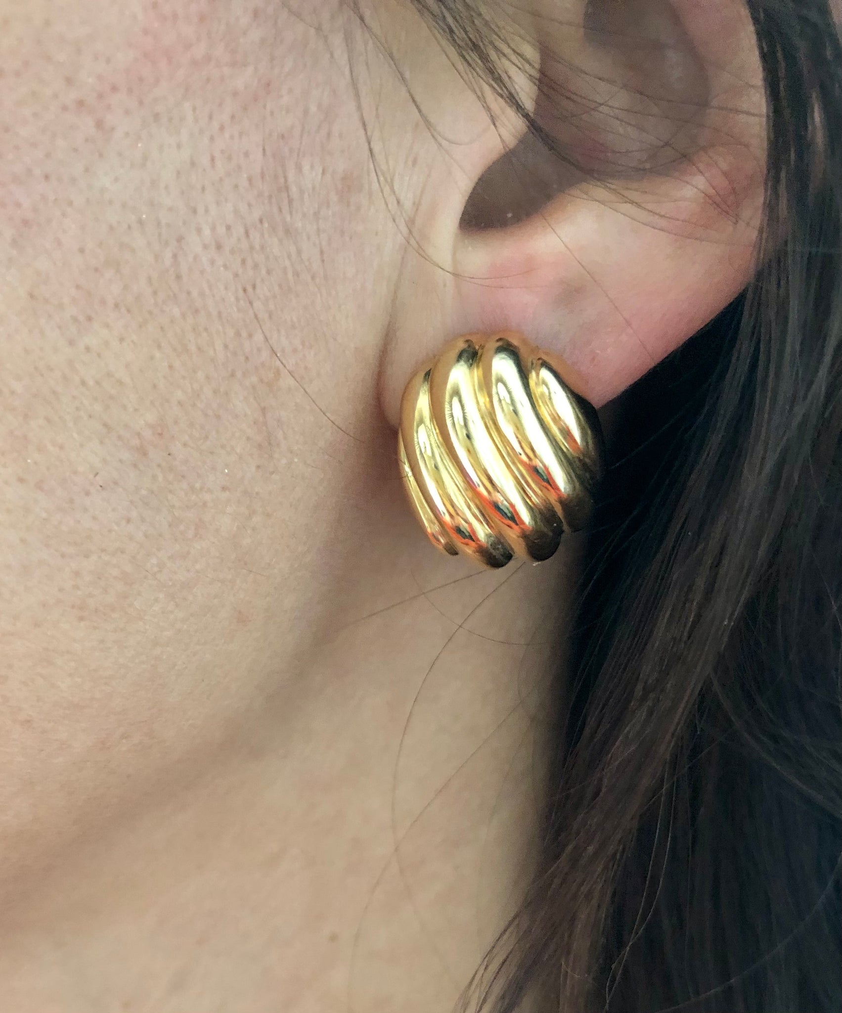 Boucles d'oreilles de la maison Cartier collection Coquillage en or jaune godronné.