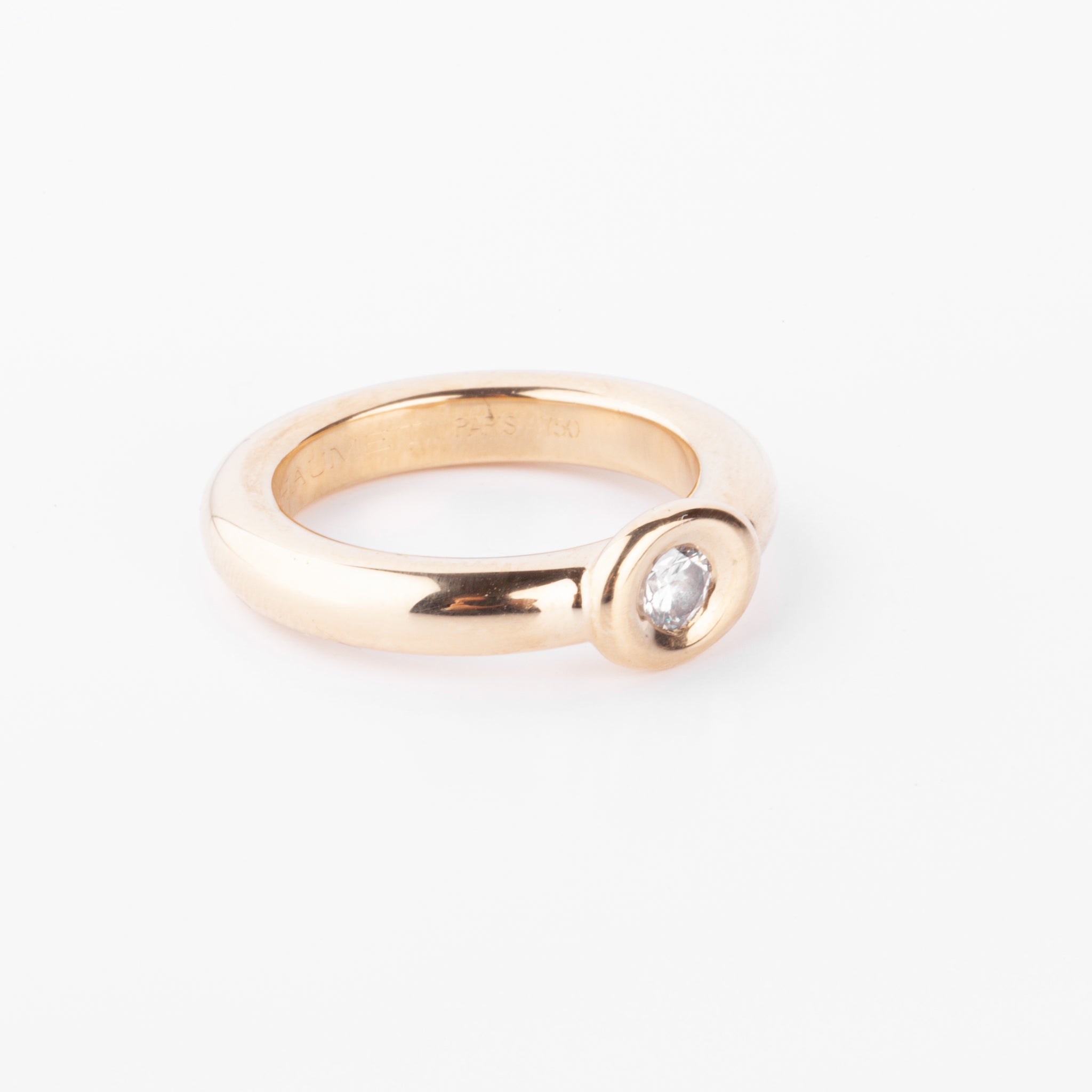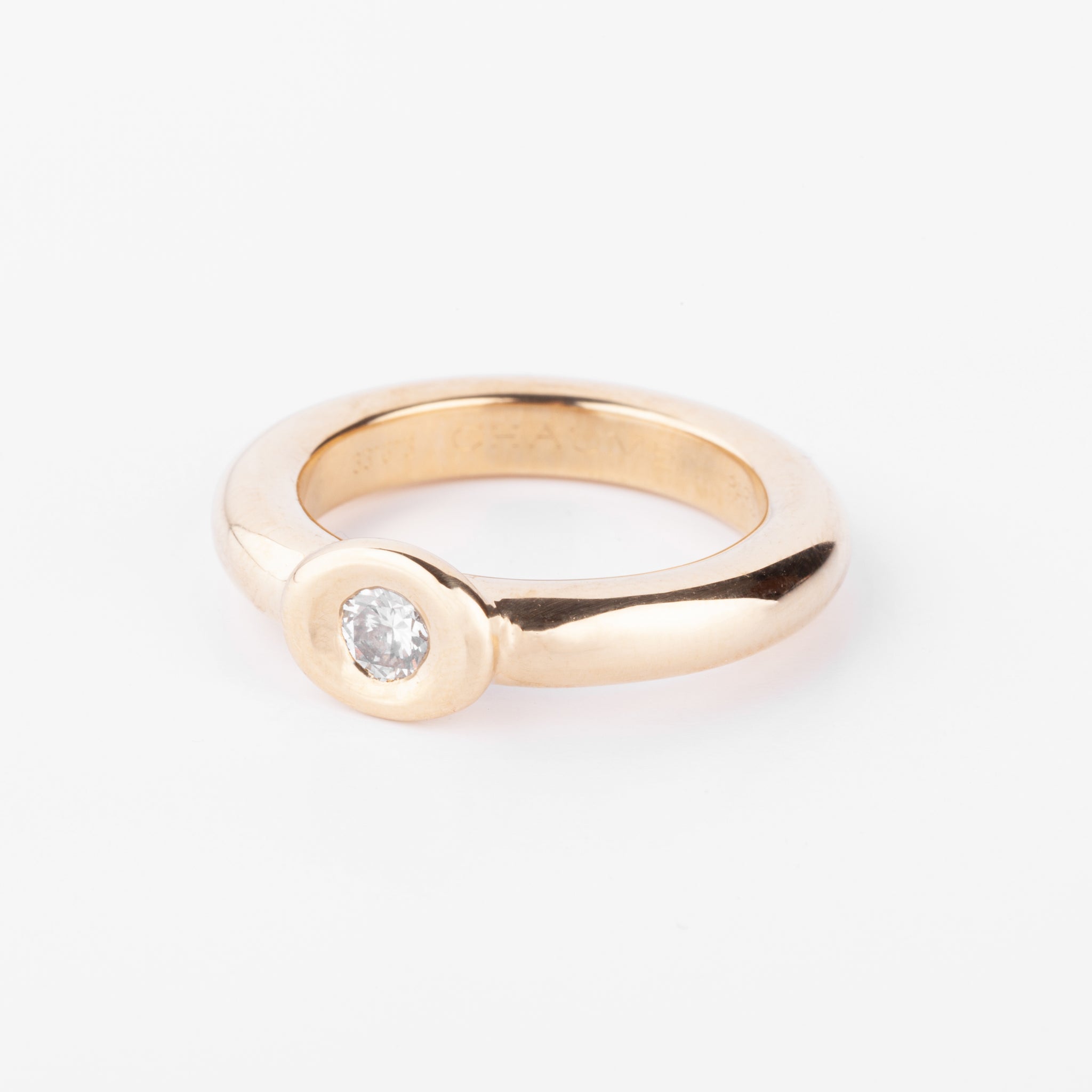 Bague jonc de la maison Chaumet ornée d'un diamant en serti clos.