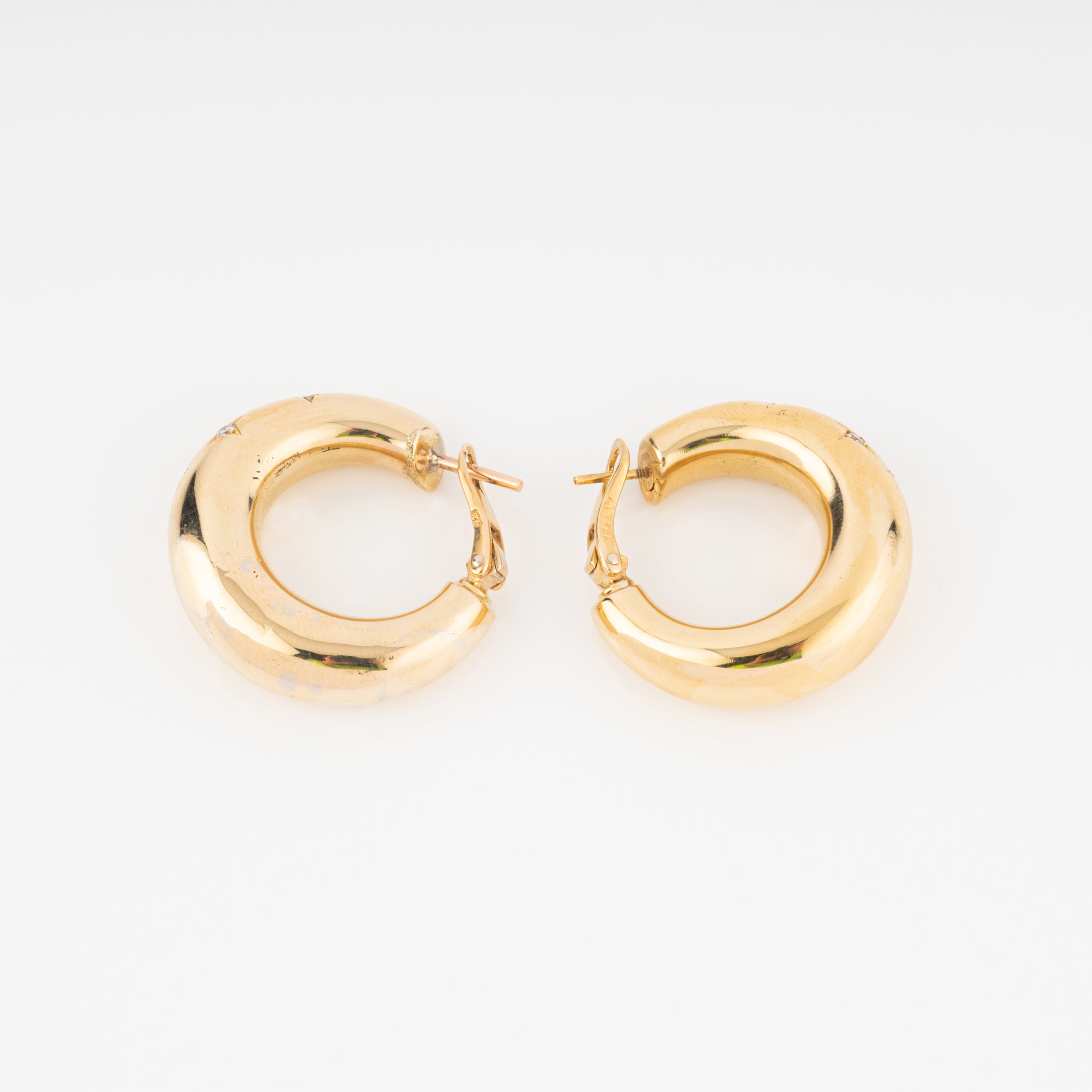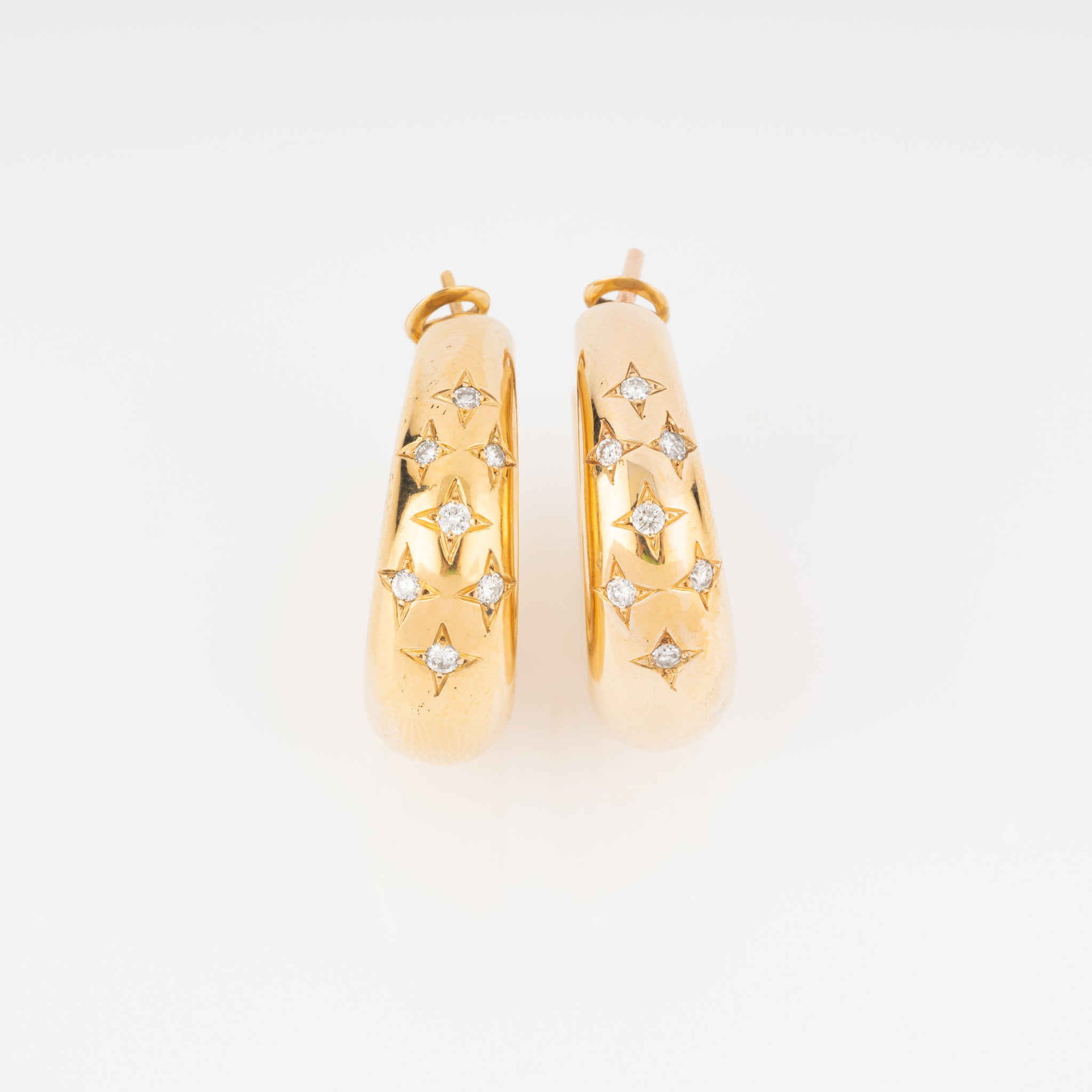 Boucles d'oreilles de la Maison Chaumet sur or jaune, formant des créoles ornées de 14 diamants sur un serti étoilés.