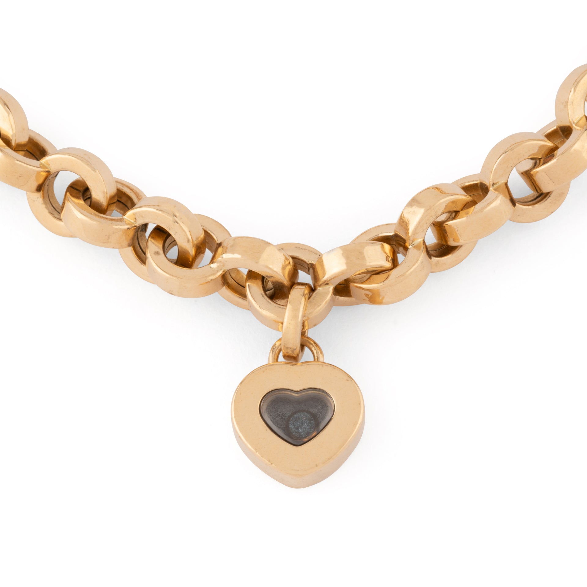 Bracelet de la maison Chopard en or jaune collection Happy Diamond composé d'une succession de beaux maillons ronds en or jaune , retenant un cœur ajouré orné d'un diamant mobile.