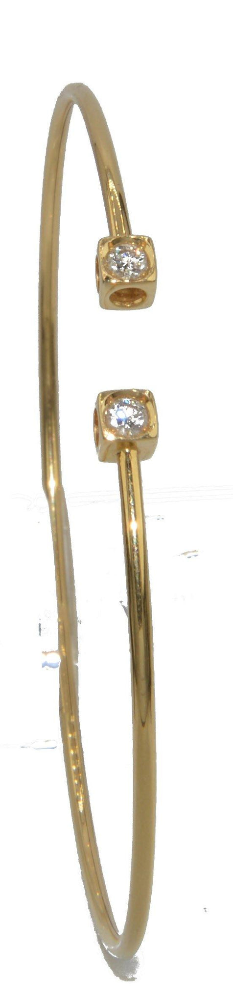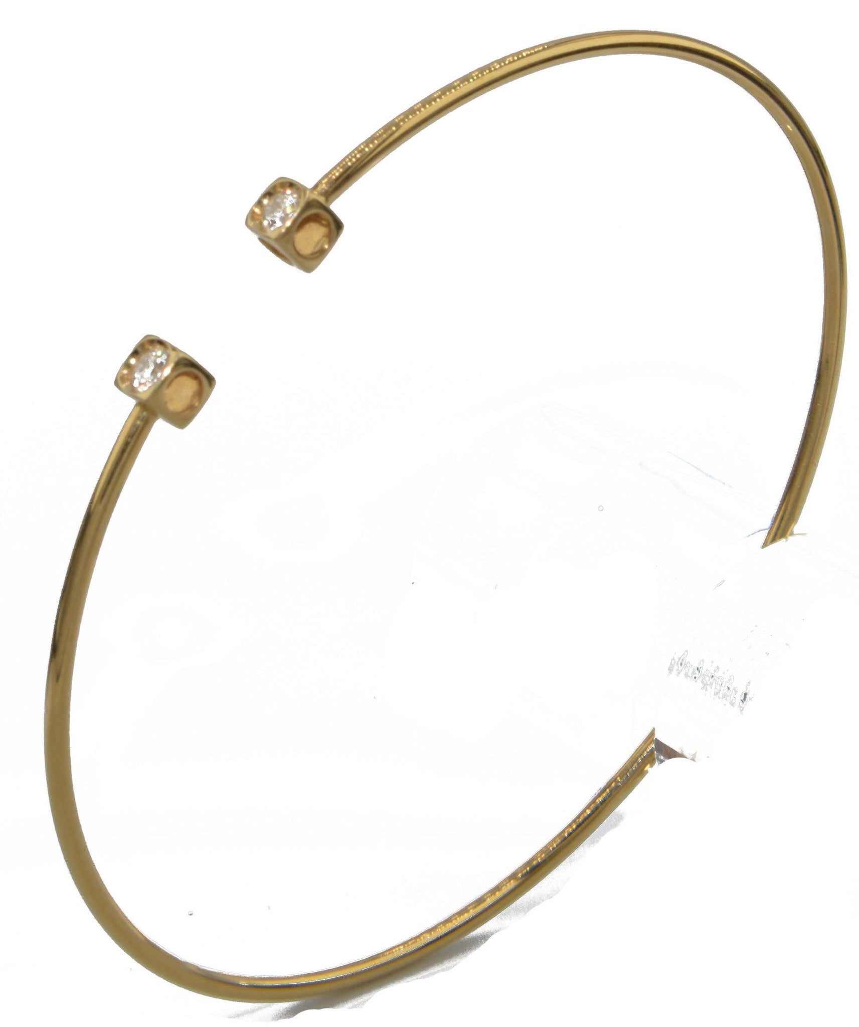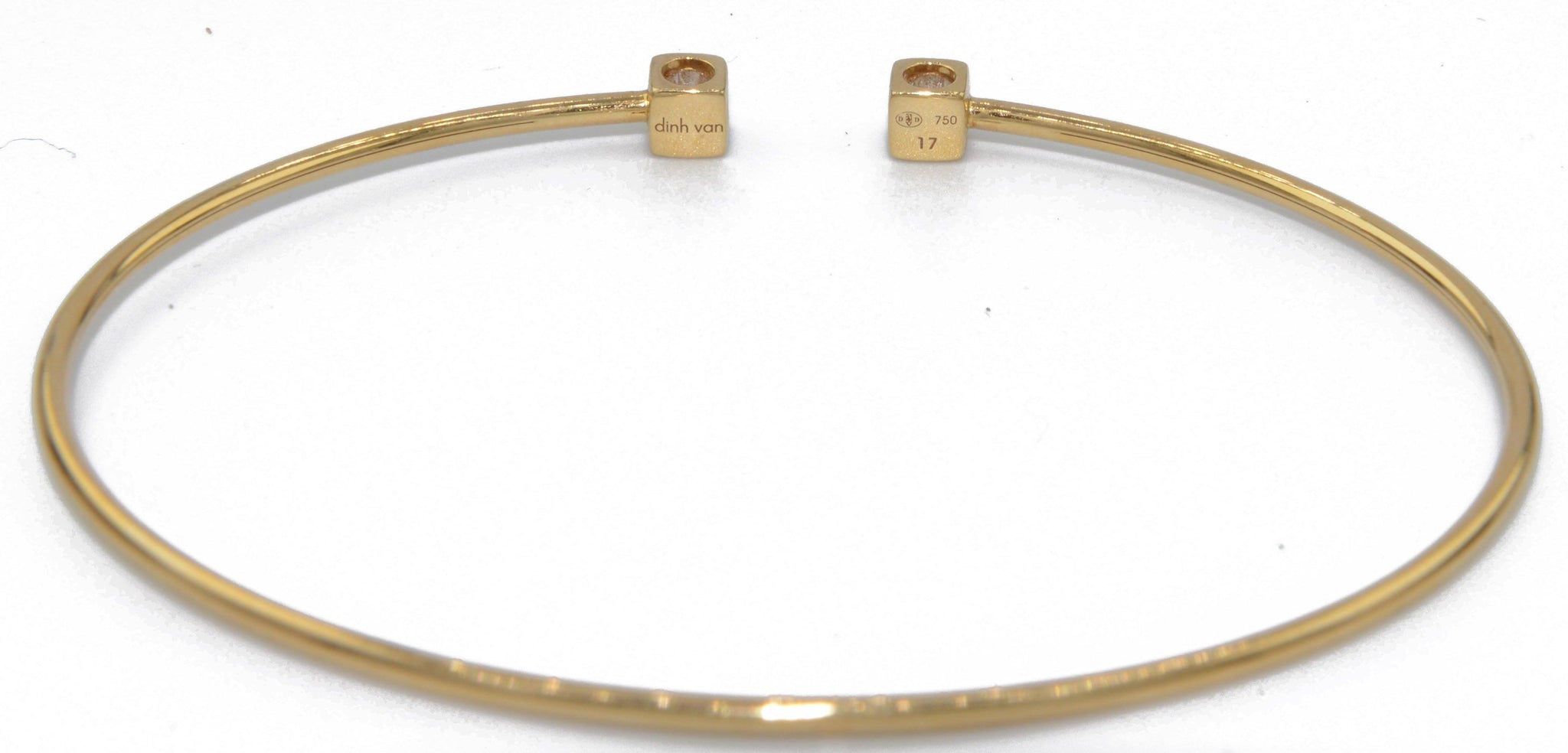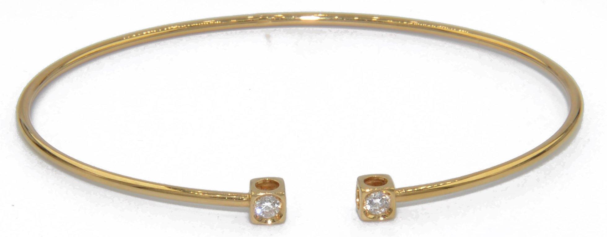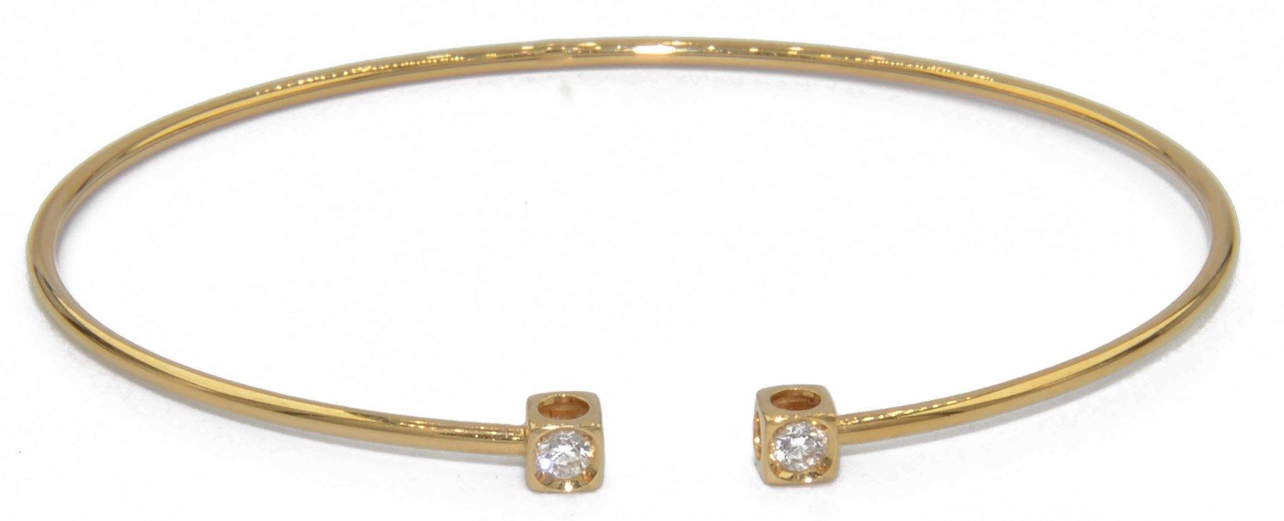Ravissant bracelet Dinh Van Cube en or jaune et diamants, composé d'un fin anneau ovale souple en or jaune, retenant 2 motifs carrés ajourés en or jaune, réhaussé sur le dessus de 2 diamants de taille brillant.