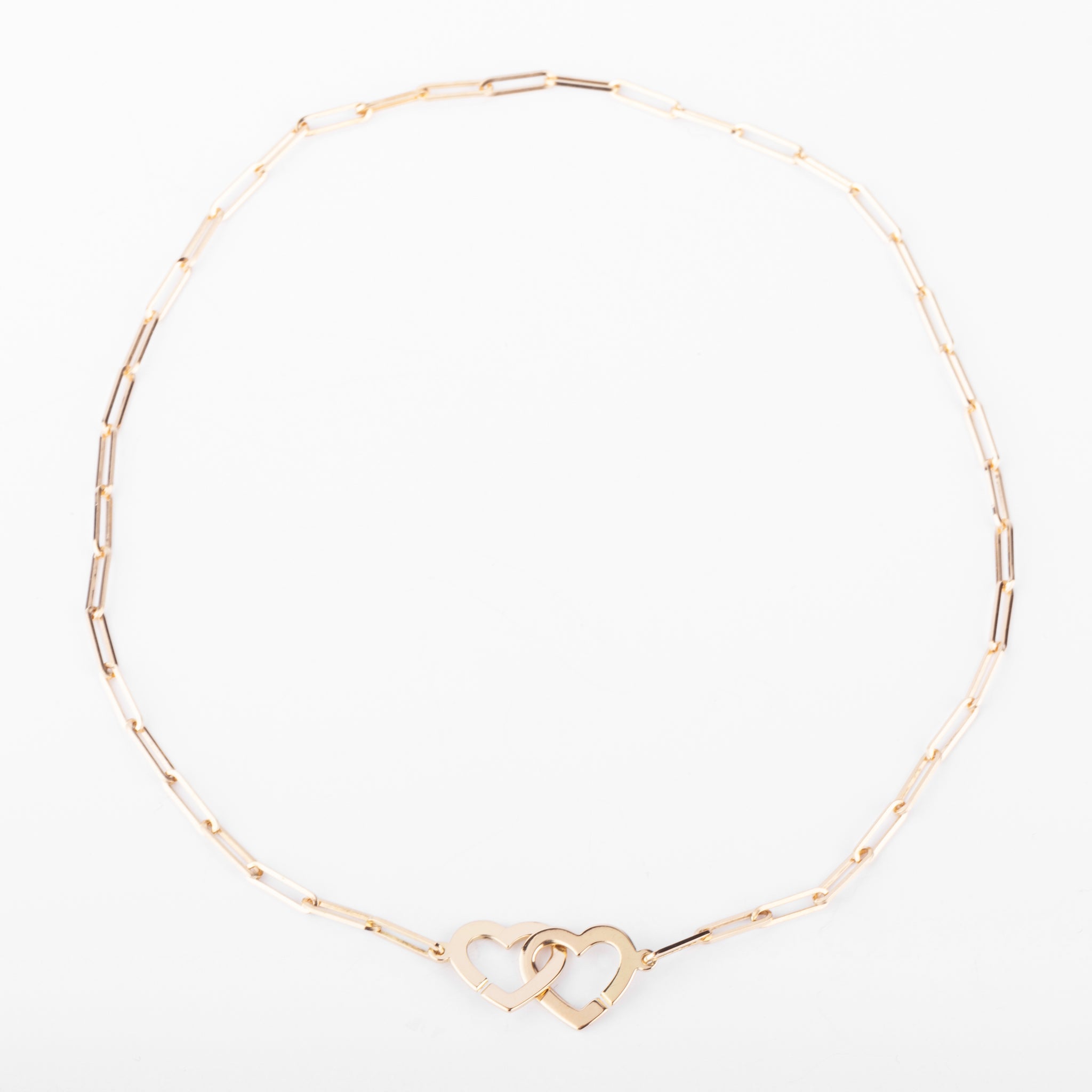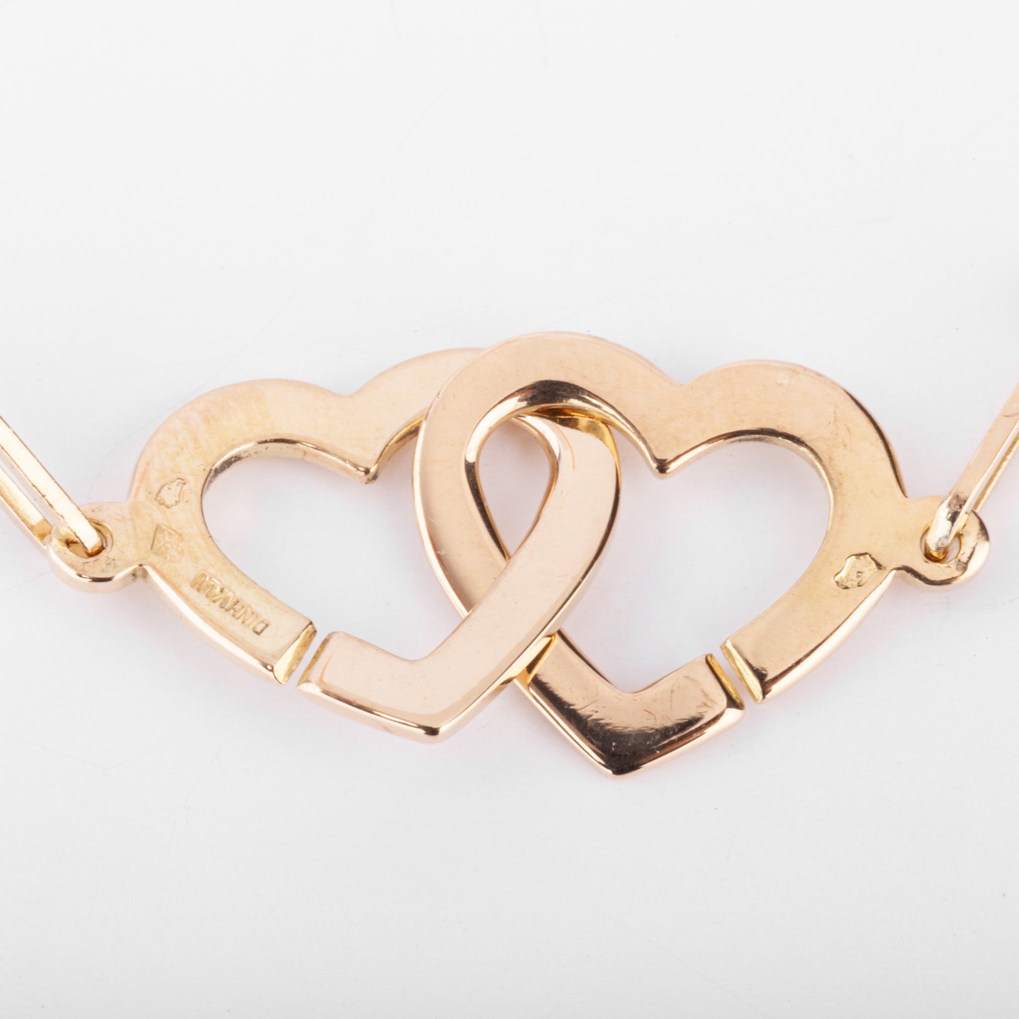 Collier en or rose Dinh Van collection double cœur R9, figurant en son centre 2 cœurs entrelacés, retenu par une chaine maillon rectangulaire en rose.