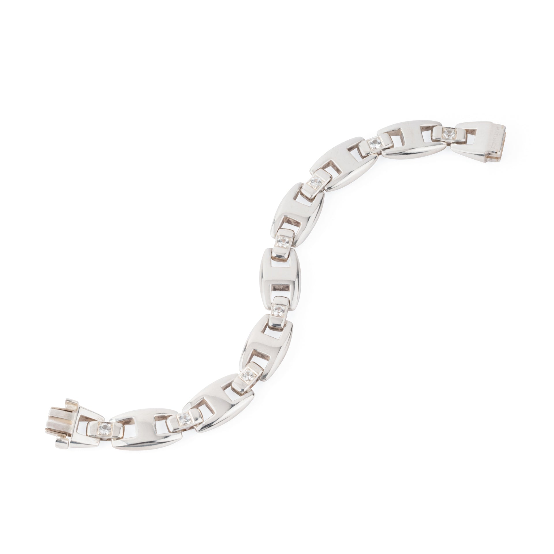 Ces derniers sont ornés de saphirs blancs ronds facettés, sublimés par un serti grain. Fermoir à cliquet