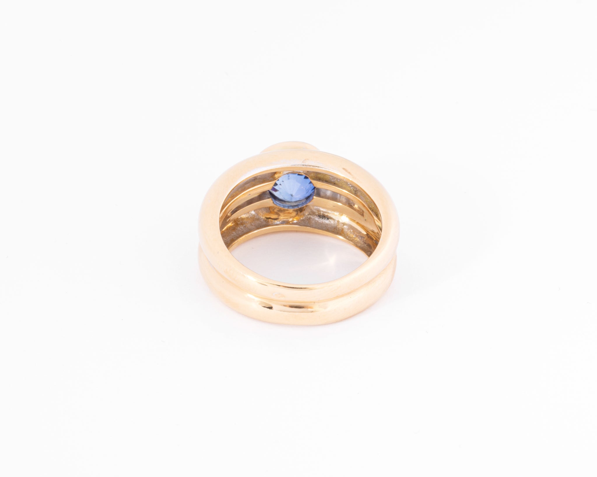 • Charger l'image dans la galerie, Bague jonc or jaune ornée d'un saphir taille ronde et diamant