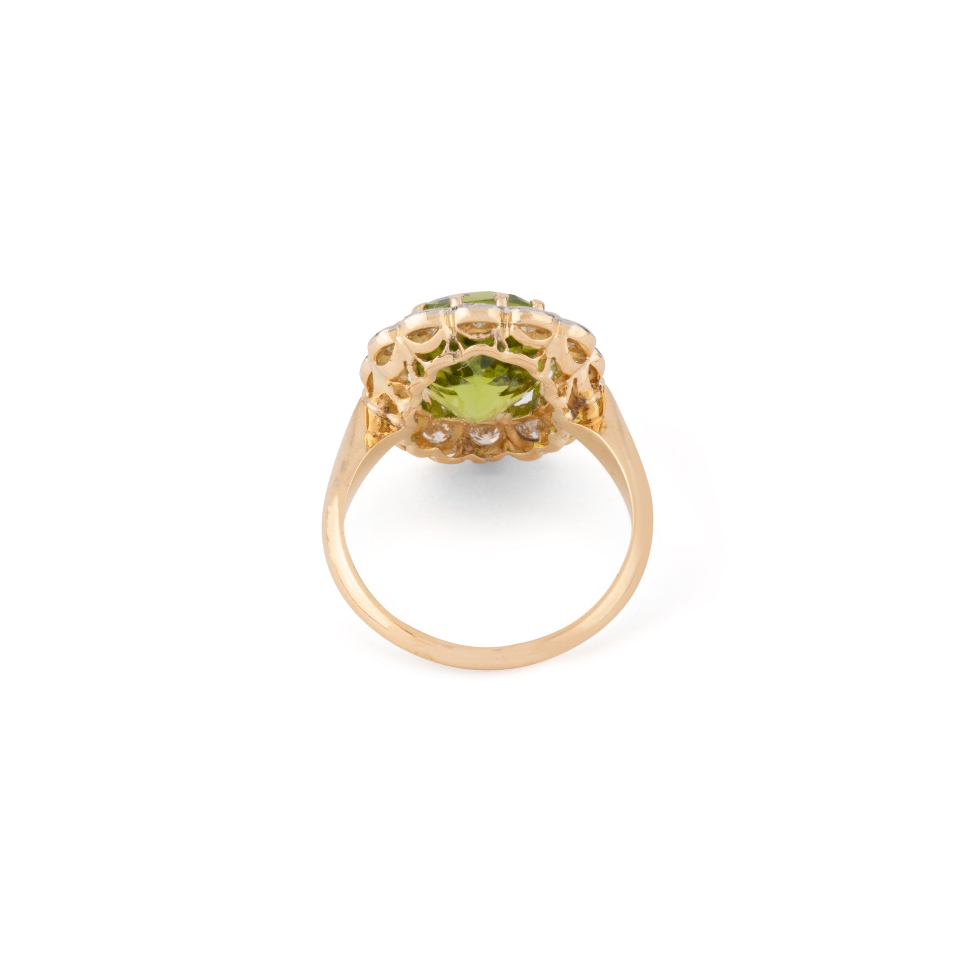 Bague Margueritte ornée d'un péridot, entouré de diamant