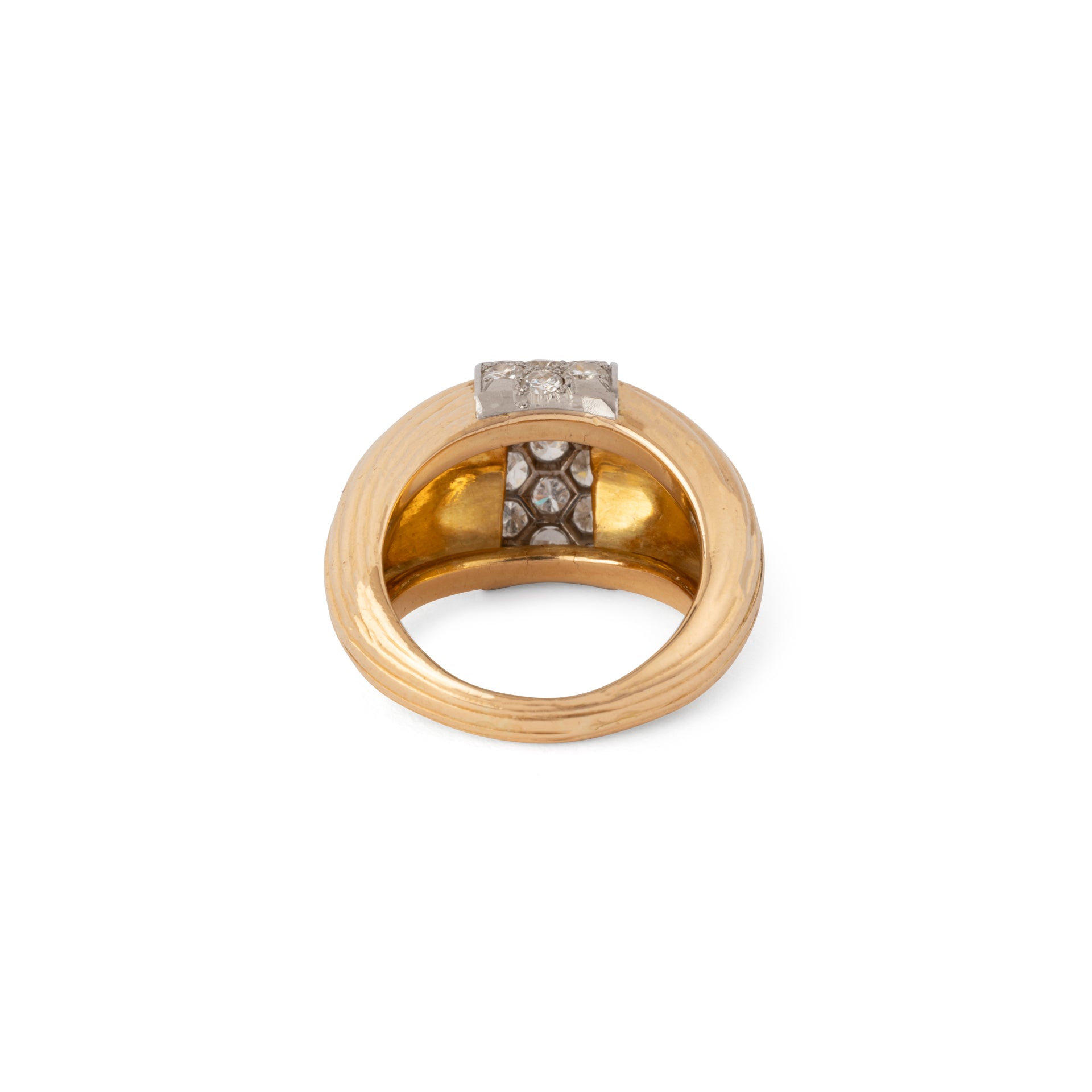 Bague or jaune et platine des années 1950 ornée d'une bande de diamant sur platine sur un jonc godronnée.