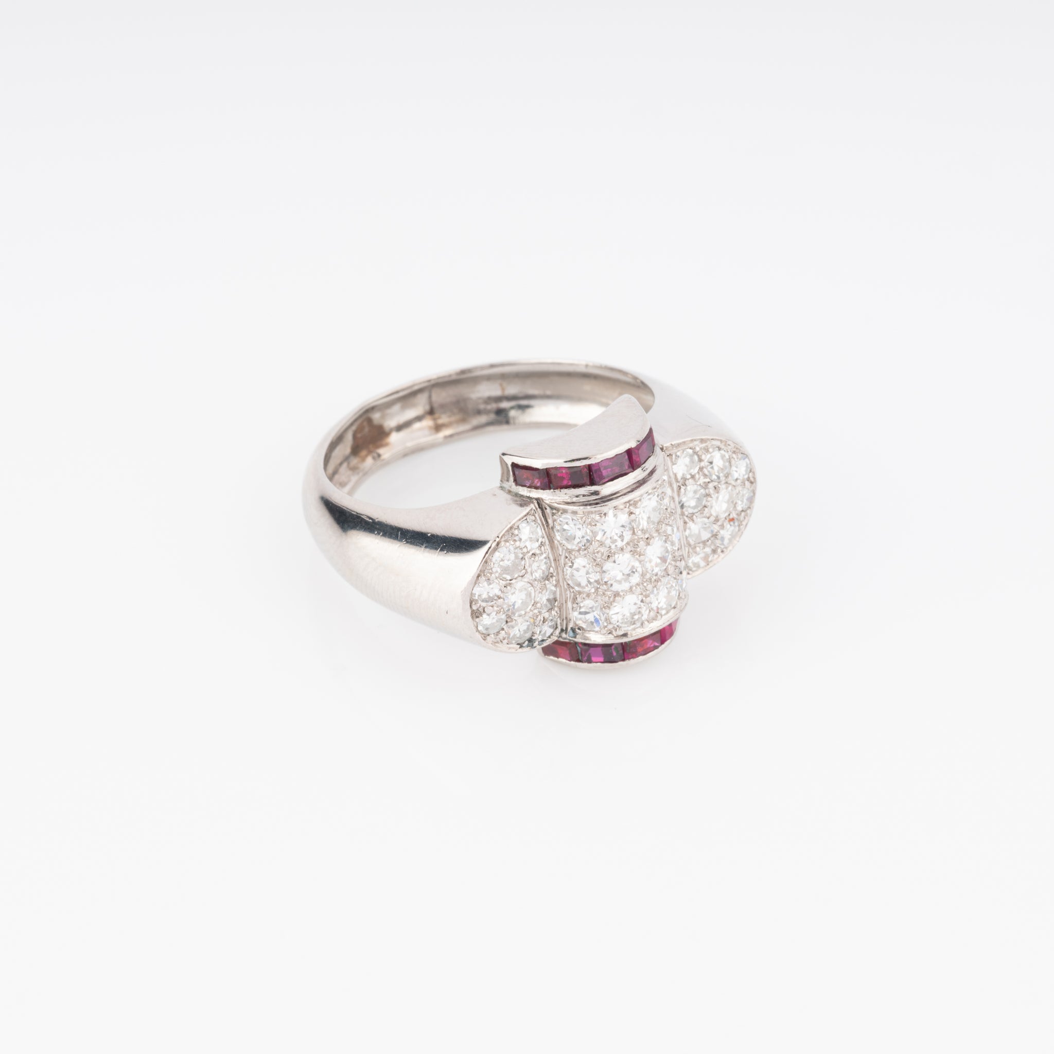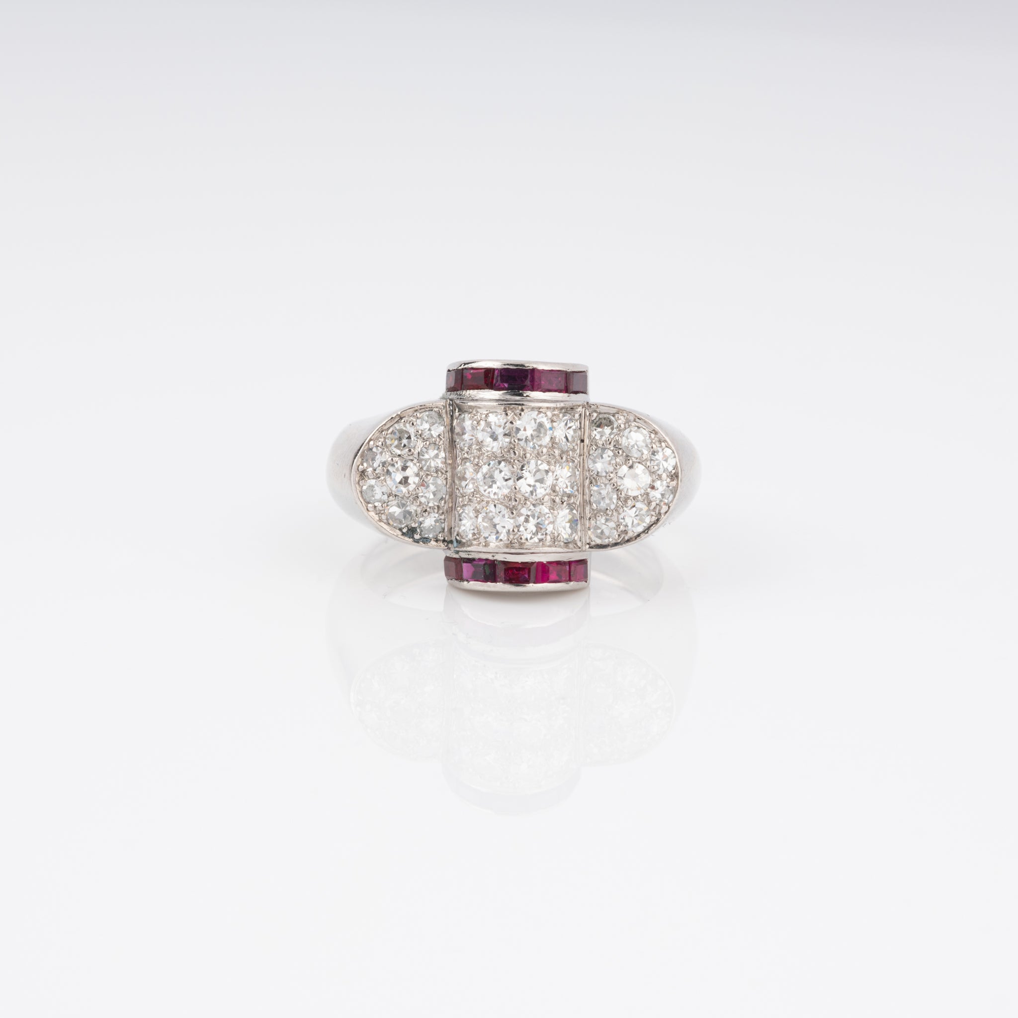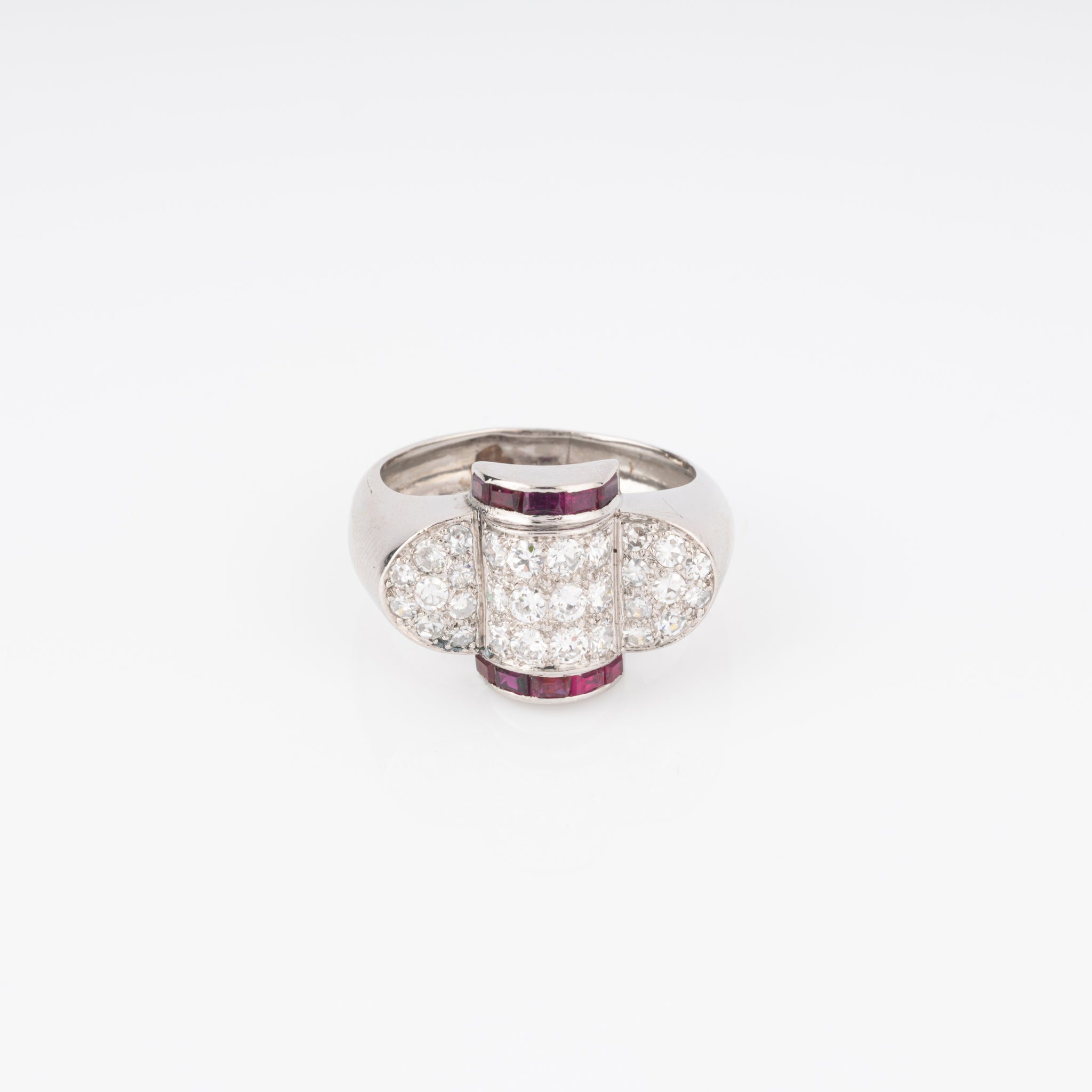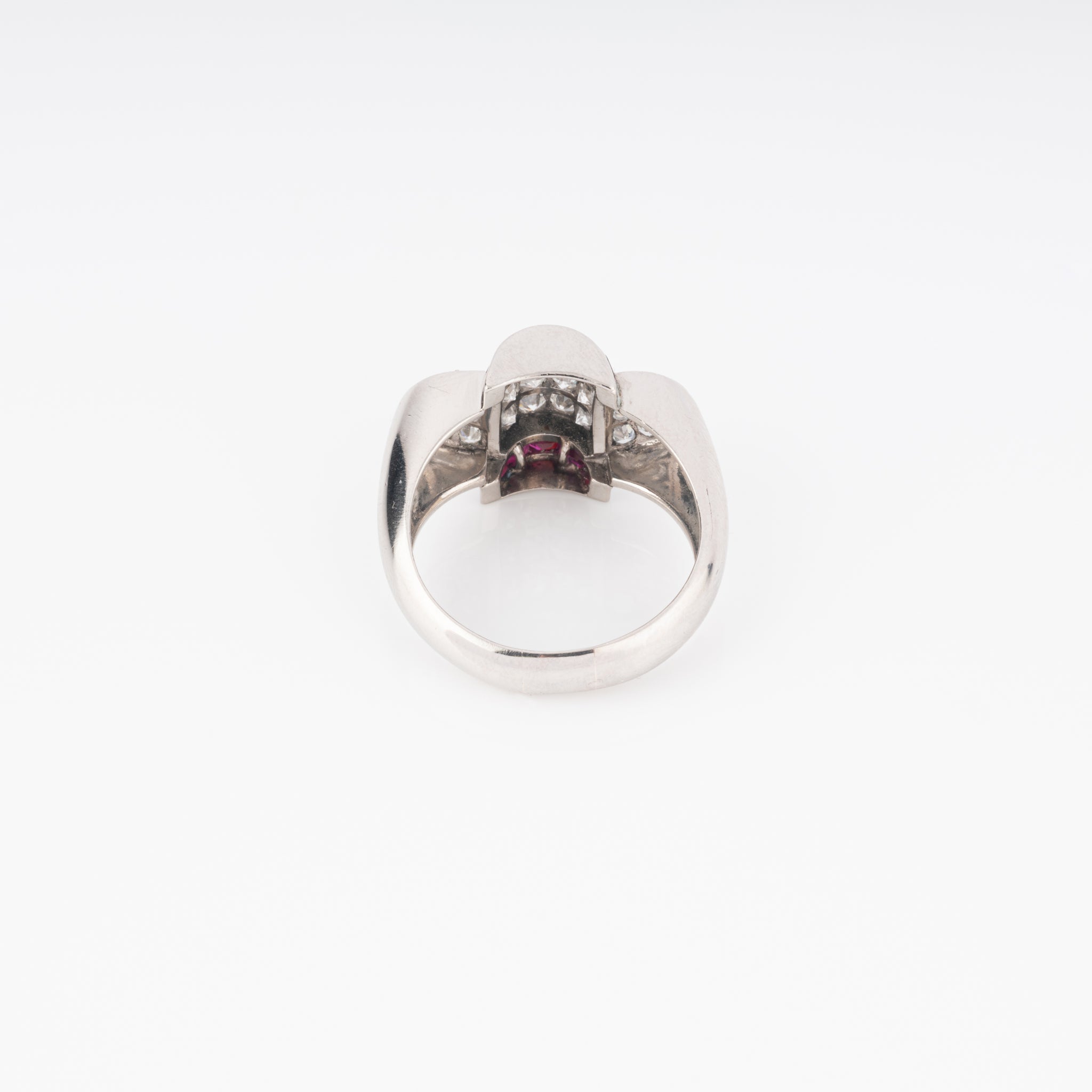 Bague tank en platine à décor d'un pont et de 2 demi-lunes sertis de diamants de taille ancienne et des diamant taille 8/8.