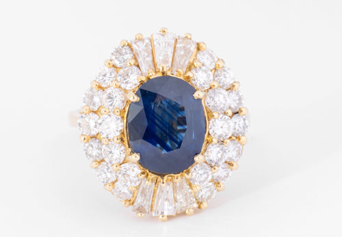 Bague or jaune 1910 en saphirs cabochons et diamants