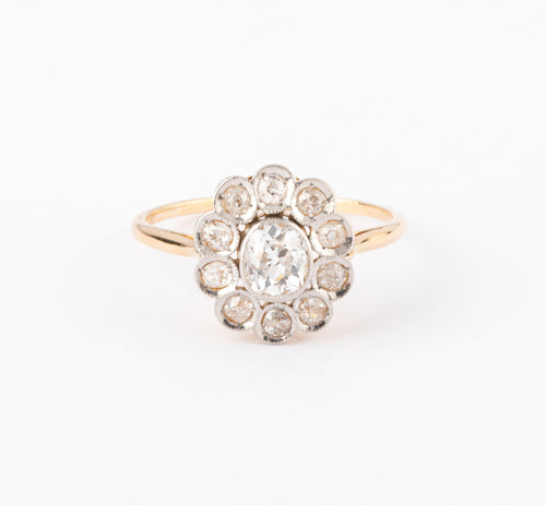 Bague marguerite ancienne en or et diamant