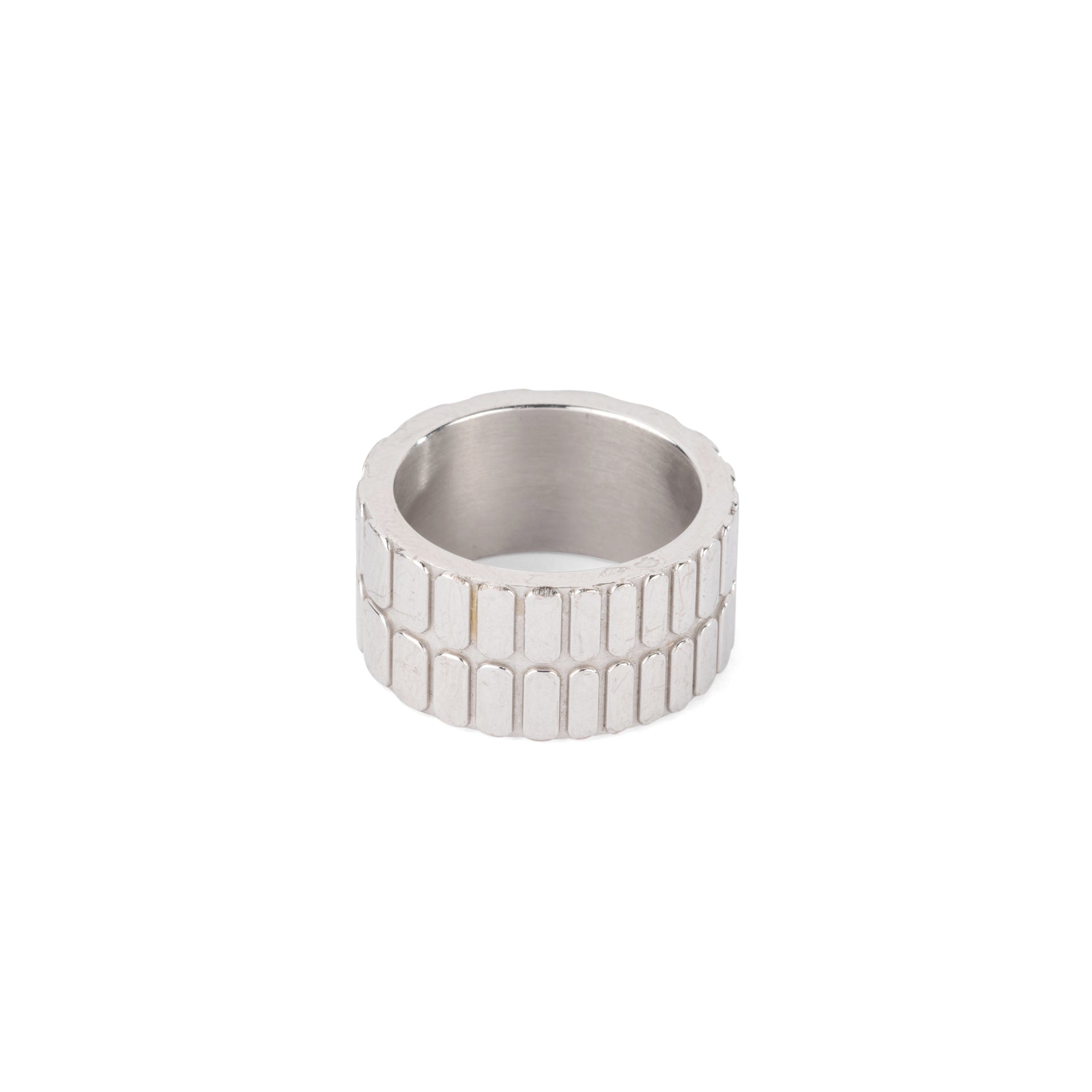 Bague Hermès en or gris, composée d'un bandeau à motif texturé.