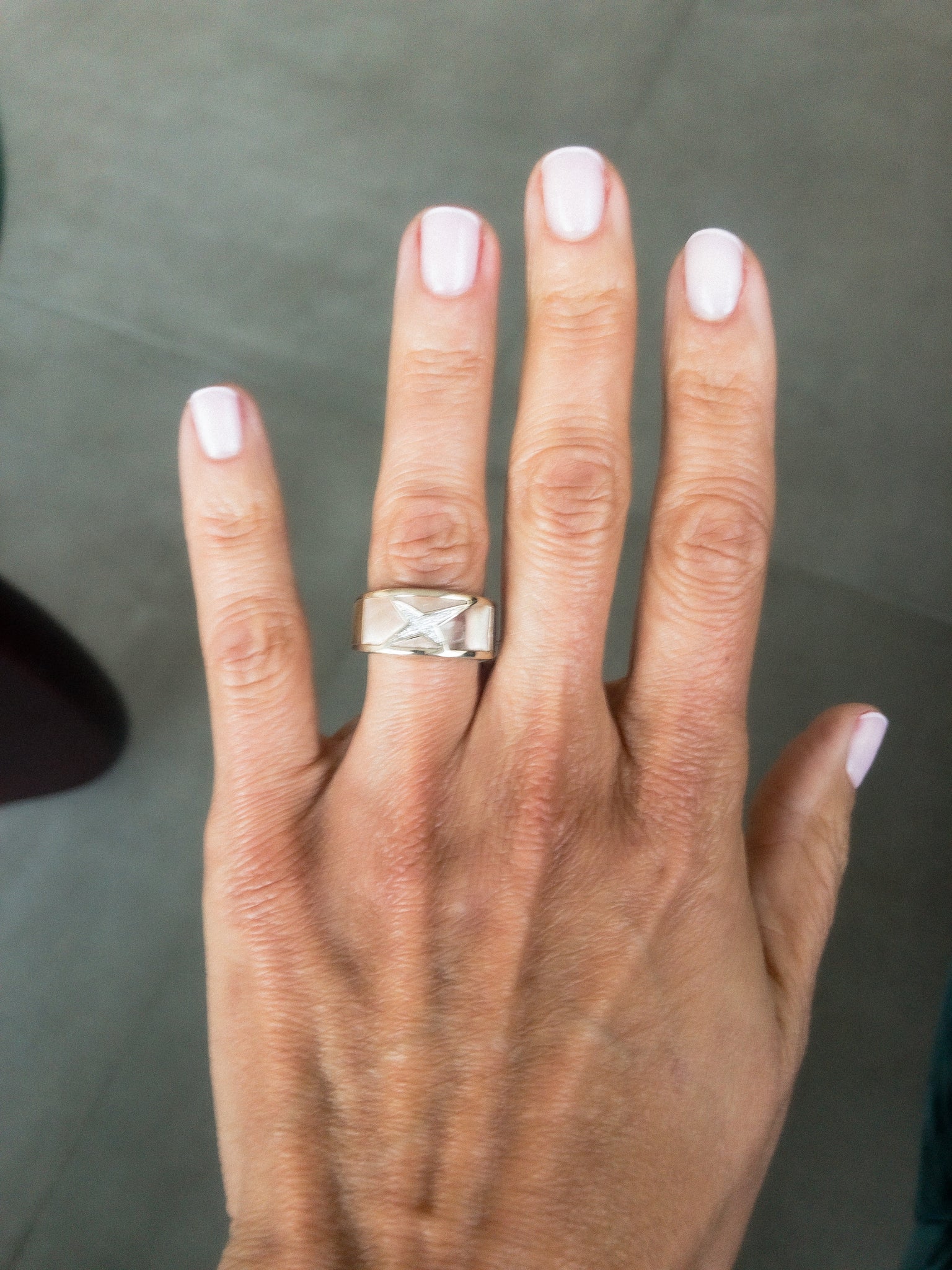 Bague or nacre et diamants signée de la Maison Mauboussin modèle Etoile Divine., composée d'un important anneau ruban, ornée en son centre d'une belle étoile délicatement pavée de diamants de taille brillant.