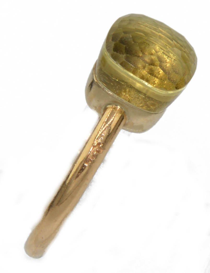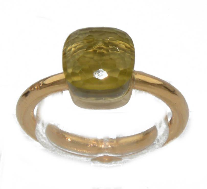 Très jolie bague de la maison italienne Pomellato modèle Nudo PM en or rose  ornée en son centre d'un cabochon facetté en quartz lemon, sur un élégant anneau bombé.