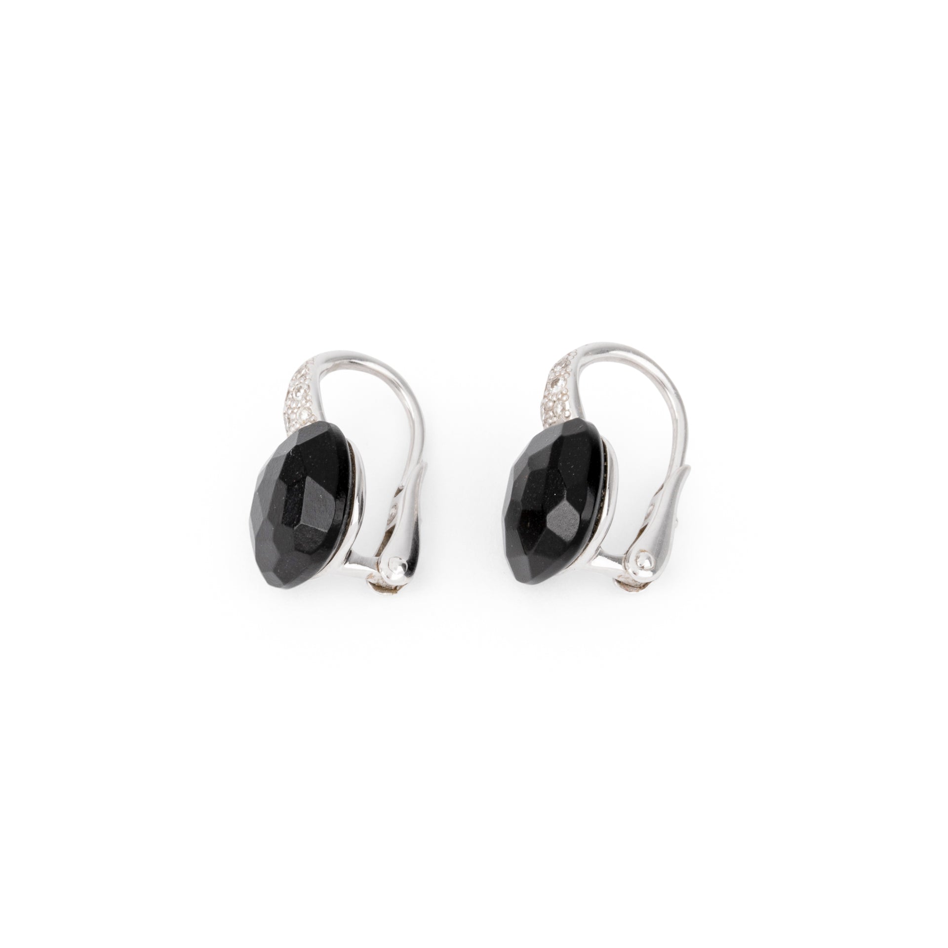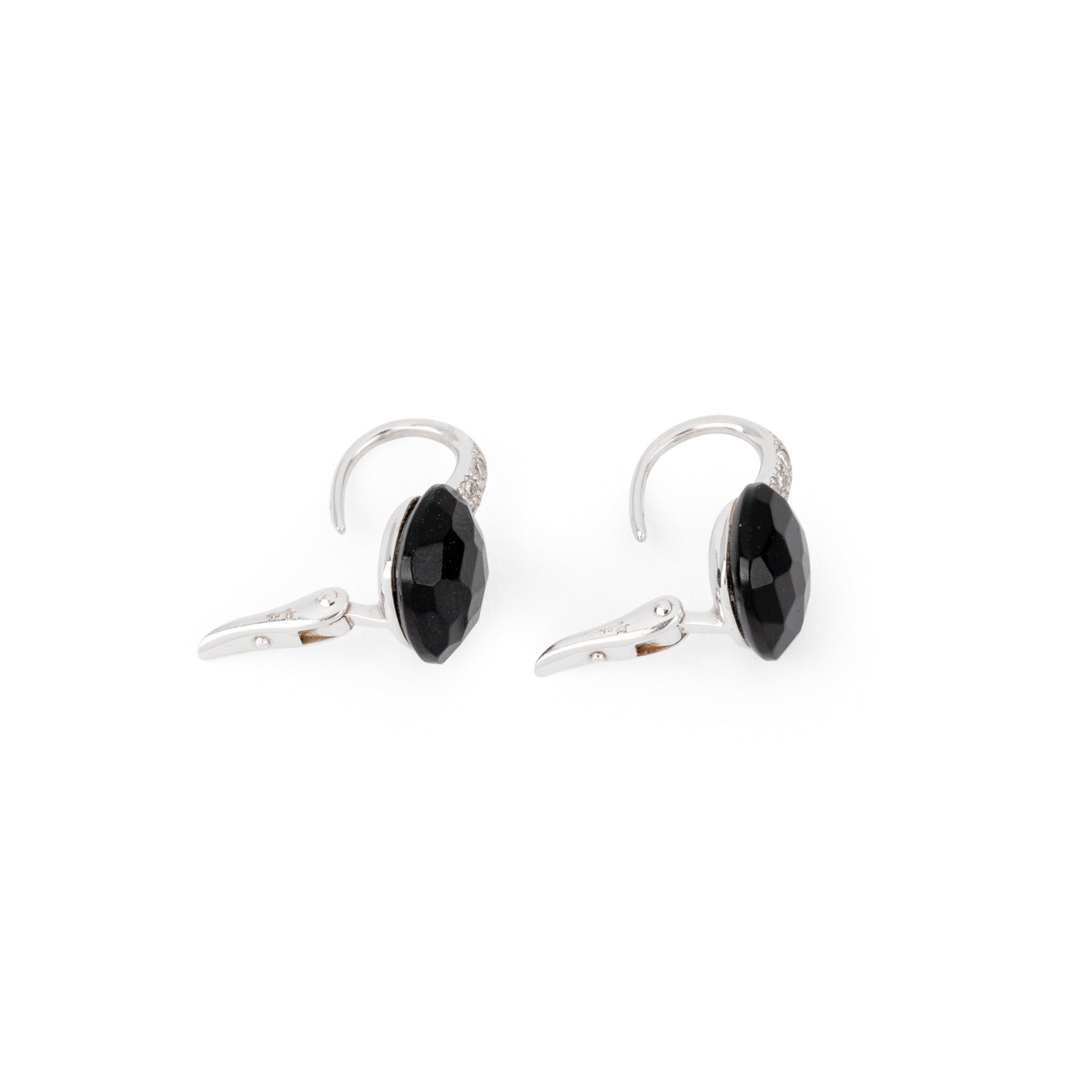 Les boucles d'oreilles de la maison italienne Pomellato,modèle Capri,orné de 2 cabochons de Jais facettés, pavé sur l'ouverture.