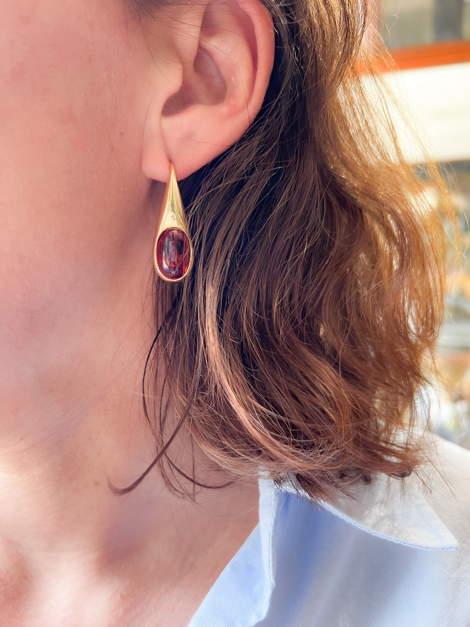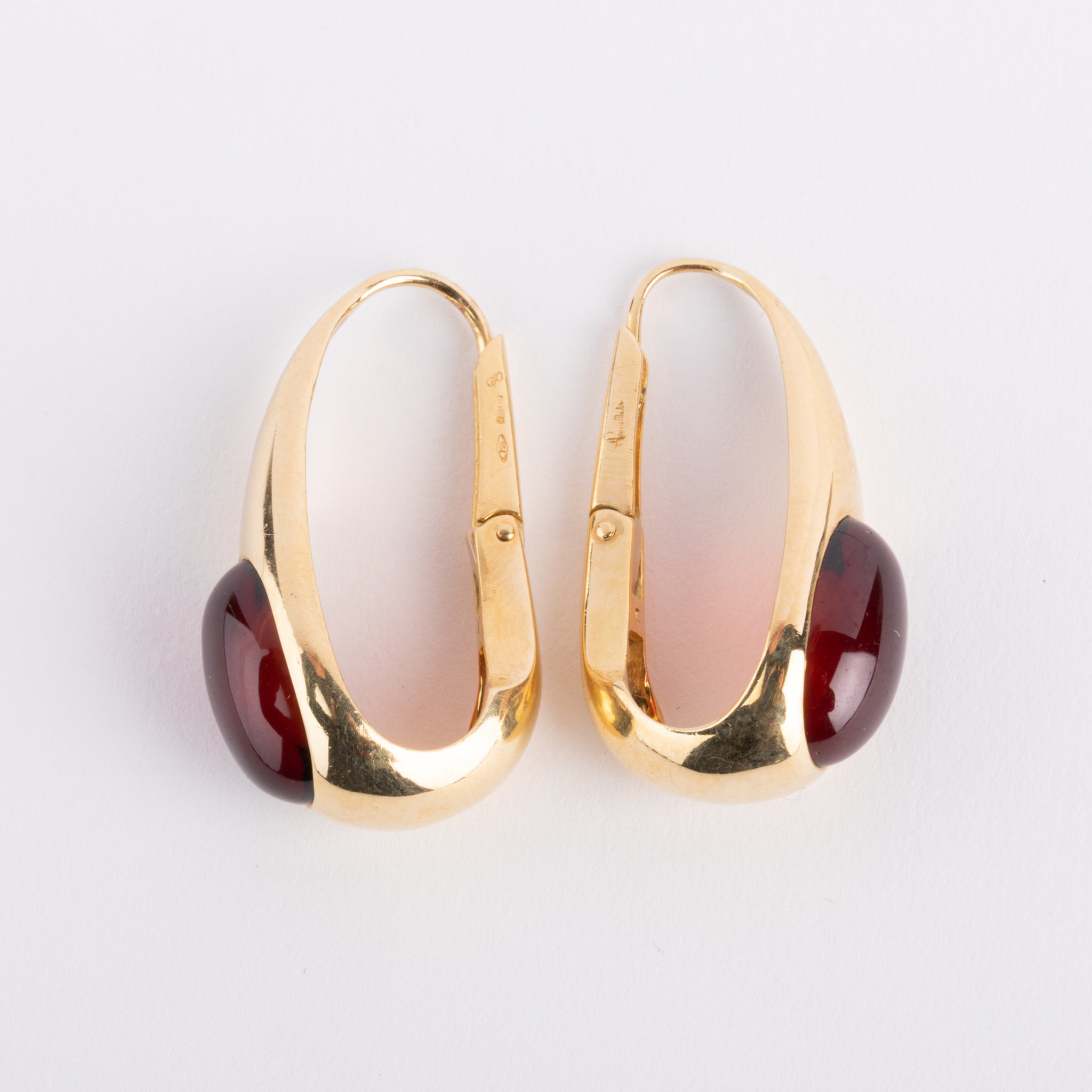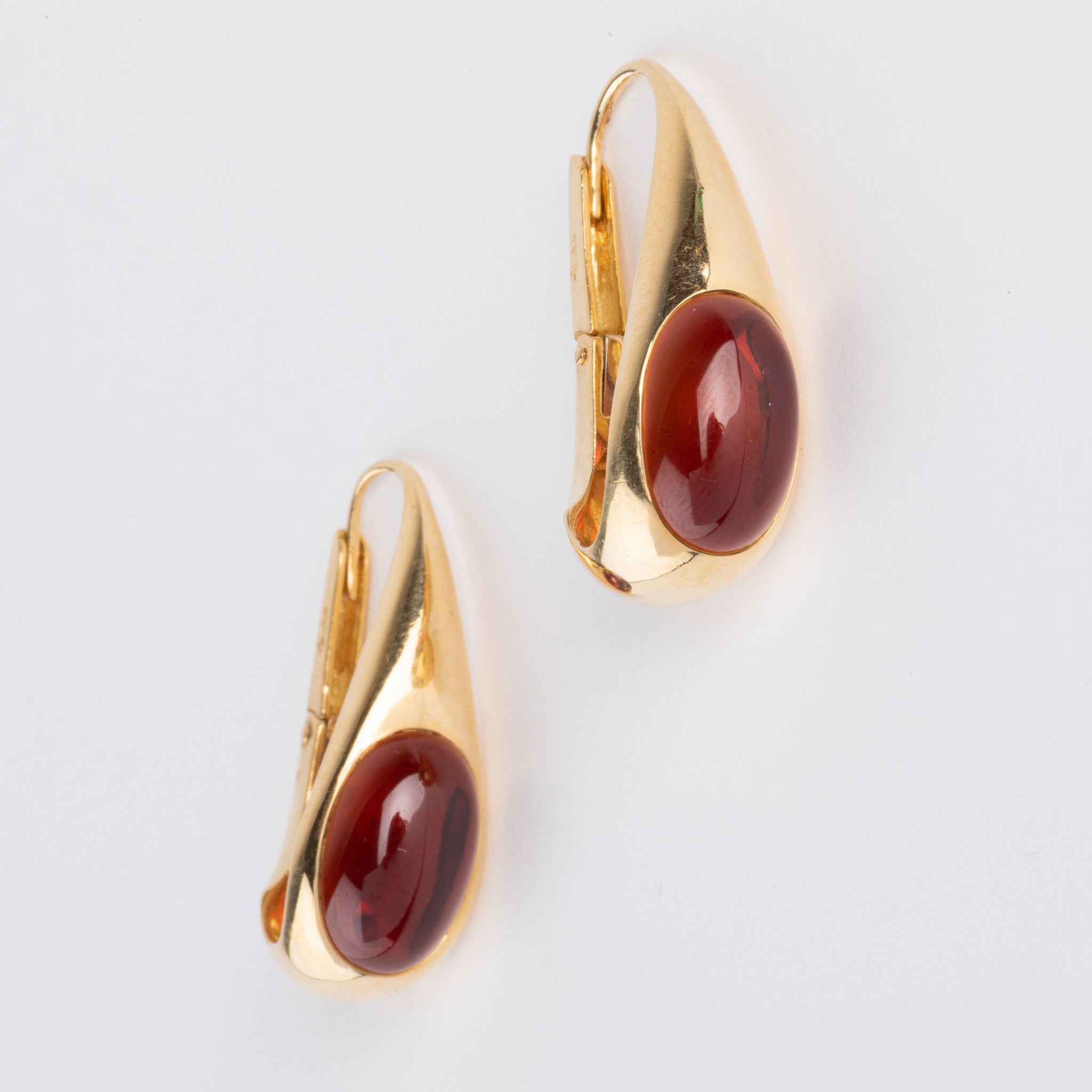 Boucles d'oreilles en or jaune ovaloïdes serties d'un grenat ovale de la maison Pomellato