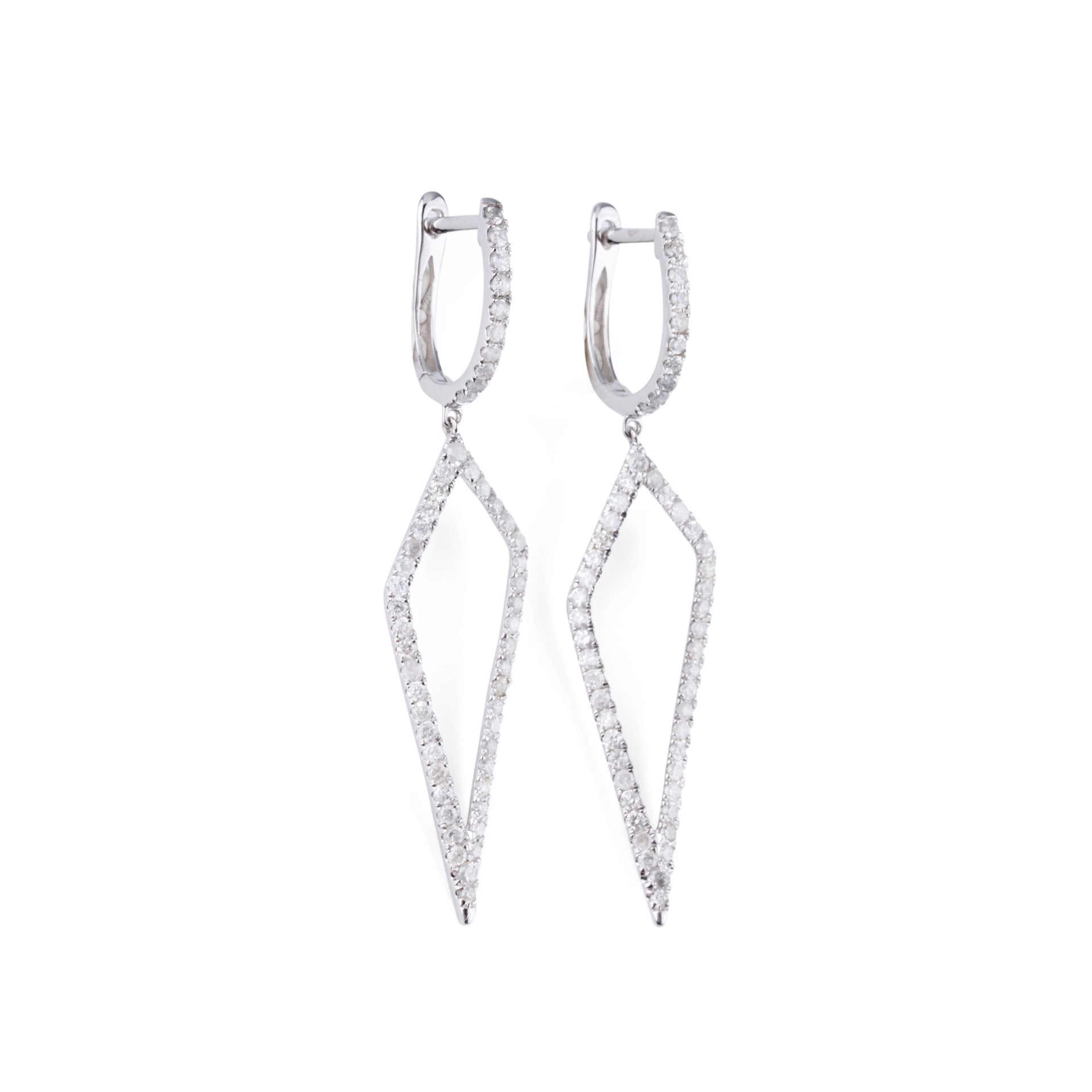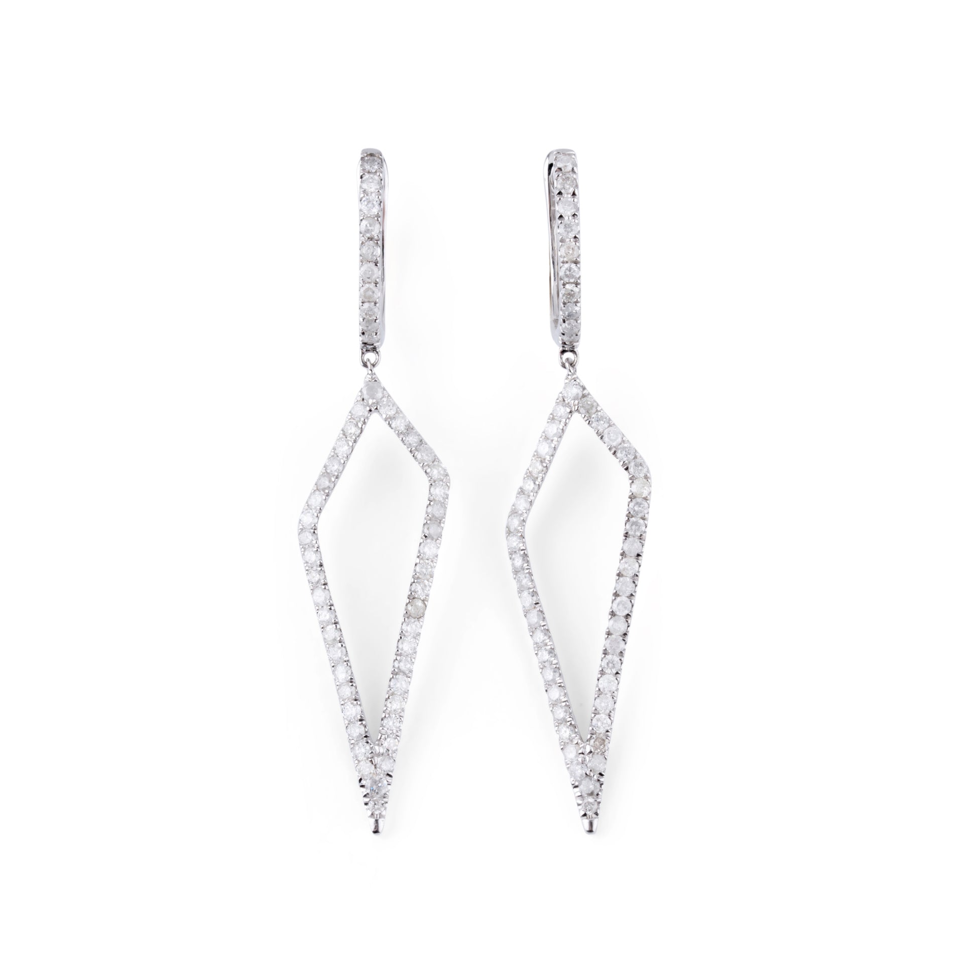 Paire de boucles d'oreilles en or gris à formes géométriques ajourées pavées de diamant.