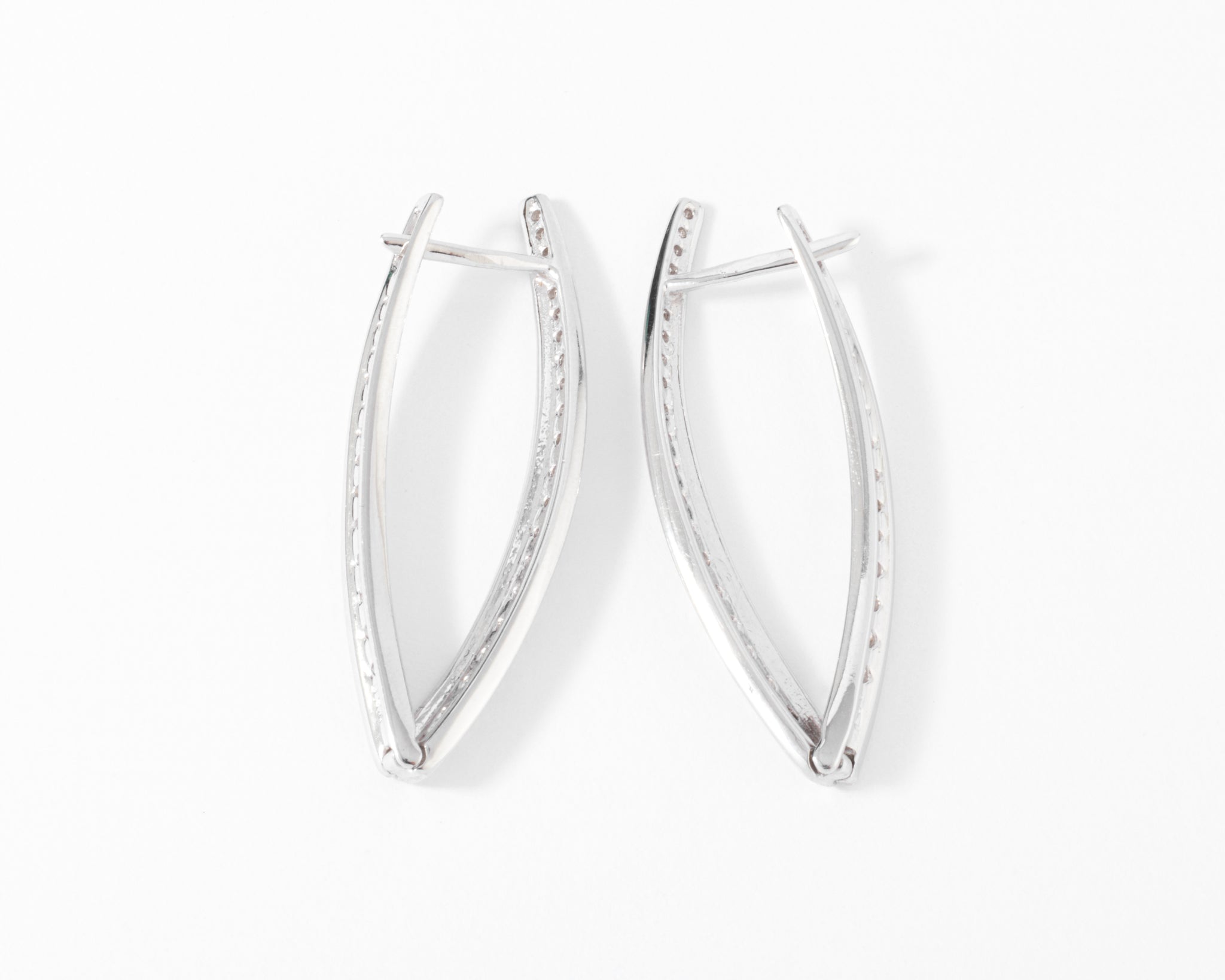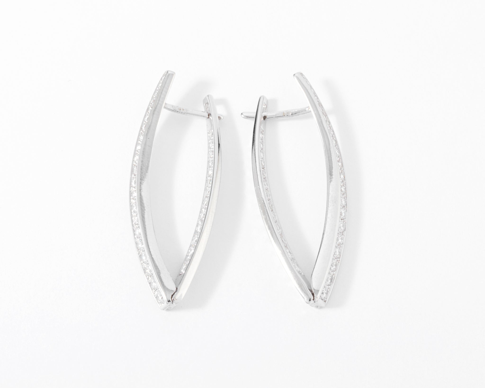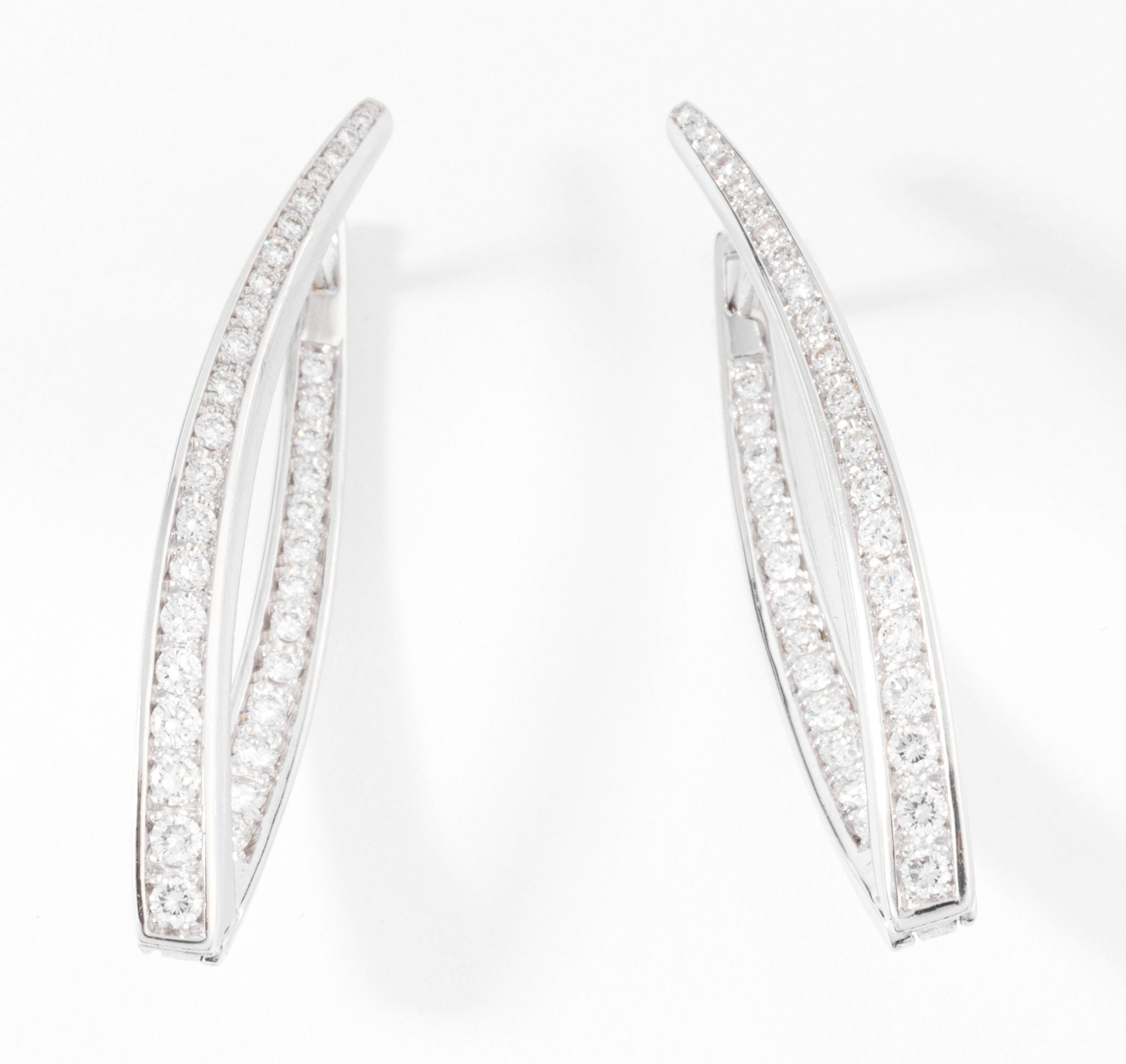 Une paire de Boucles d'oreilles géométrique pavée sur le devant et l'intérieur de diamant taille brillant.