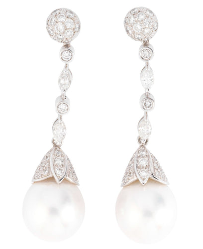 Paire de boucles d'oreilles en Perles Akoya et diamants