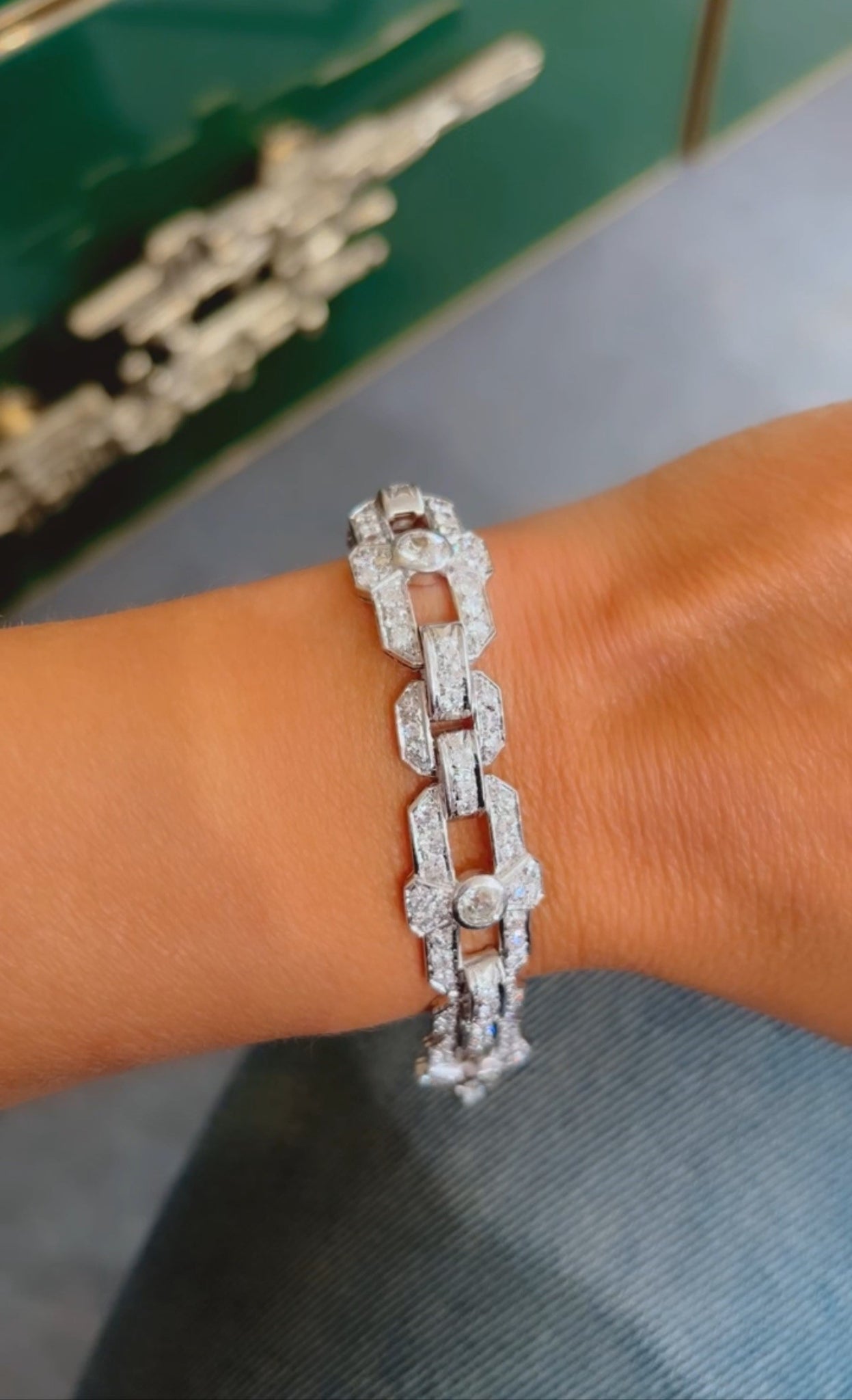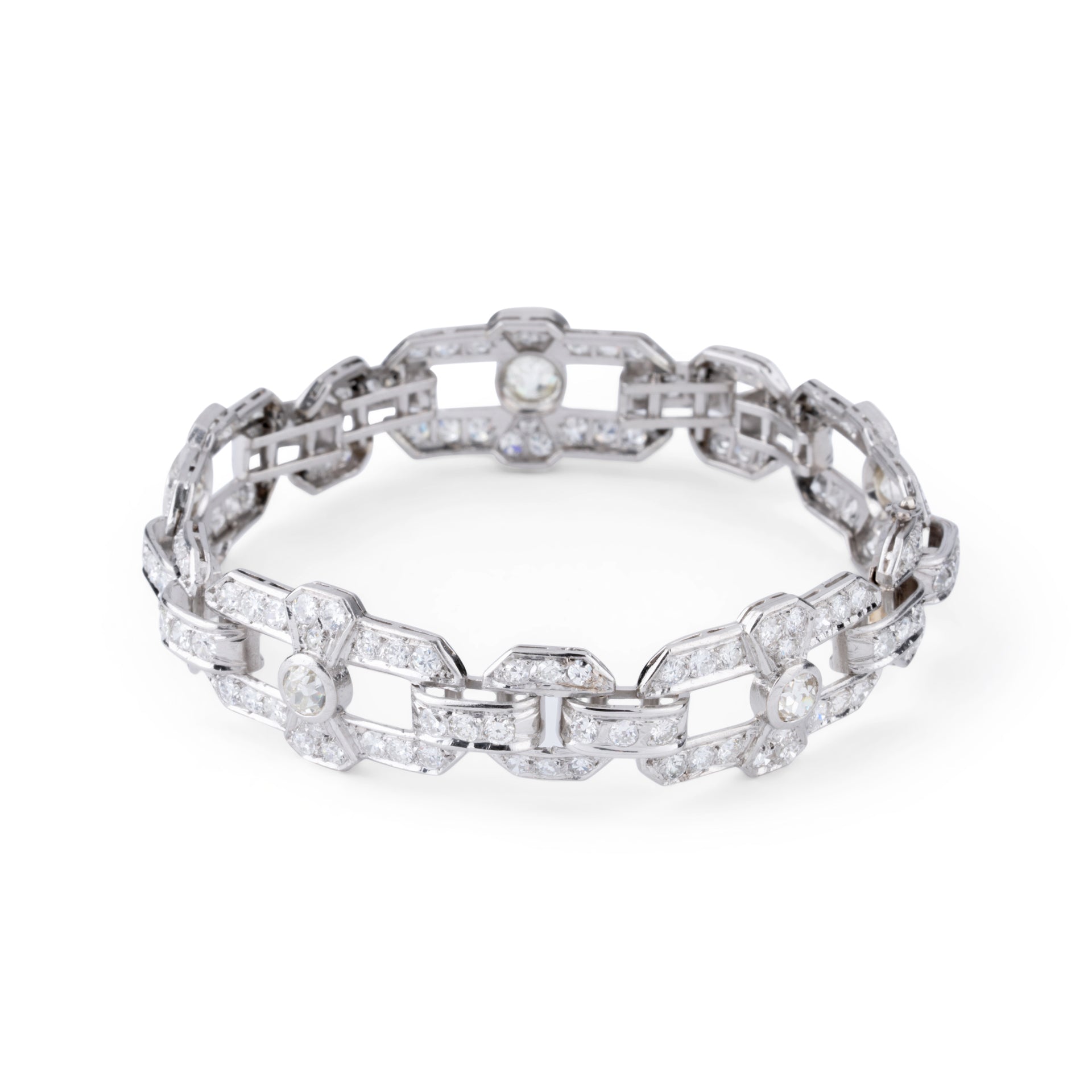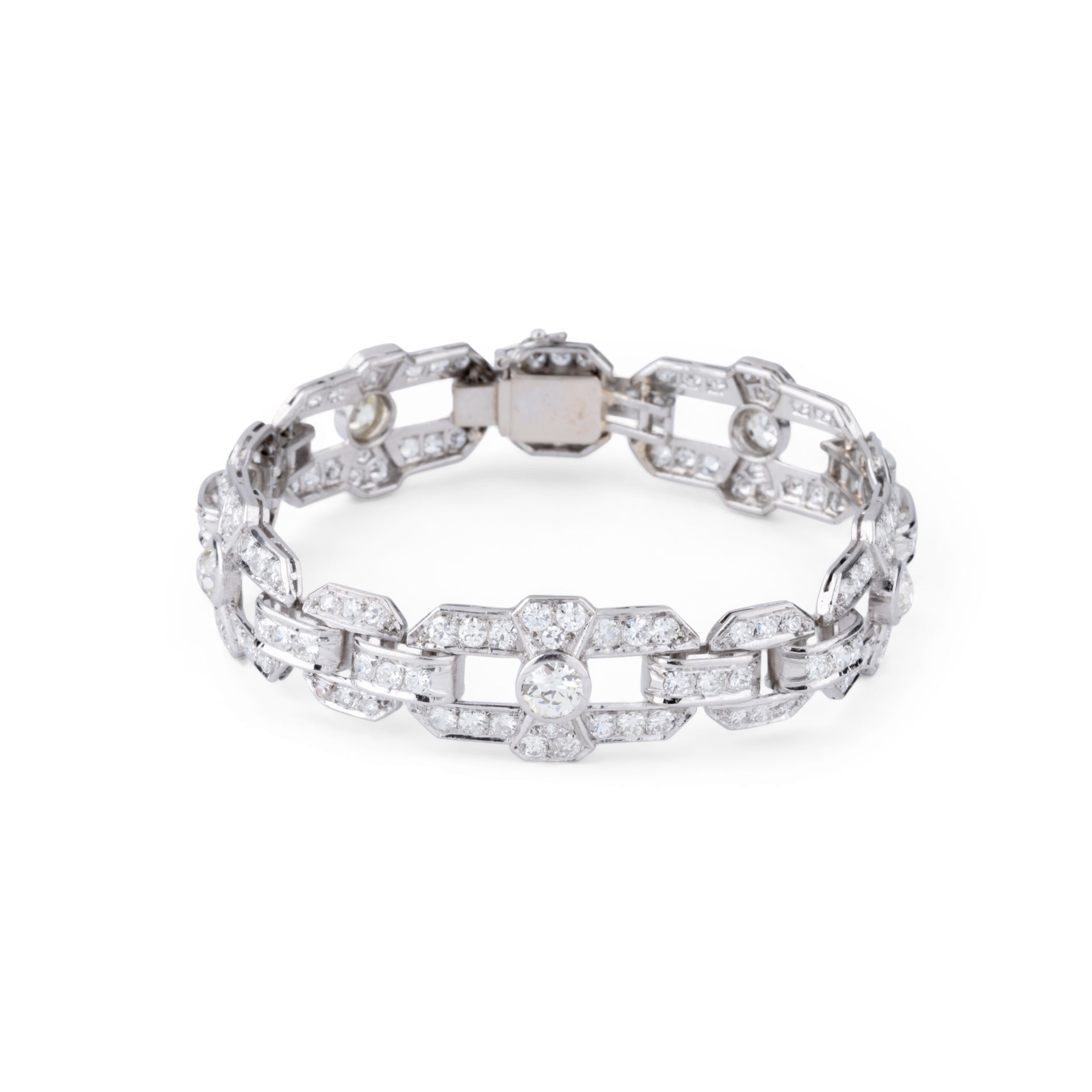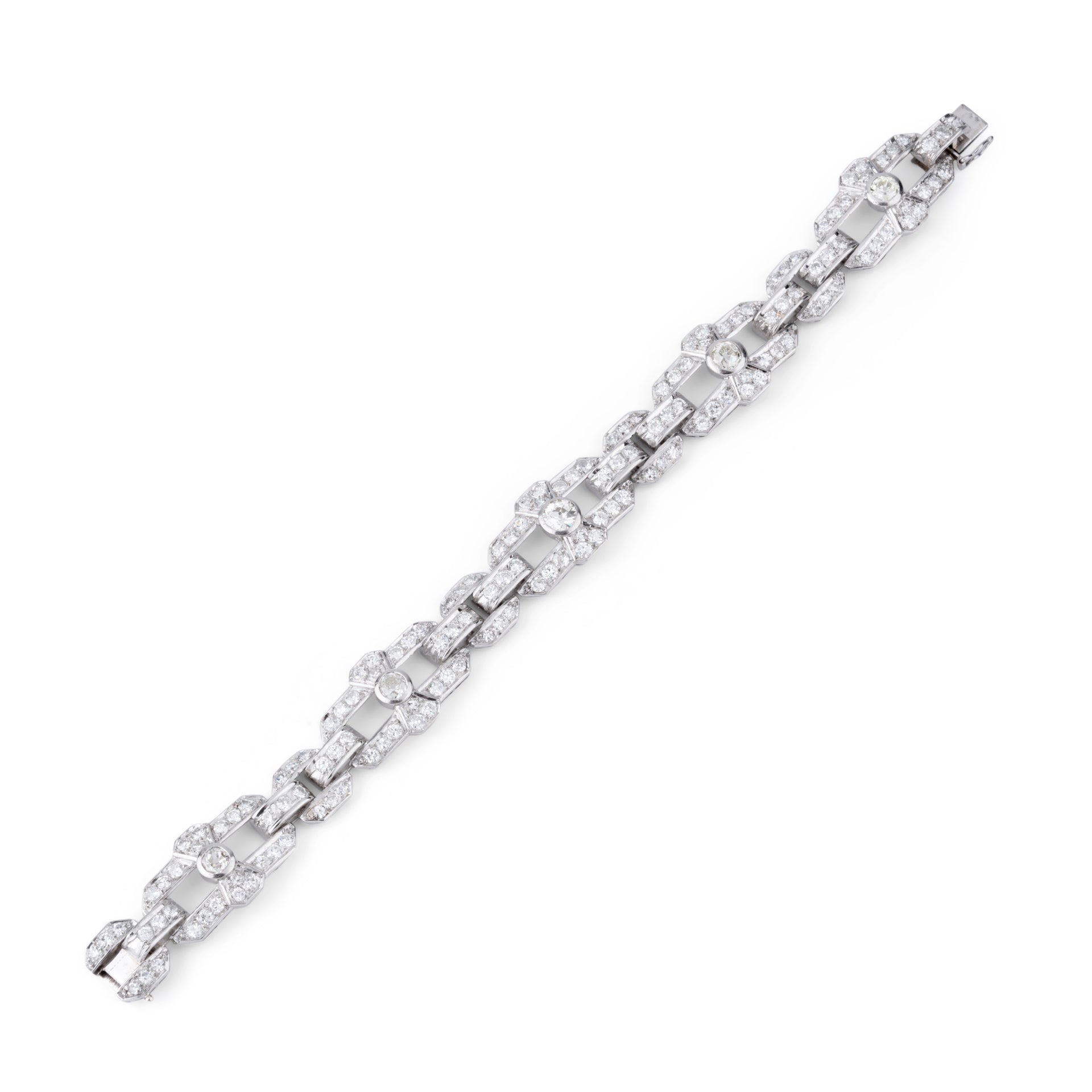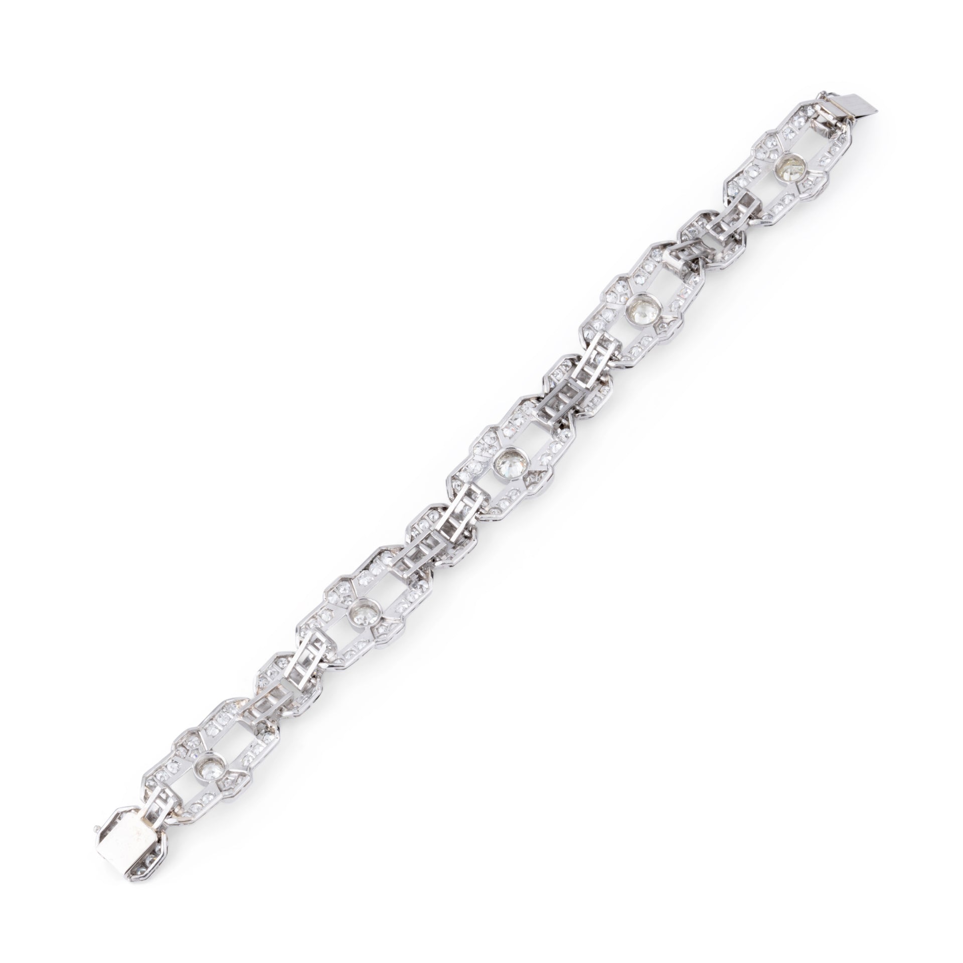 Bracelet Art Déco en platine et diamants à motifs géométriques
