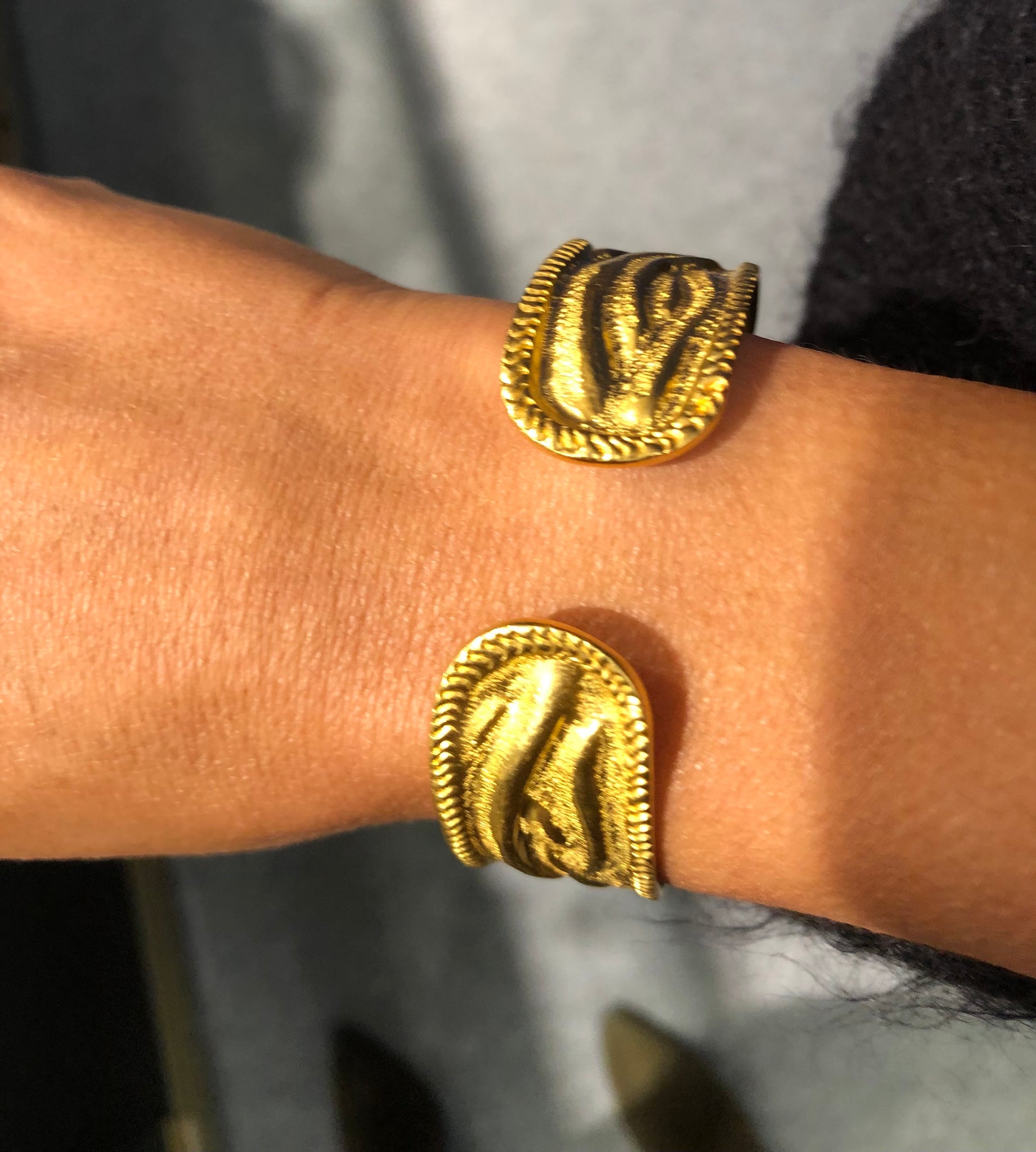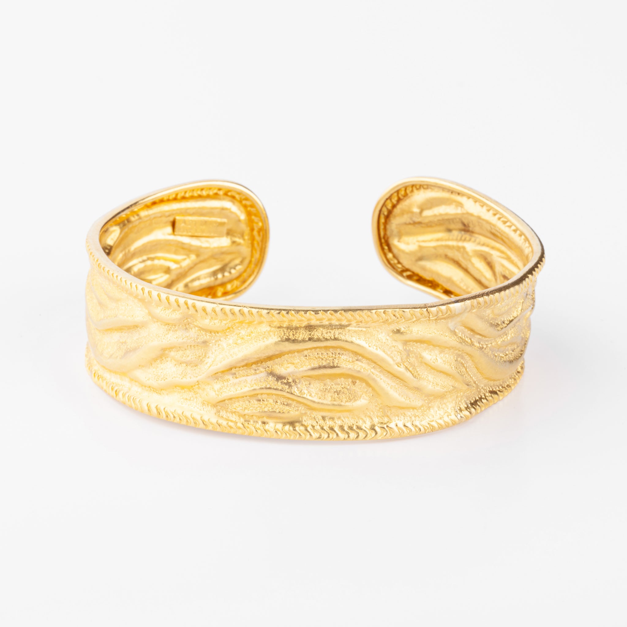 Bracelet jonc ouvert or jaune 22k du créateur Ilias Lalaounis texturé.