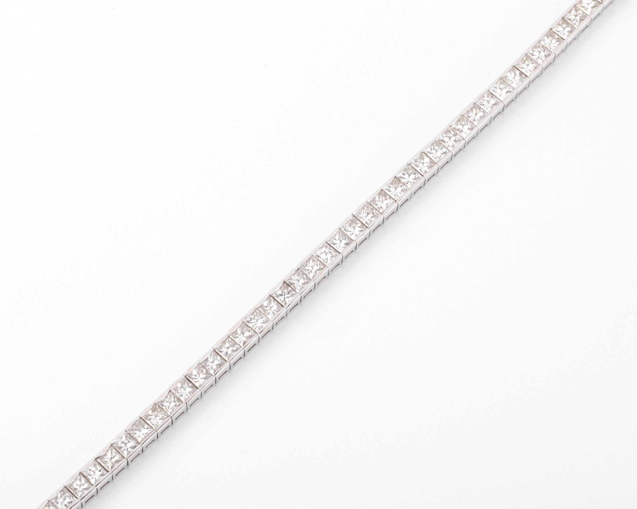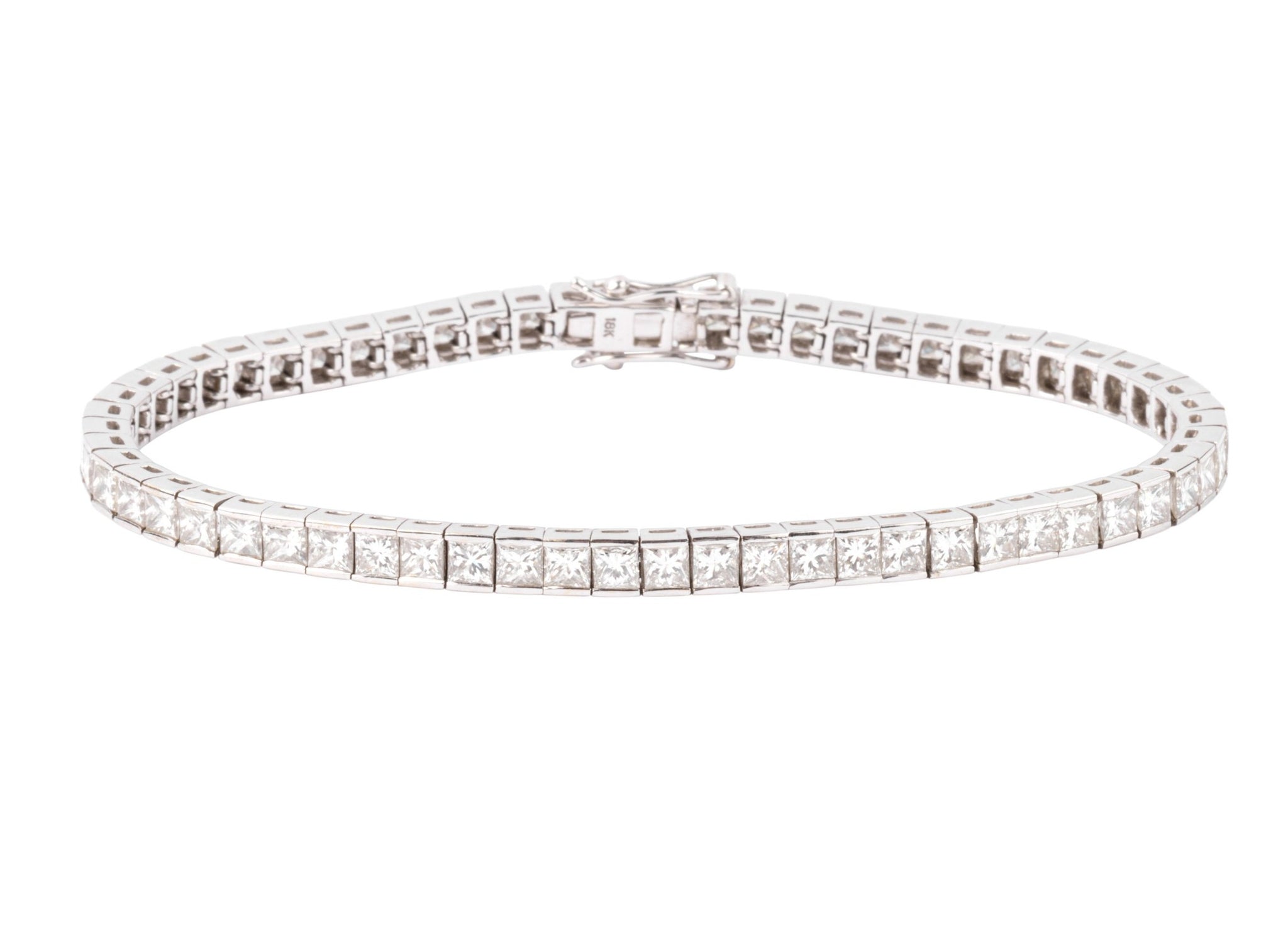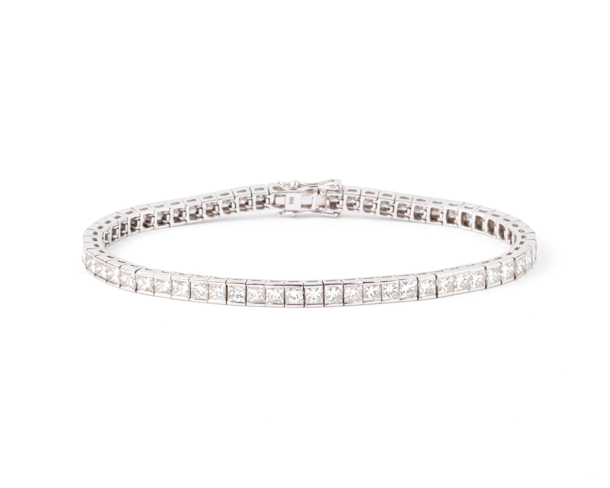 Bracelet ligne en diamant taille princesse sur or gris en serti rail.