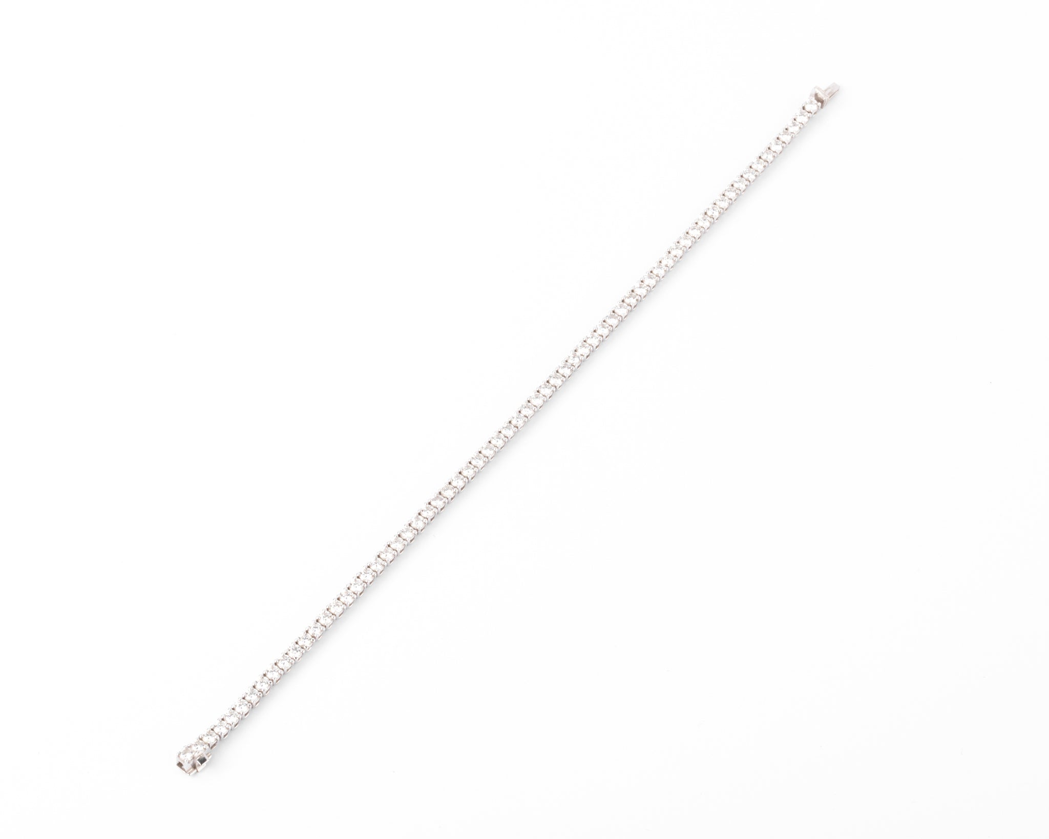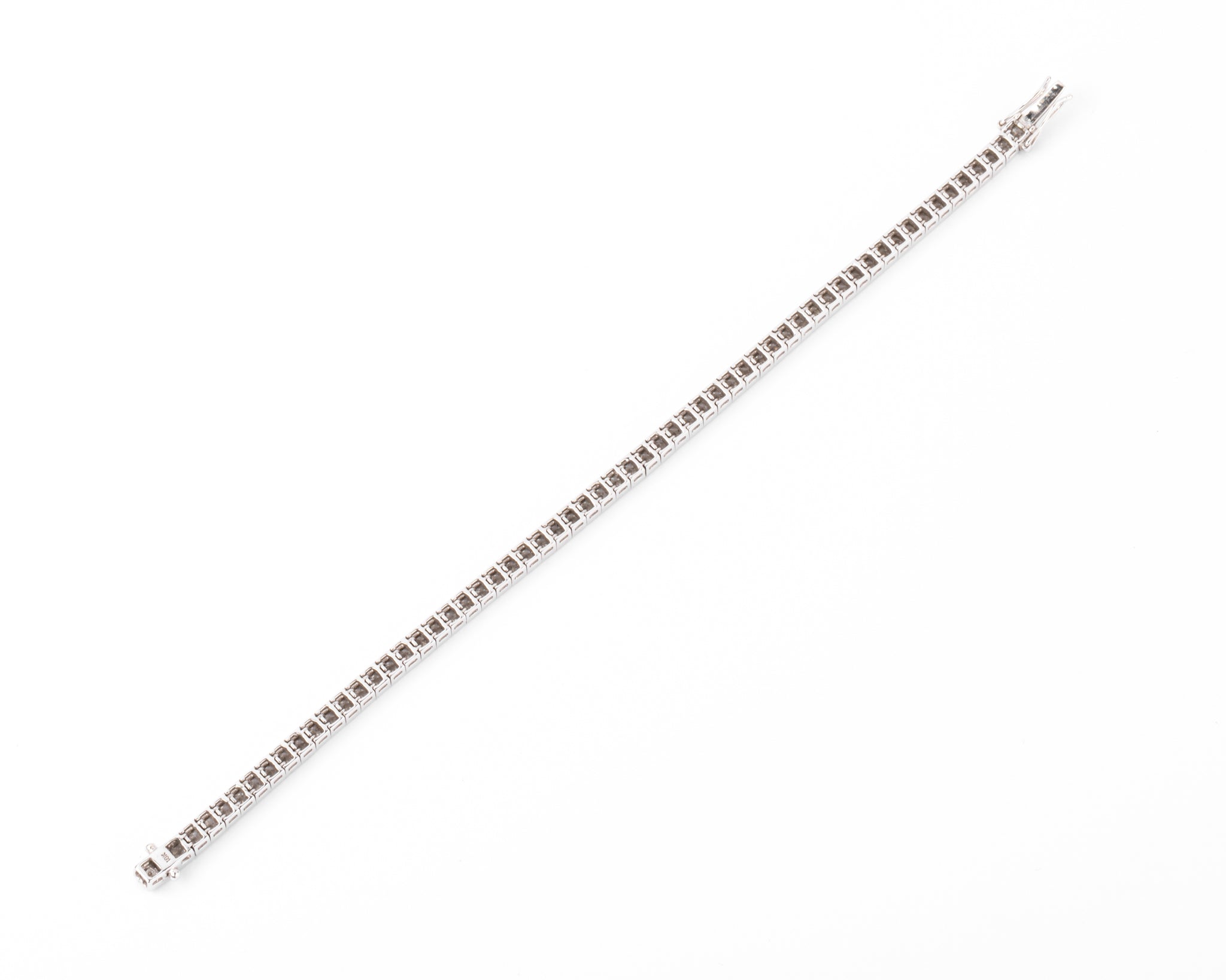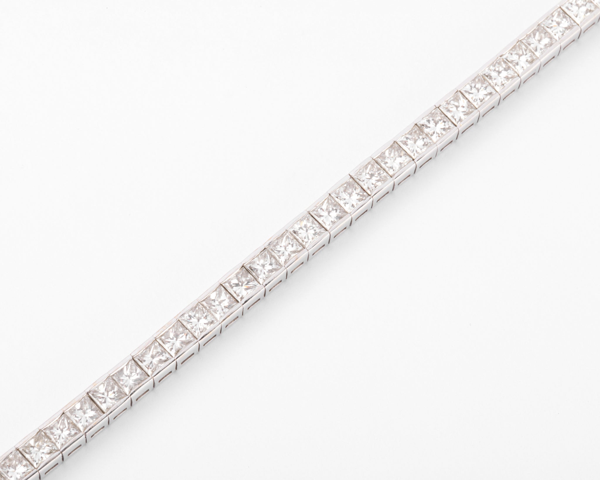 Bracelet ligne en diamant taille princesse sur or gris en serti rail.