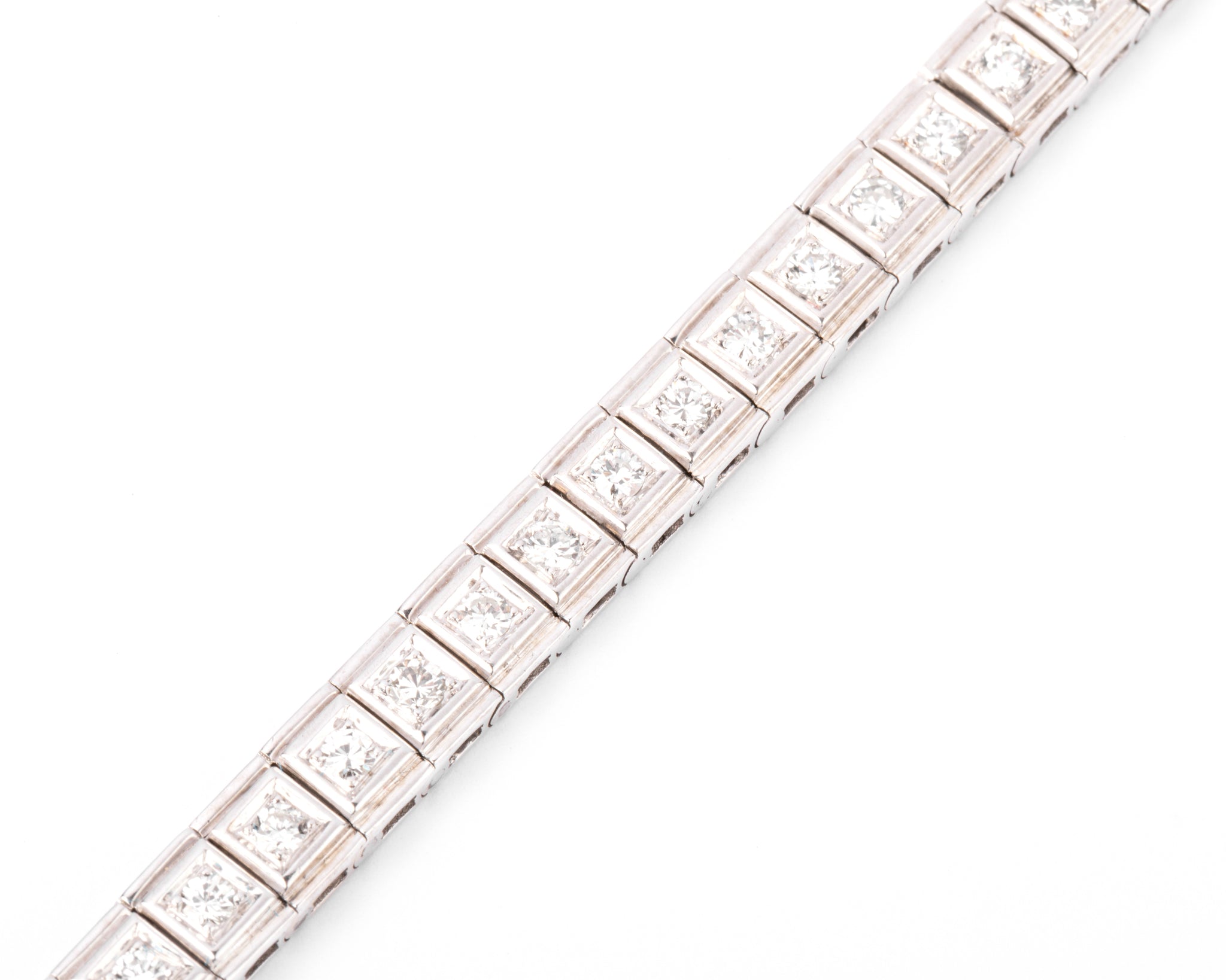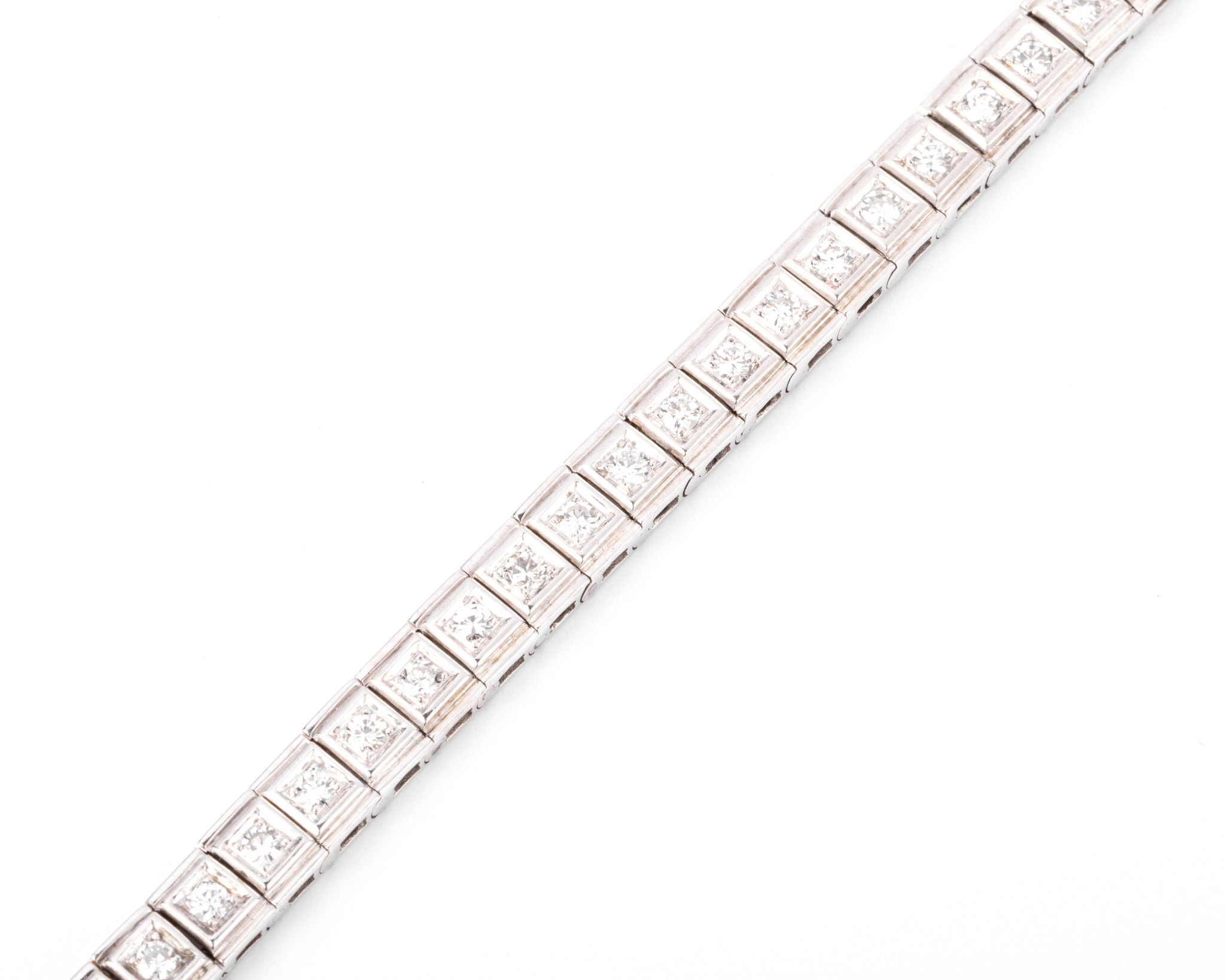 Bracelet riviere en platine en serti forme carrée orné de 58 diamant taille brillant.