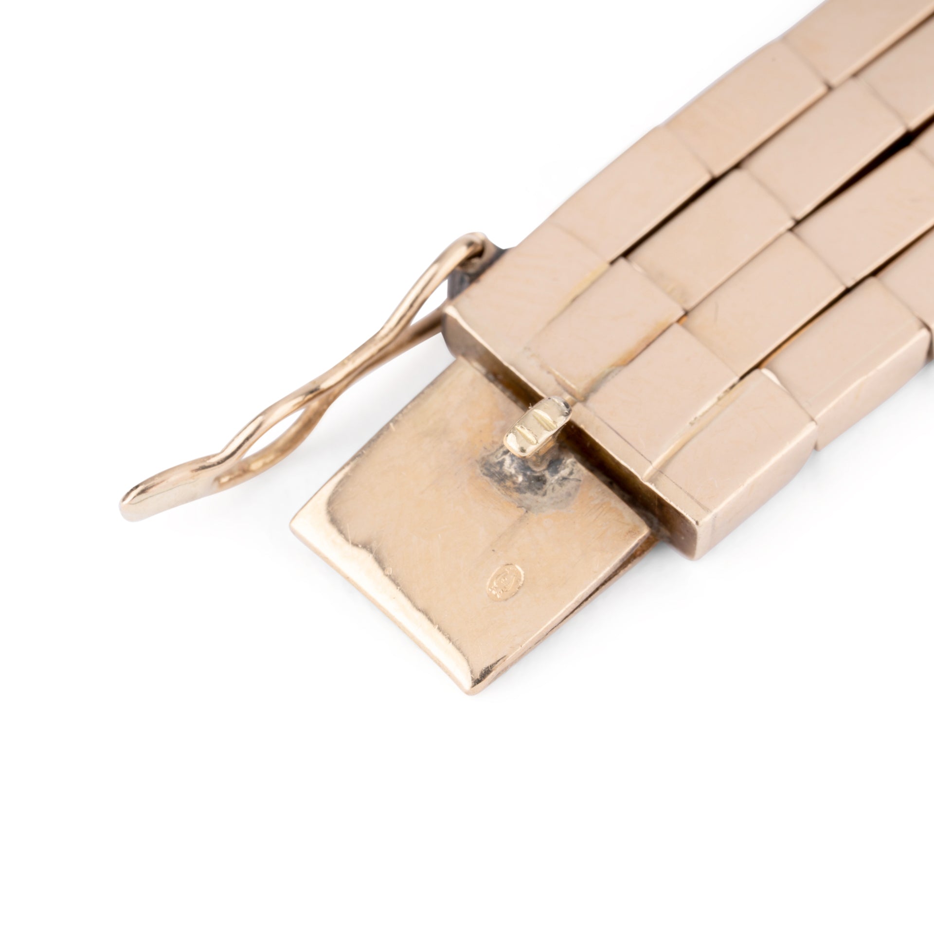 Bracelet des années 1945-1955 formant des maillons rectangles en or rose.