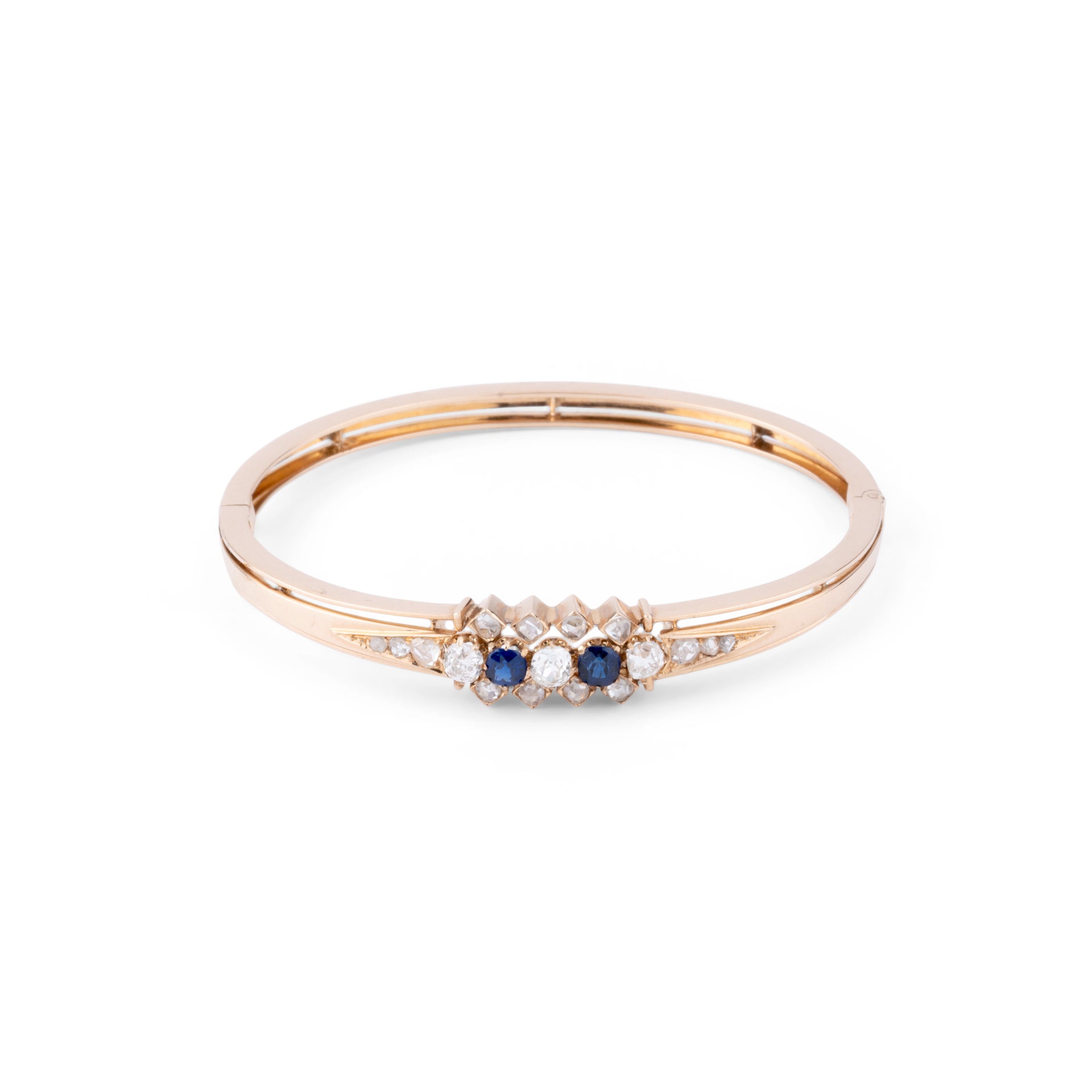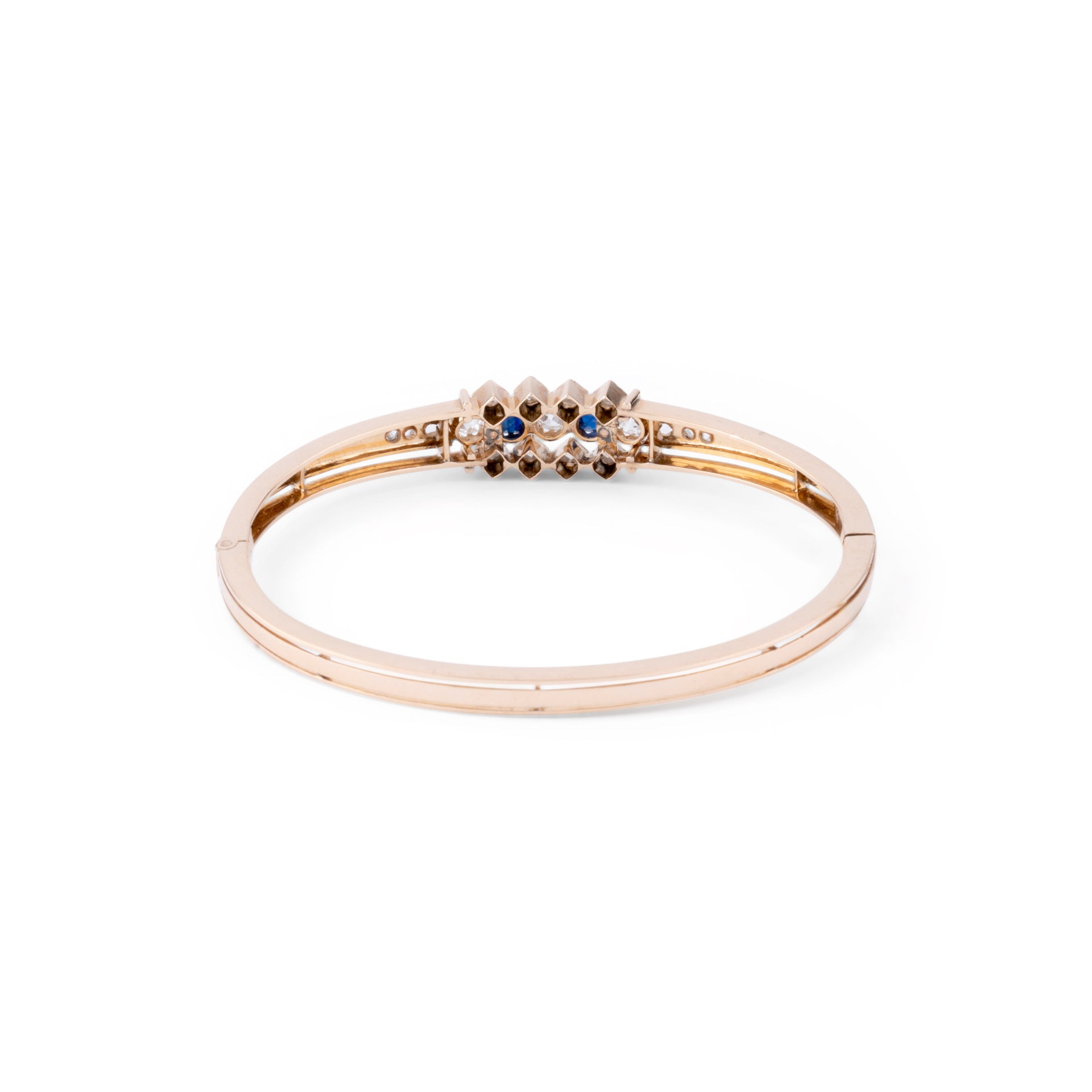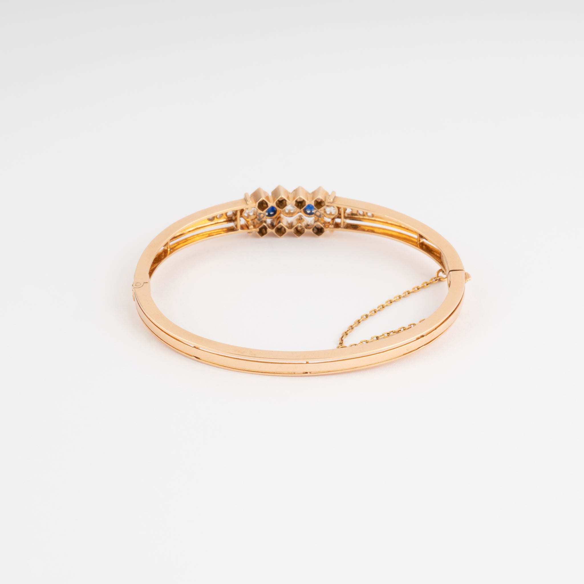 Bracelet or rose ouvrant sur le côté pavée sur le dessus de 2 motifs orné en diamants saphirs et diamants taille ronde Napoleon III .