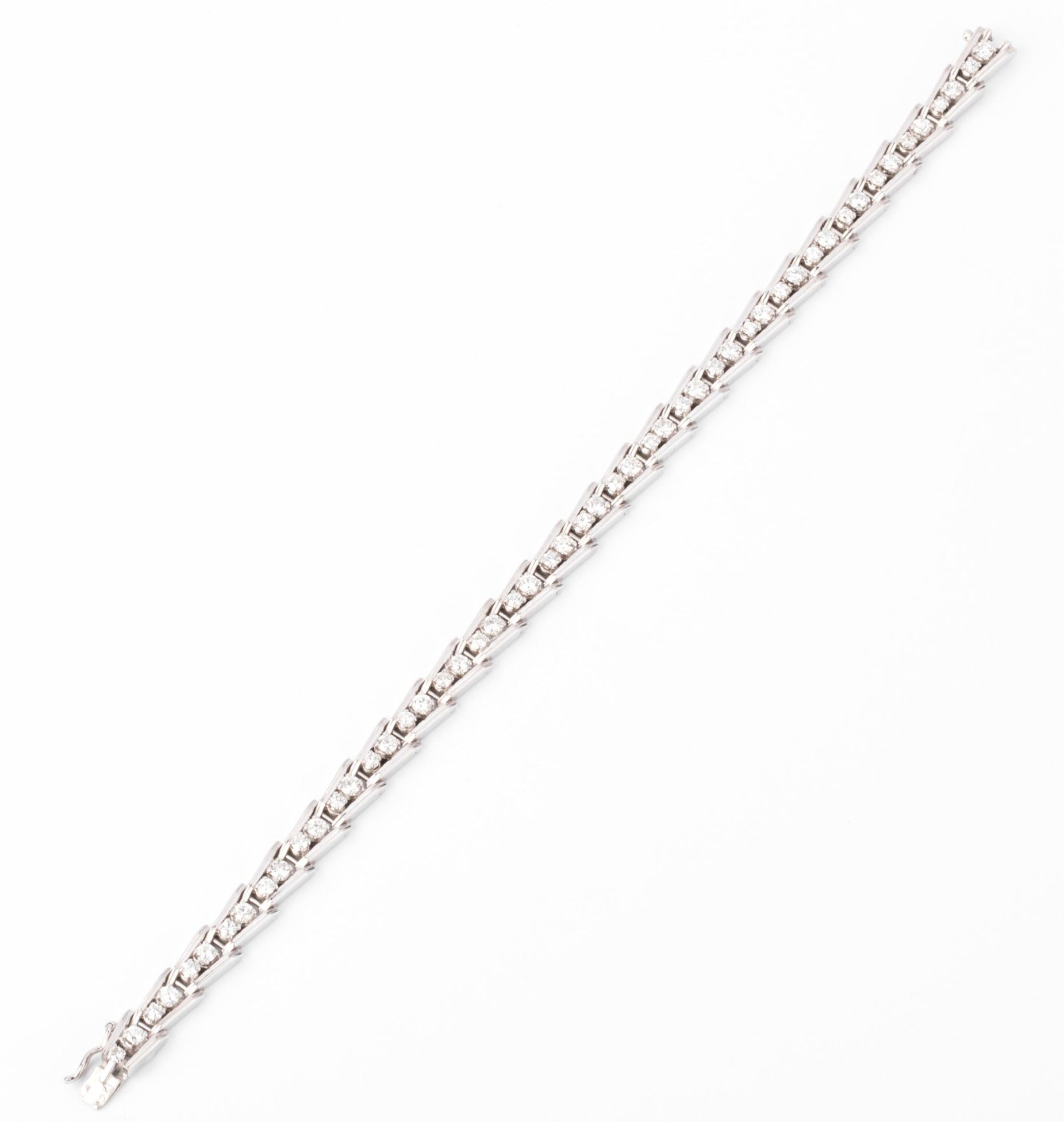 Bracelet riviere datant des années 1960 en platine, serti d'une ligne de 52 diamants taille brillant totalisant environs 1,60 cts.