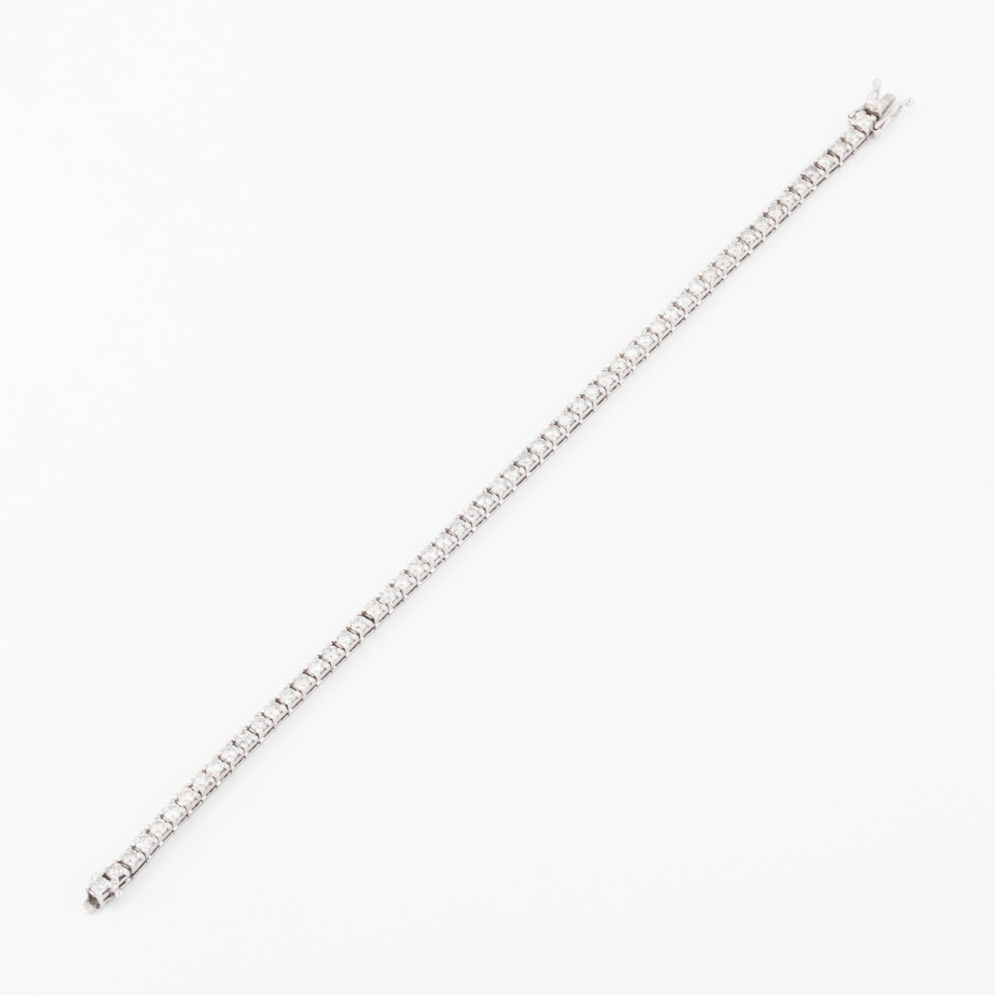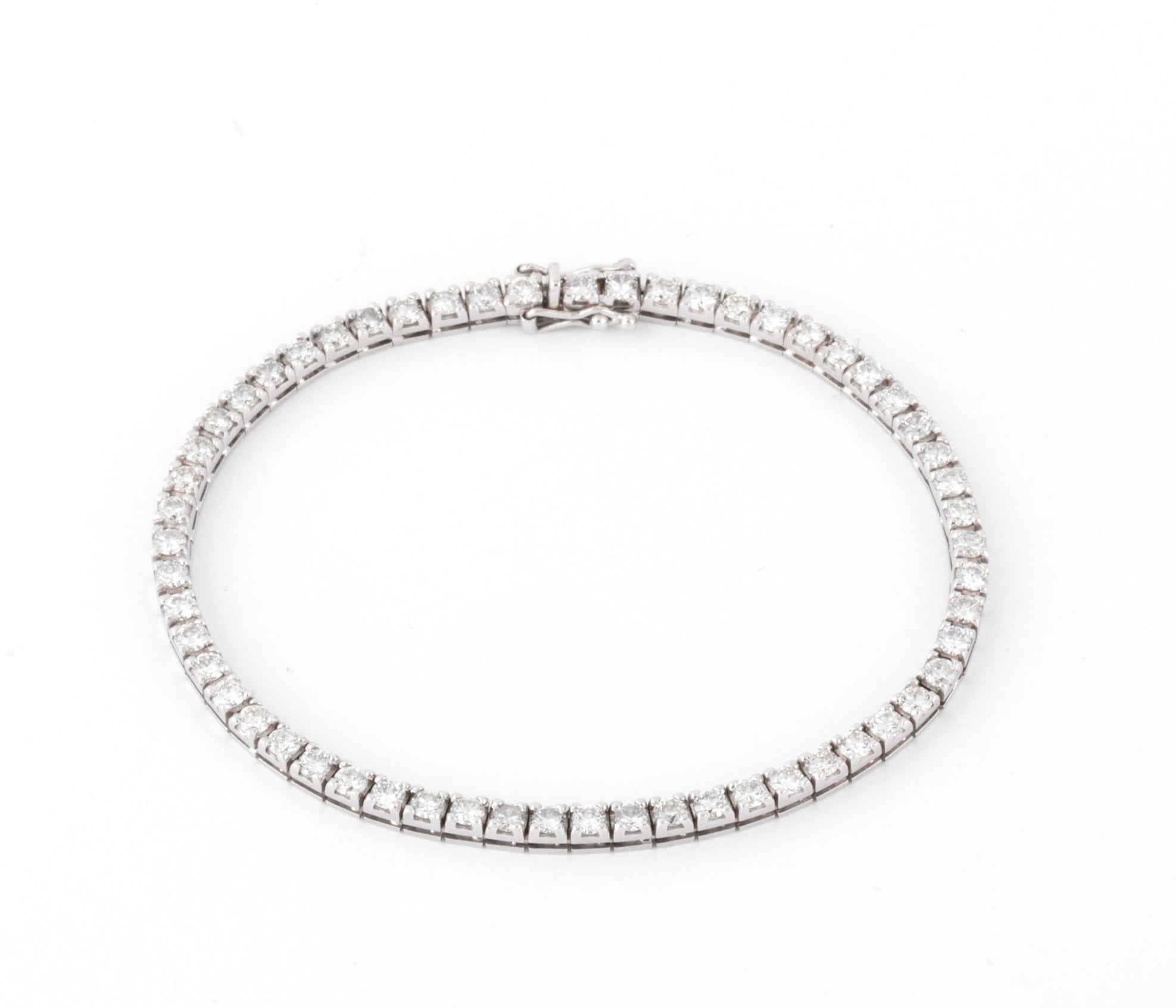 Bracelet rivière souple en or gris souple orné d'une succession de diamants sur sertis griffe.
