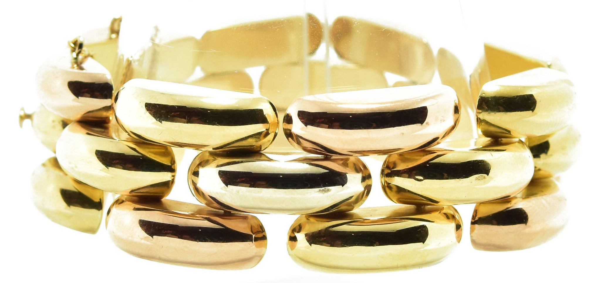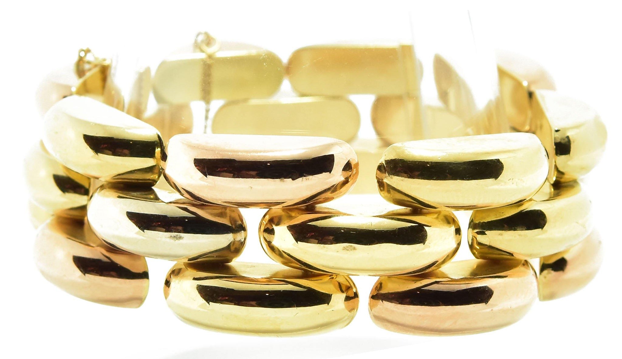 Bracelet 3 ors Tank formant 3 rangs de maillons formant des petits ponts.
