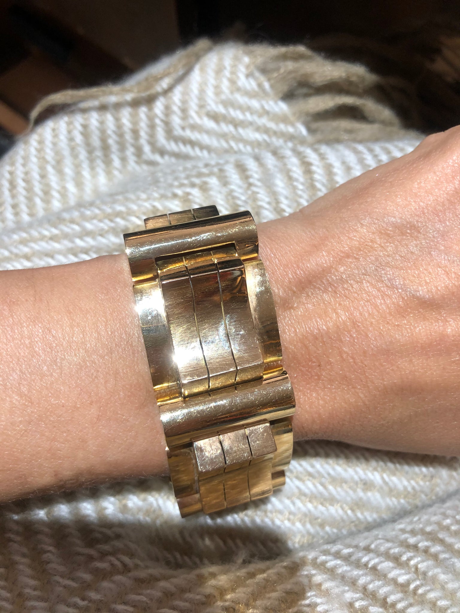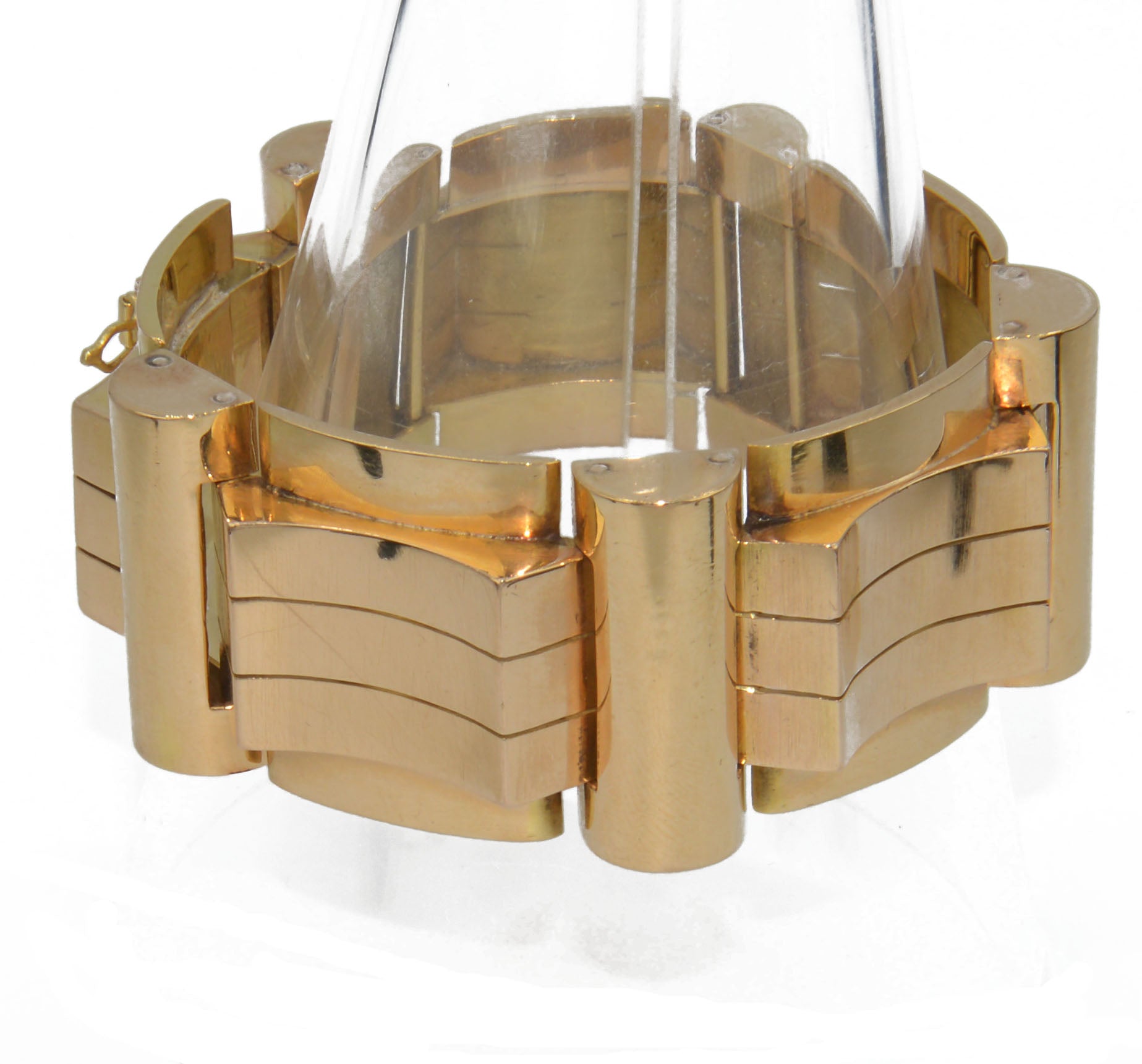 Bracelet Tank époque années 1940-1950 en or rose et jaune,composé d'une succession de très beaux motifs bombés ajourés.