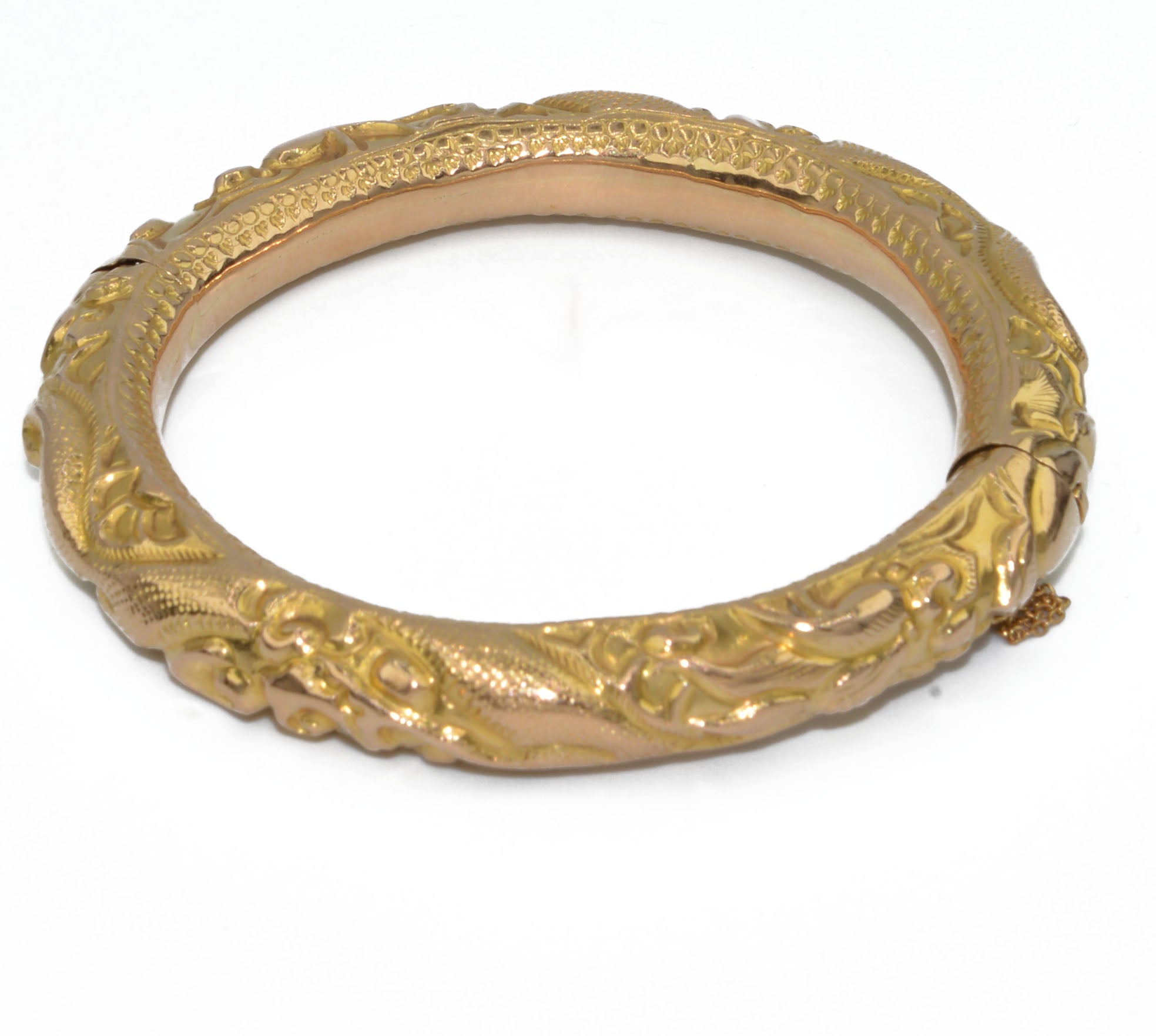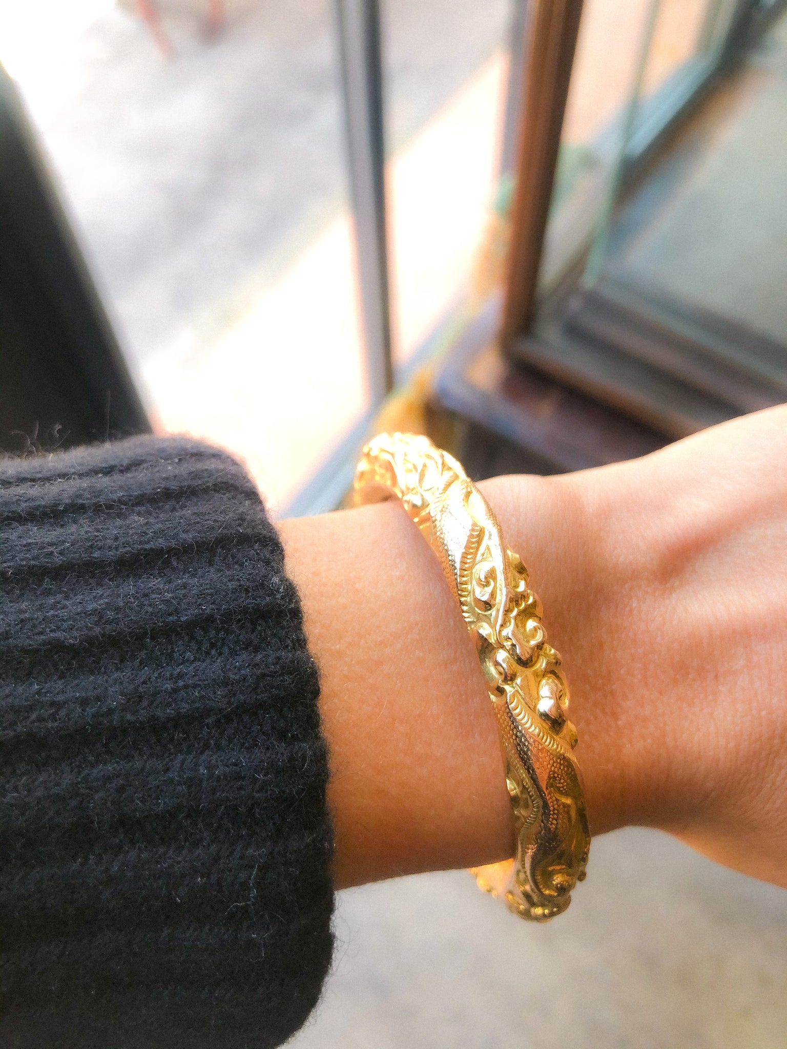 Jonc or rose 18k joliment ciselé,fermeture invisible.