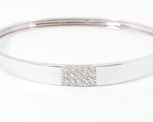 Bracelet jonc en or gris serti de 3 lignes de diamant