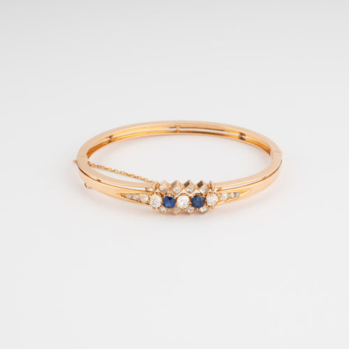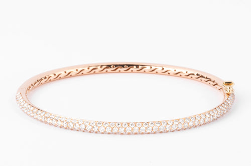 bracelet jonc ouvrant en or rose serti de 3 lignes de diamant