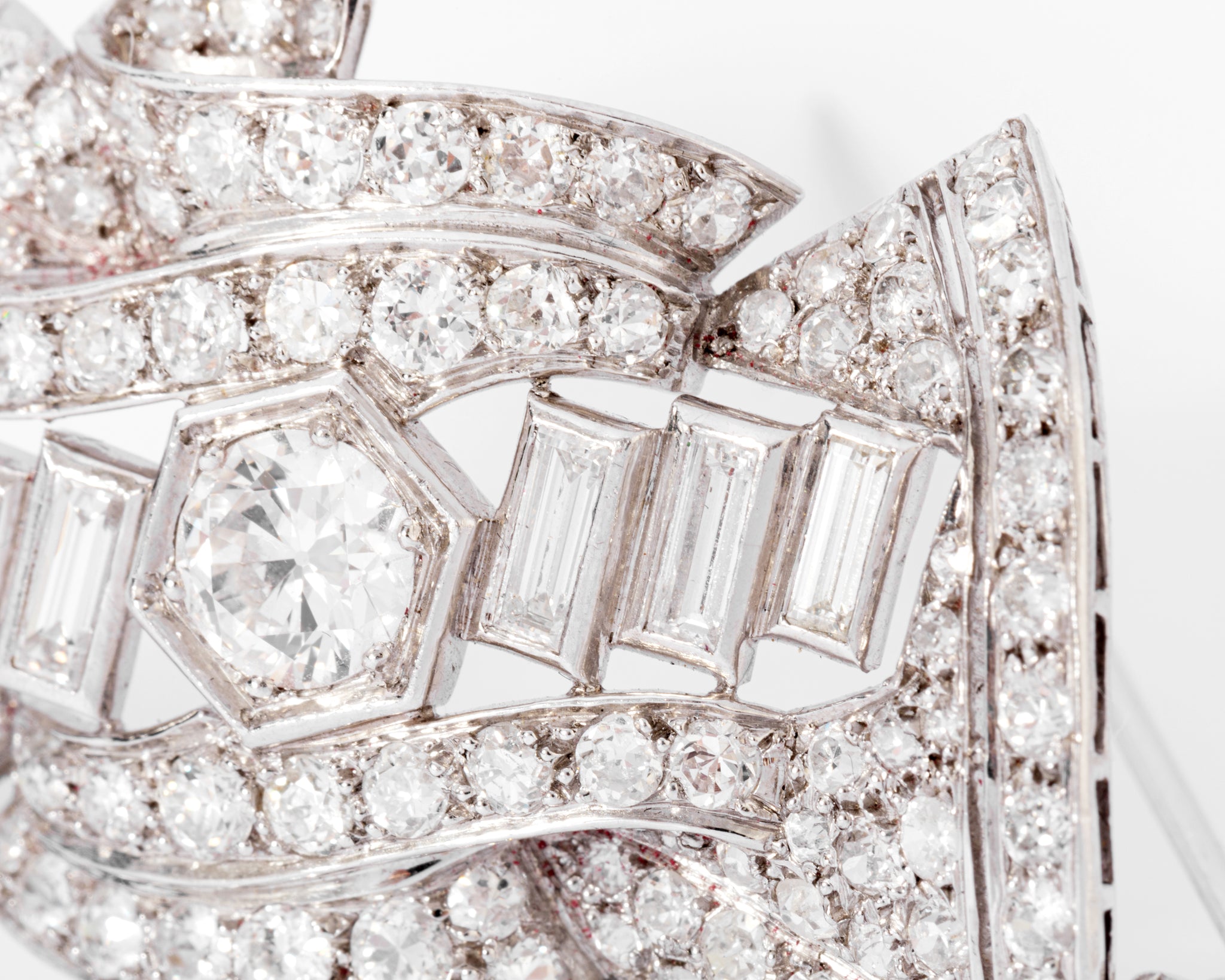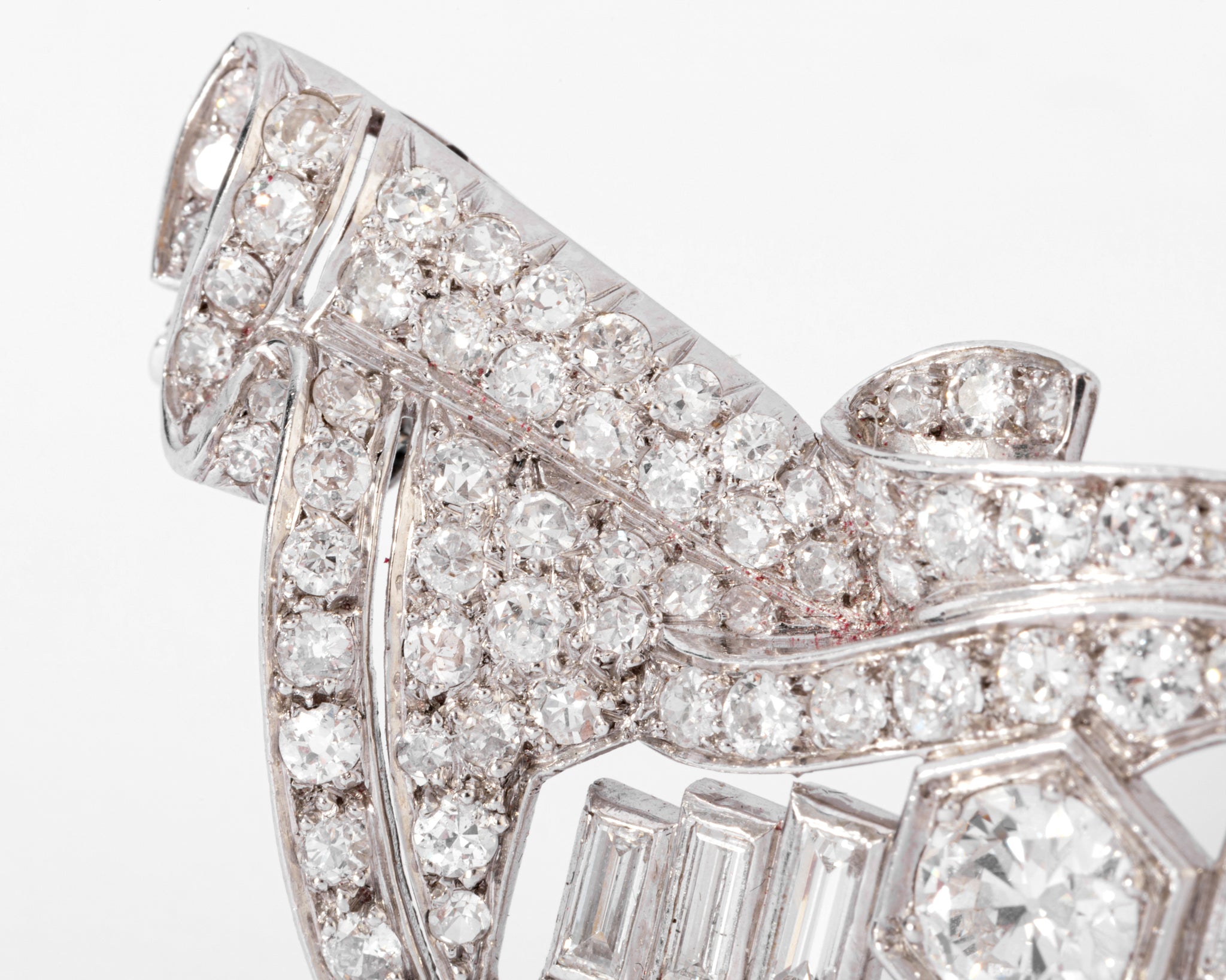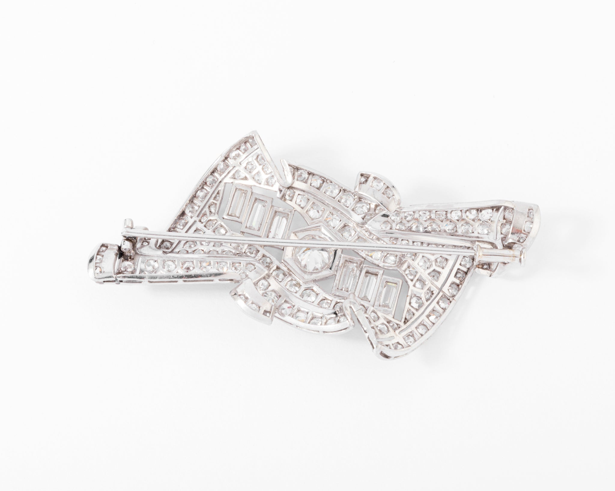 Broche en diamant des années 1930 formant une ganse ornée de diamant taille ancienne avec diamant taille baguette et diamant taille ancienne.