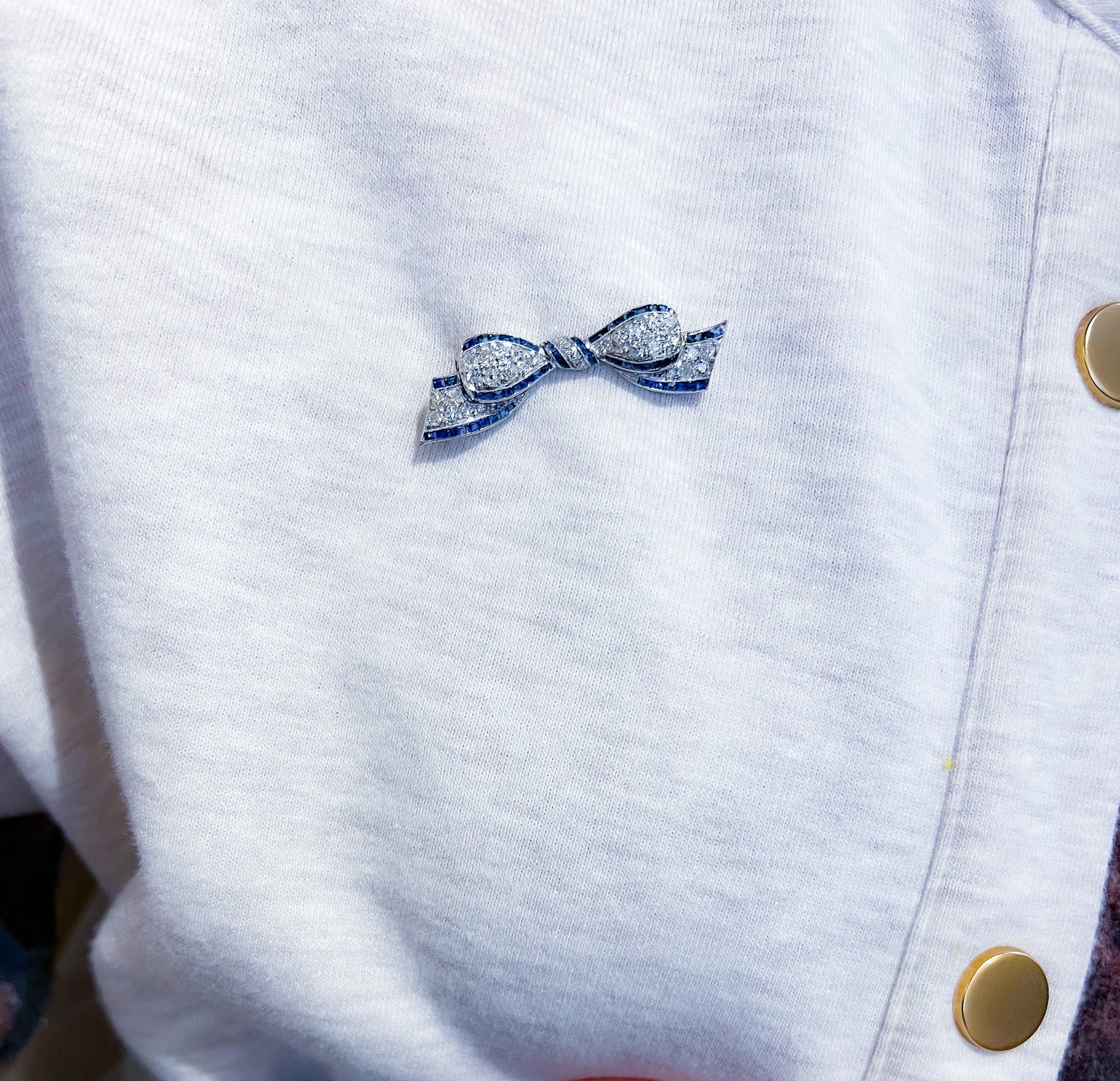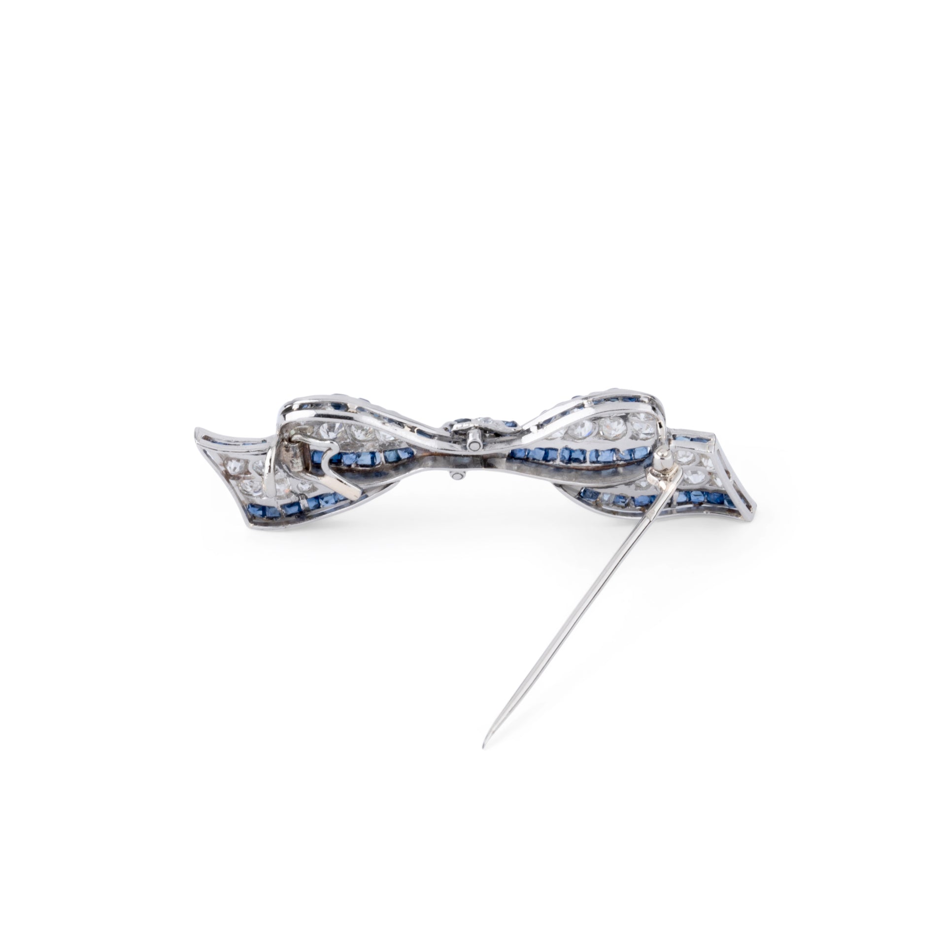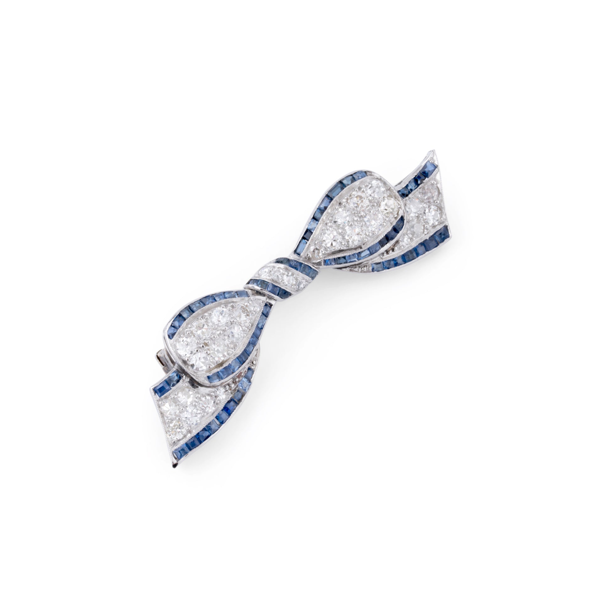 Une broche nœud monture en platine sertie de diamants taille ancienne et diamant 8/8
