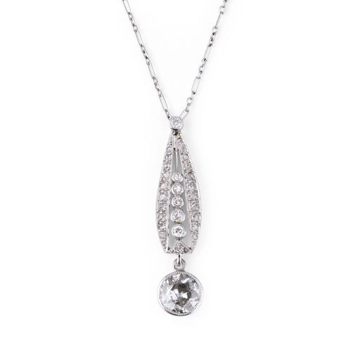 Collier en or gris ornée de 5 diamants entourés de plus petit diamant