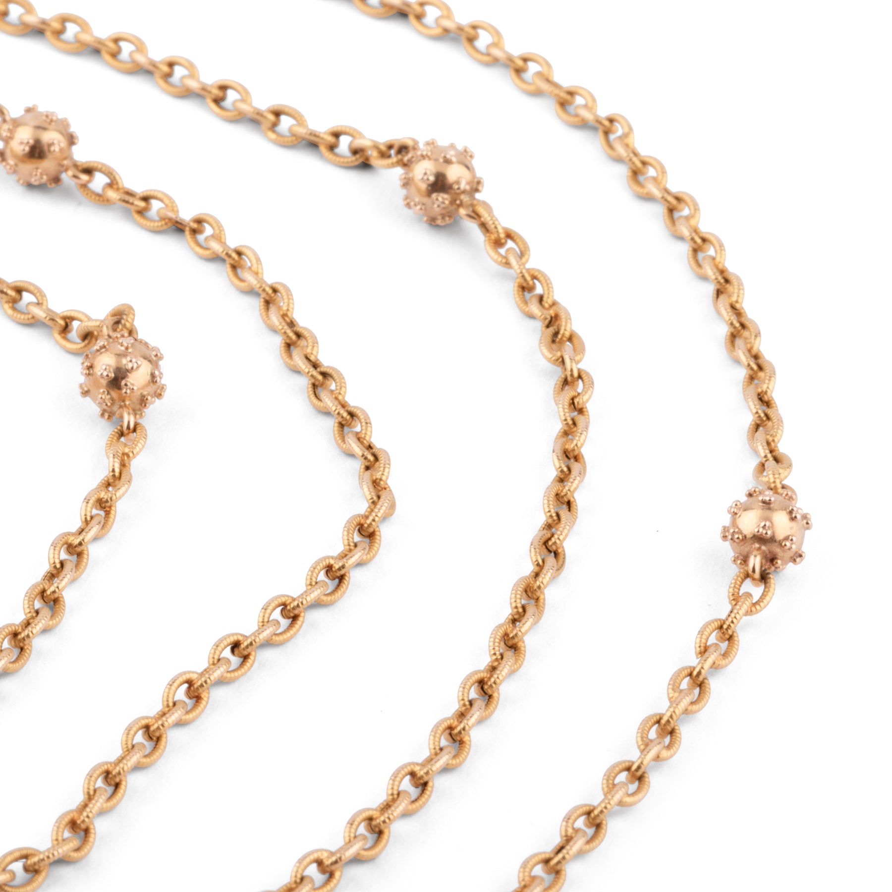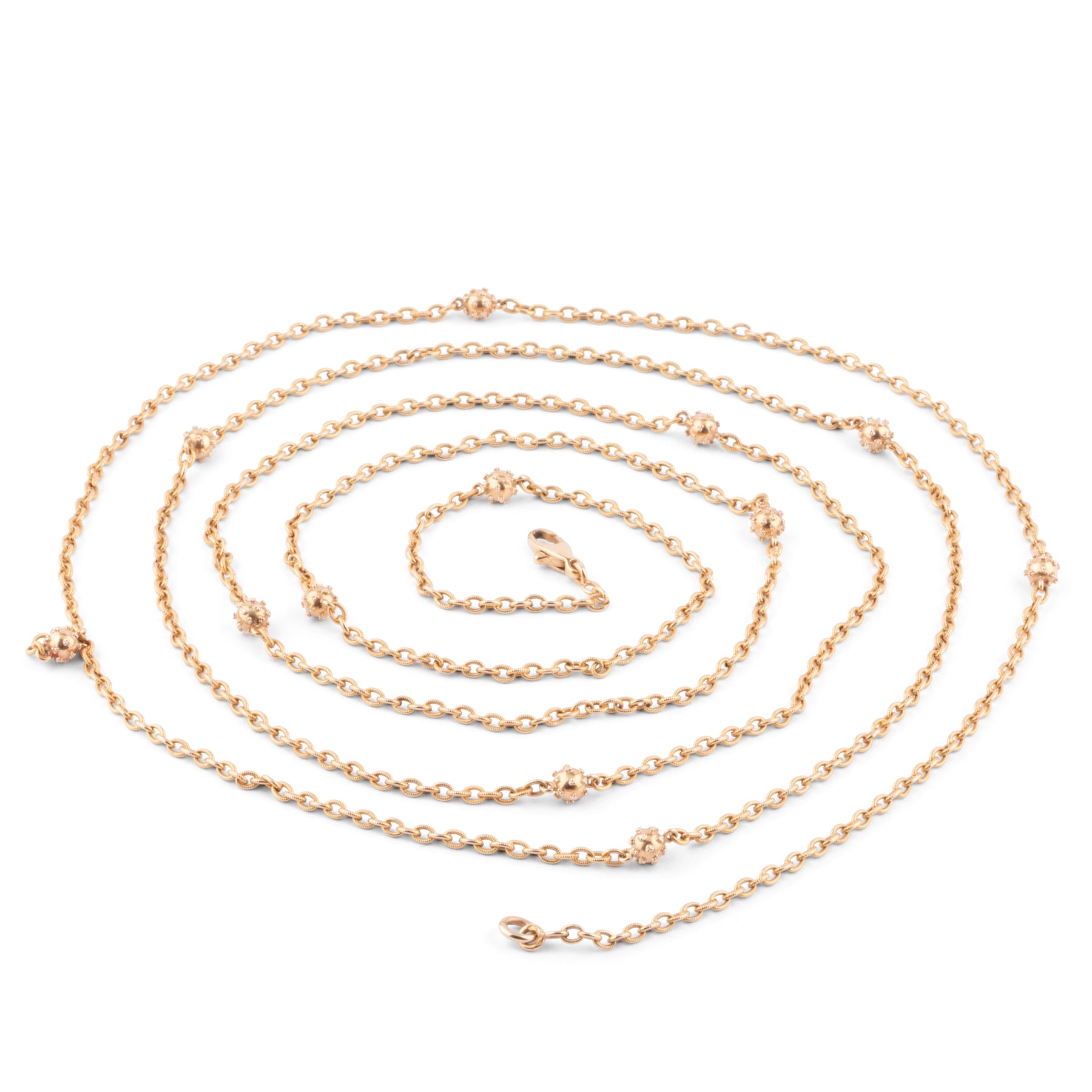 Sautoir ancien en or jaune orné de petites boules et d'une chaine aux maillons ciselés.