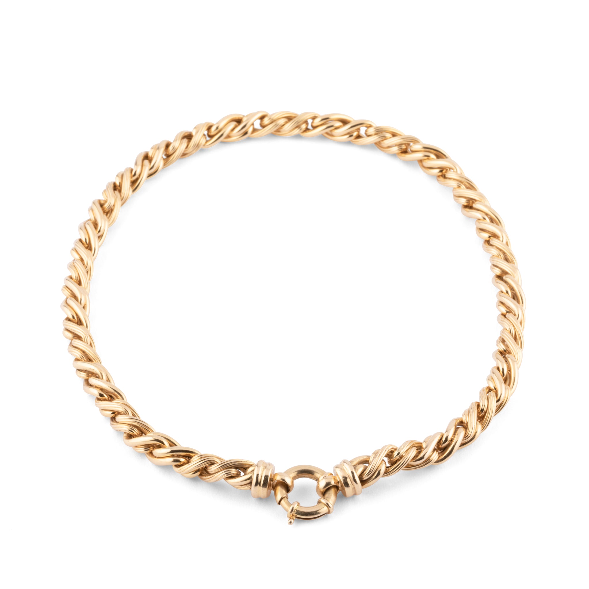 Collier en or jaune maille jaseron fermeture fermoir bouée.