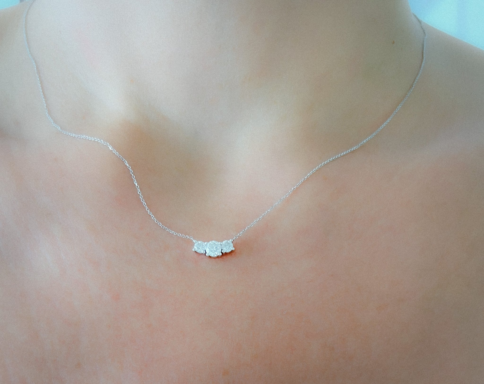 Collier en or gris orné de 3 diamants taille brillant sur serti griffé.