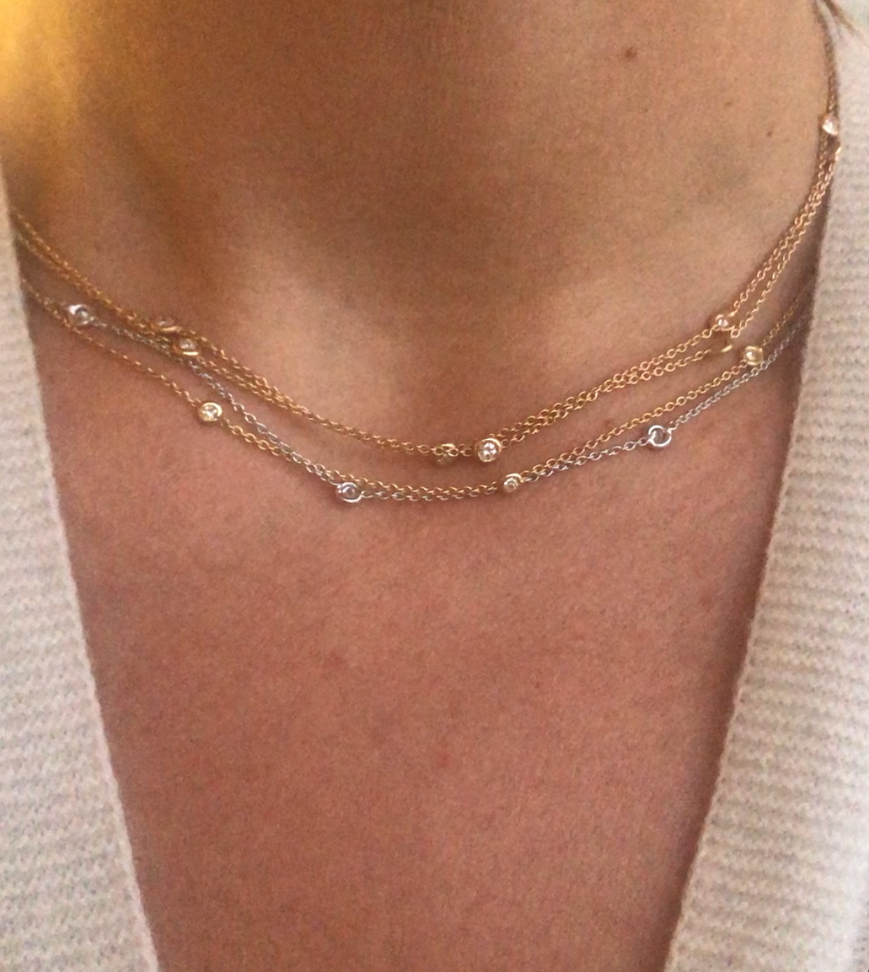 Collier or jaune intercalé de 9 diamants sur maille forçat en sertis clos.