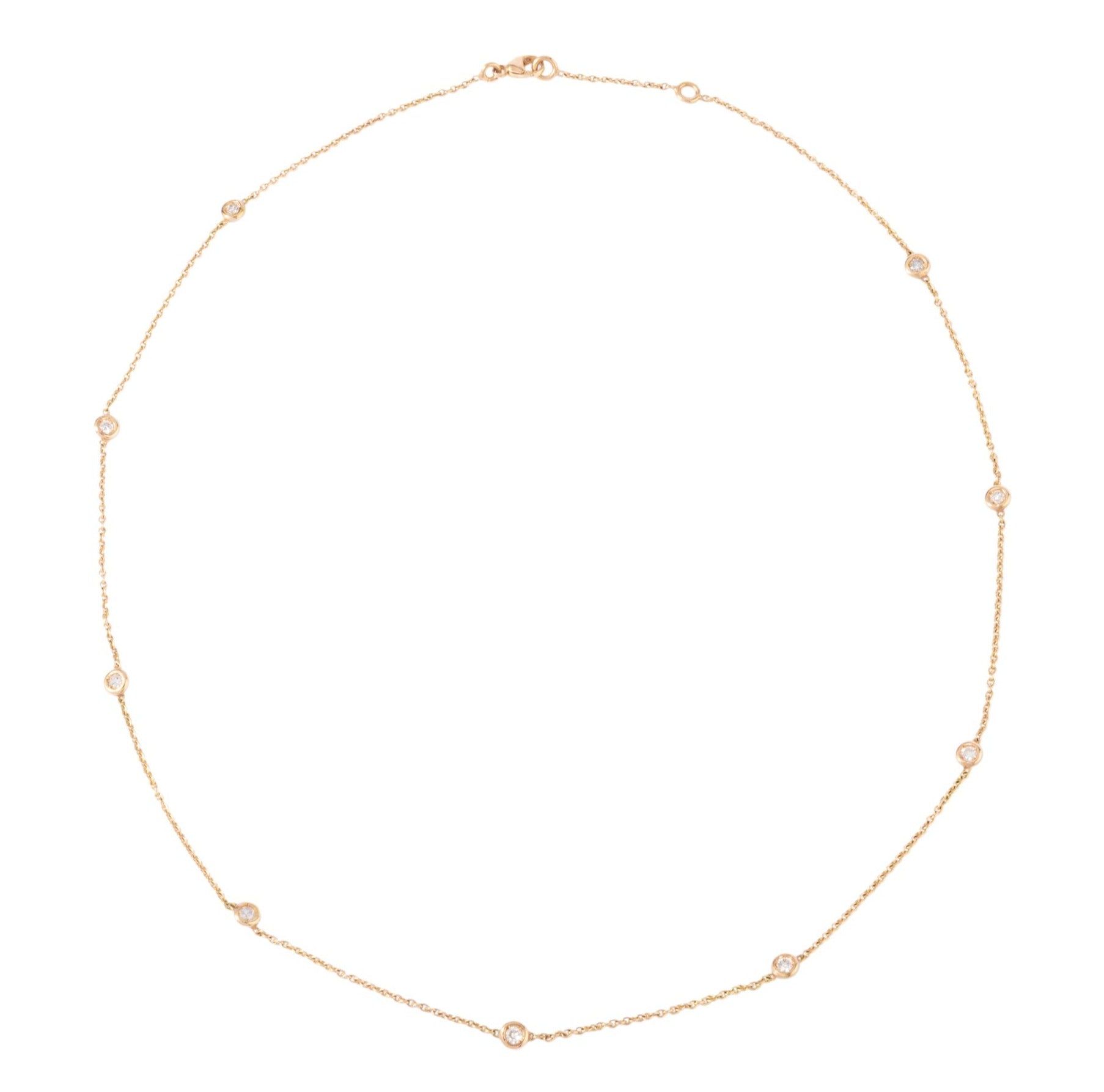 Matière : Or jaune 18k Poinçon : Tête d'aigle Poids : 2,4grs Longueur : 42,5 cm anneau intermédiaire à 40cm Nombre carat: 0,50 ct Nombre de pierres: 9 diamants Période: 2000