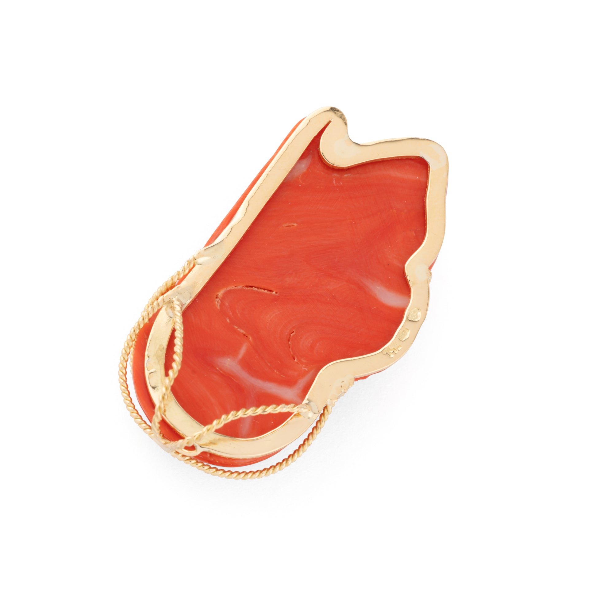 Pendentif en corail sur or jaune, représentant une tête de femme, ciselée.