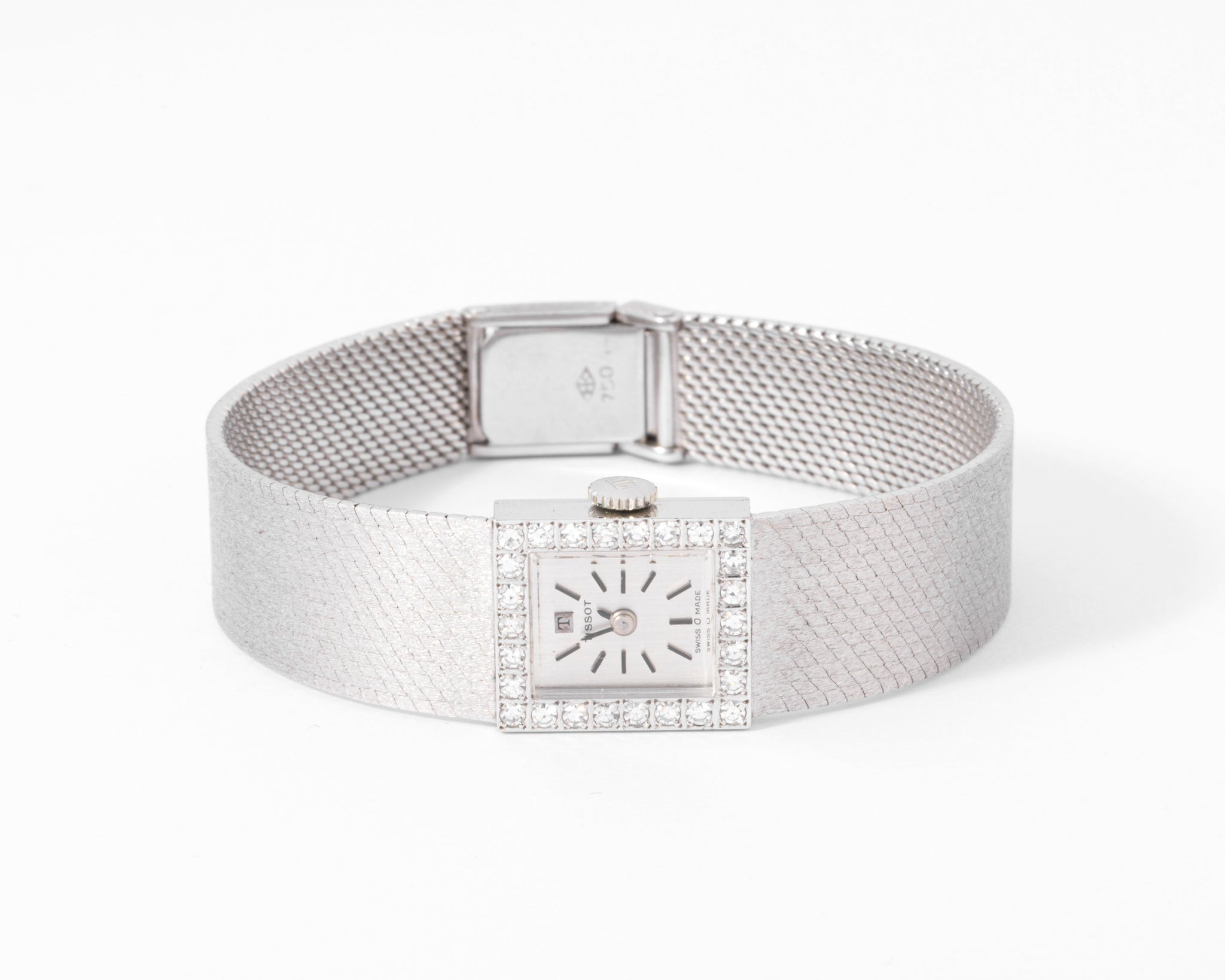 Montre Tissot or gris et diamant datant des années 1960,extra plate à mouvement mécanique, joliment entourée de diamant.