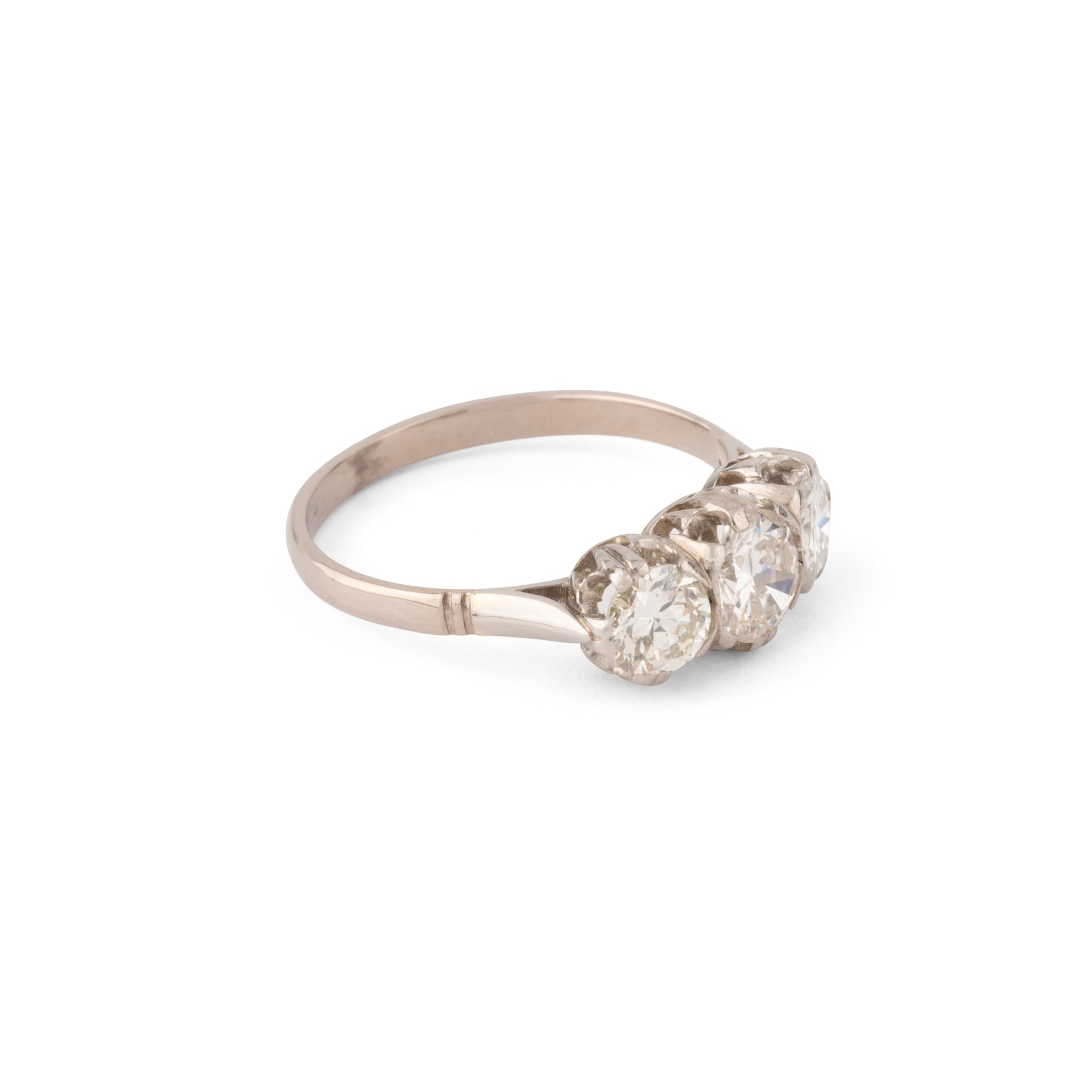 Bague en platine trilogie ornée de 3 diamants demi-taille , sur serti griffe datant des années 1930.
