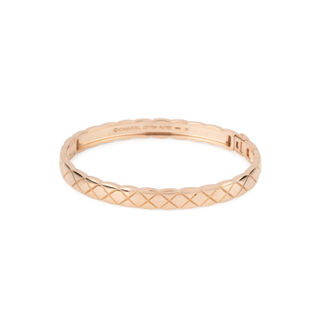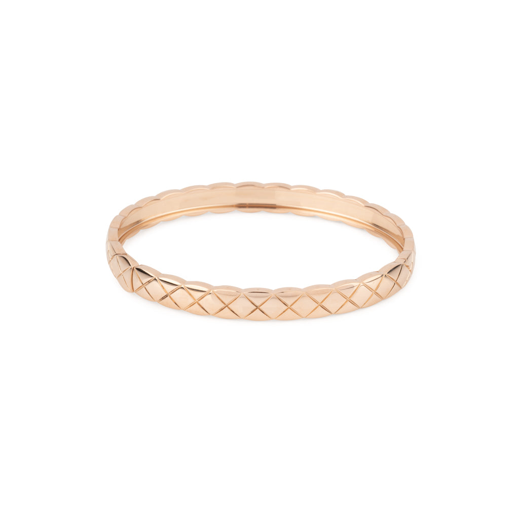 Bracelet en or rose de la maison Chanel, modèle Coco Crush composé d'un jonc bombé matelassé. Taille M